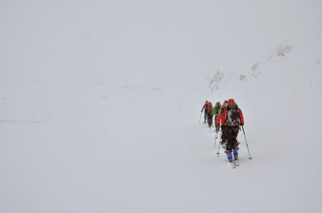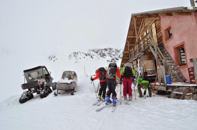 Lopulta päädyttiin hiihtouralle, jota lähdettiin hiljalleen nousemaan ylöspäin. Sopivasti lounastauon aikana alkoi pyryttää lunta ja loppunousu oli meditatiivista hiljaista nousua lumipyryssä upean laakson keskellä Rifuge le Blanchelle. Perillä oltiin ajoissa ja ilta istuskeltiin vuoristomajan hengailutiloissa ja kirjoitin mm. tämän tekstin…