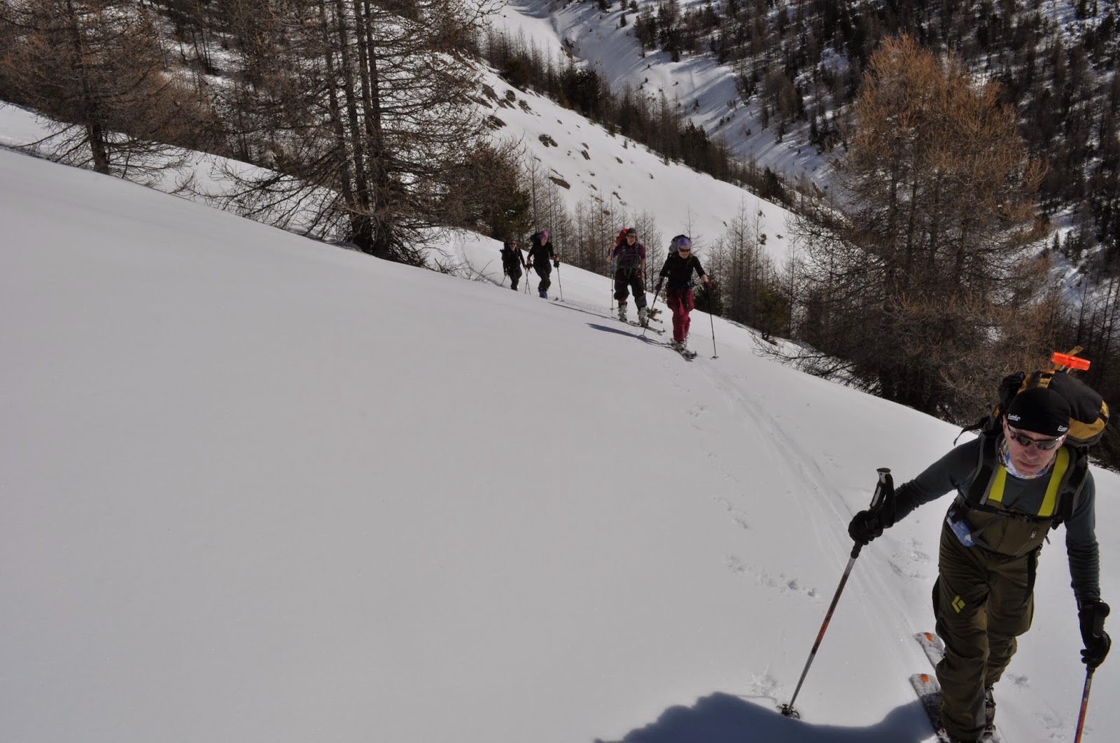 En tiedä oliko viimeiseen laskuun pääsy helpotus vai ei, mutta lasku oli lumiolosuhteiden vuoksi todella vaikea! Kaikesta huolimatta laskun aikana alkoi syntyä jonkinlainen luottamus vuokrasuksiini, olo rupesi olemaan sellainen, että hiihtäjä vie suksia eikä sukset hiihtäjiä. Alas päästiin kuitenkin, mutta eihän se touhu siihen loppunut. Petter oli säästänyt loppuun vielä mukavan nousun ylös majapaikkaamme Maison de Gaudissartiin Molines-en-Queyrasin. Majapaikasta on sanottava, että illallinen oli poikkeuksellisen hyvä ja retkieväät jatkoivat samaa linjaa.