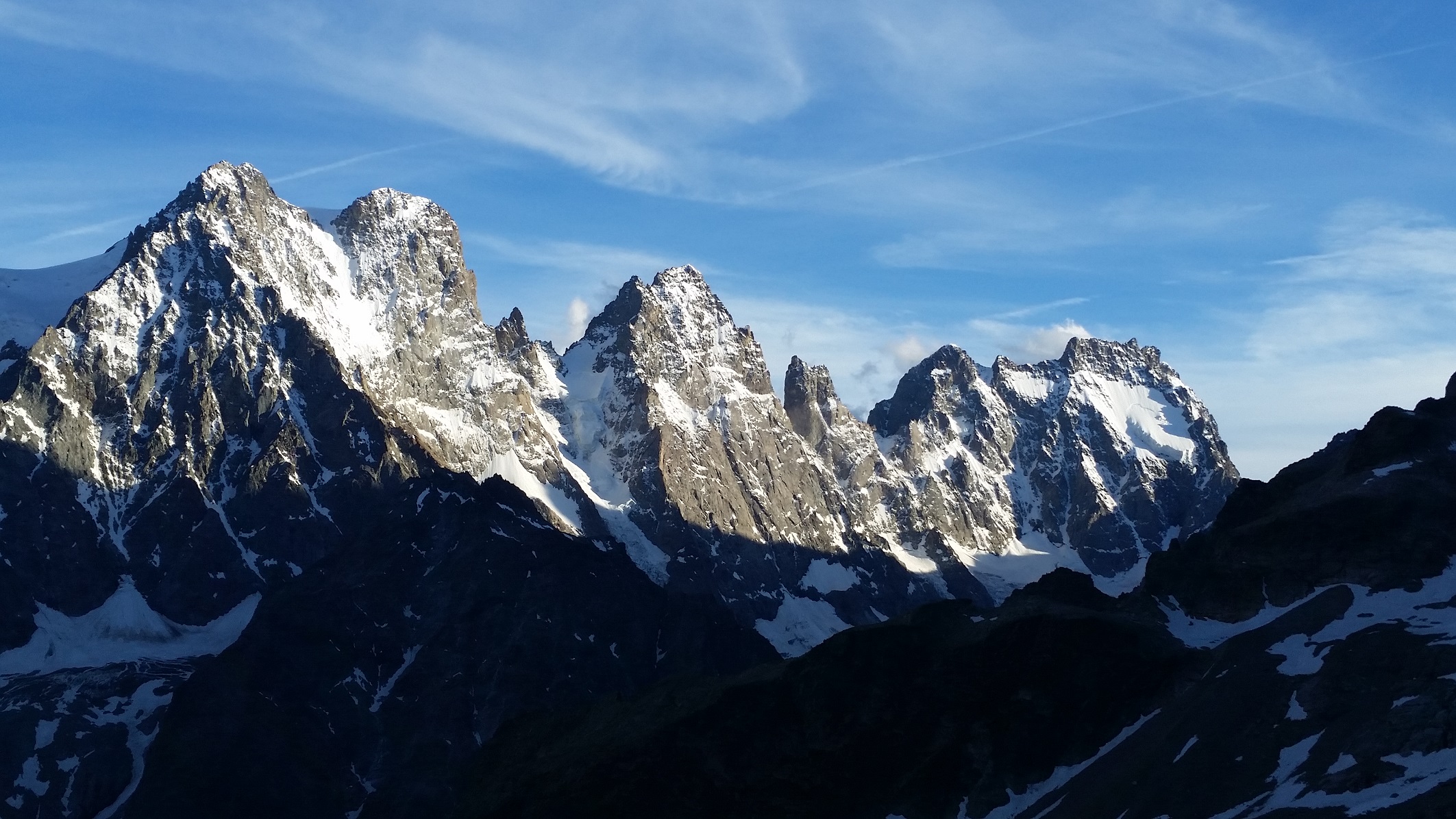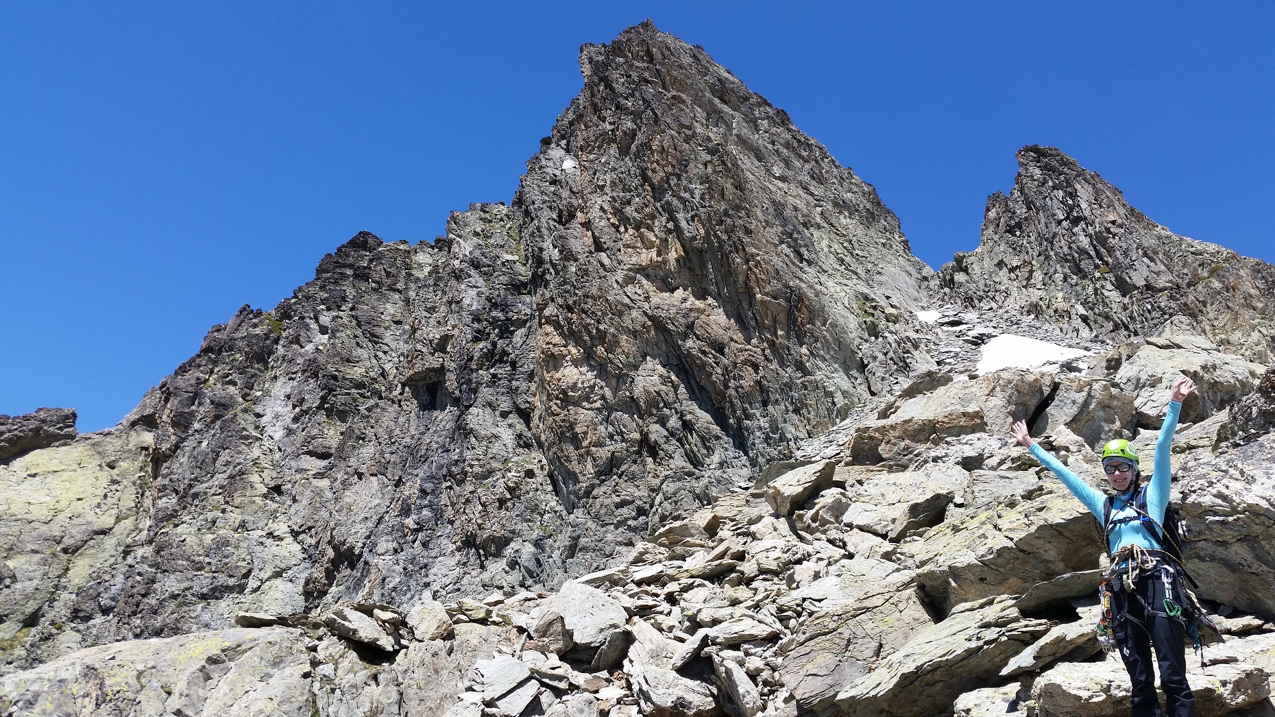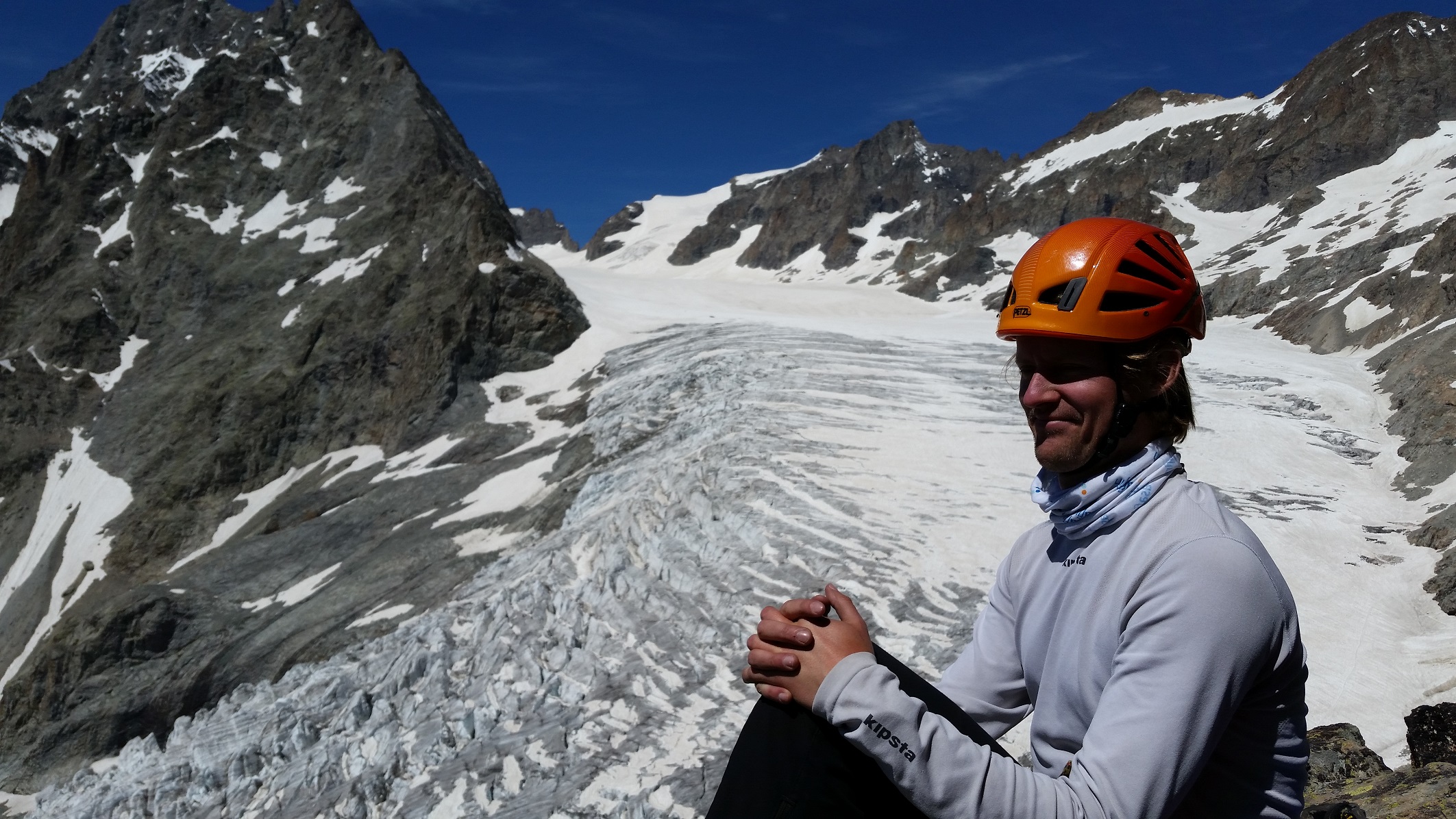 Jo monena kesänä on ollut ajatus käydä kiipeämässä korkeammalla ja hakema kokemusta alppitouhuista. Nyt selailtiin Ecrinsin alueen itäistä topoa hartaasti ja yritettiin etsiä tarpeeksi helppoa kohdetta. Topo on ranskaksi ja vielä aika old school, joten asioiden hahmottaminen ei ollut ihan helpointa. Monet komeat paikat kuten Selen laakso osoittautuivat tarkemmalla tutkiskelulla liian rapsakoiksi. Google translator apuna löydettiin jo tutun reitin varrelta pieni huippu. Barre de Ecrinsin suositun polun varrella juuri ennen Glacier Blancia on Cezzannen eteläharjanne, josta erottuu kiipeiltävä oma pikku huippunsa. Reitti on max 4c ja noin viitisen kp:tä, jos kiipeää köydet suunnilleen niin pitkälle kuin pystyy. Vertikaalia noin 180m ja huippu juuri kolmen tonnin alla. Kiipeilty jonkinlaista kivikkoa, släbiä ja lopuksi harjannetta. Alas pääsee helposti yhdellä laskeutumisella ja irtokiviskrämblillä.