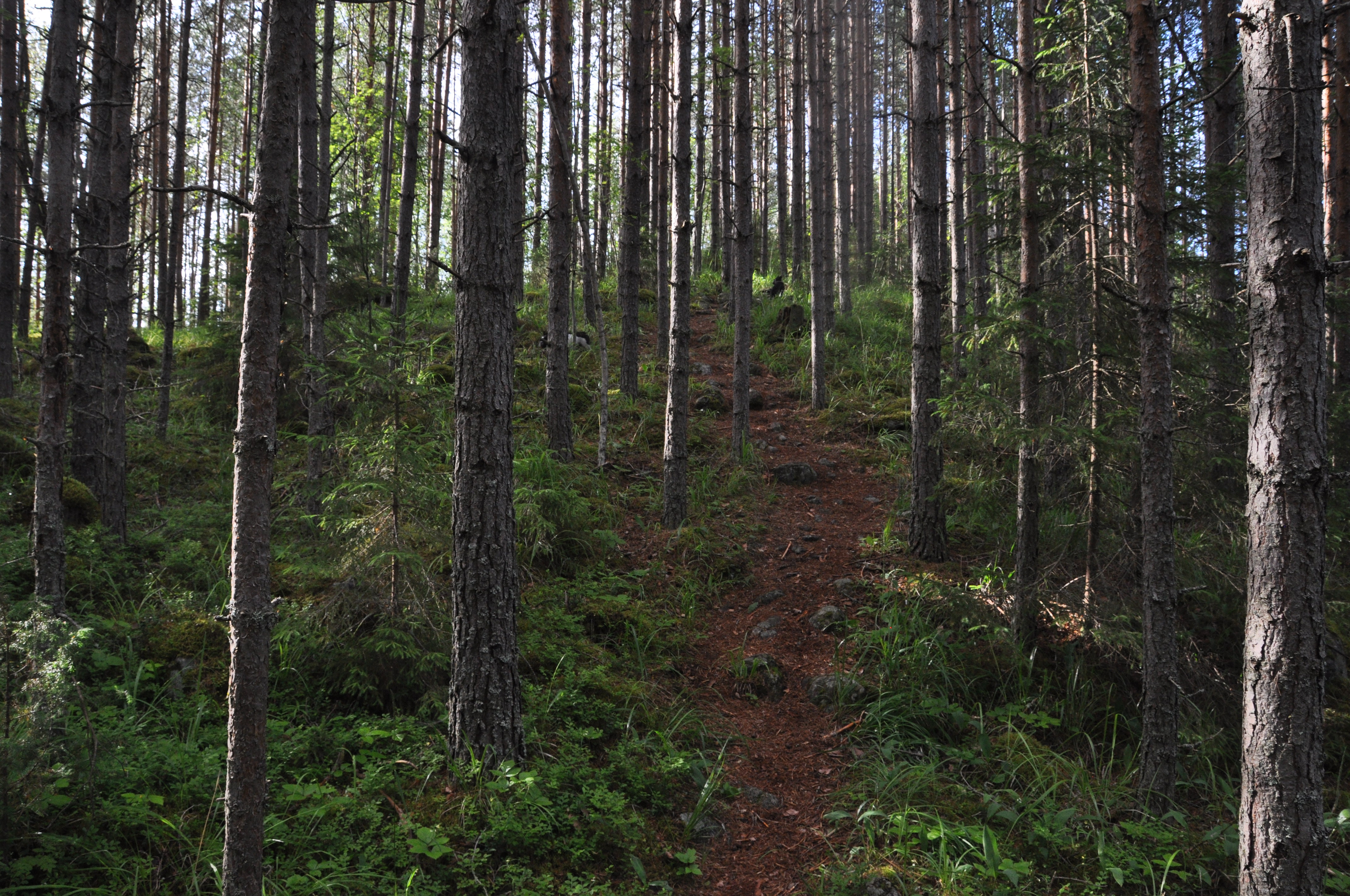 Evon retkeilyalue sijaitsee Lammilla keskellä Etelä-Suomea varsin kohtuullisen ajomatkan päässä Helsingistäkin. Alueen voi katsoa jakautuvan kahteen hieman erilliseen osaan, Niemisjärvien alueeseen ja Evokeskuksen pohjoispuolella sijaitsevaan alueeseen. Niemisjärvien seutu on erityisesti kalastajien suosiossa. Oma suosikkini on karun kaunis Kalliojärvi, tosin yhtään kalaa en ole sieltä ikinä saanut… No, kaikkia se ei yllätä, heh. Mutta Evokeskukselta pohjoiseen lähtevä alue on ehkä maisemallisesti ja retkeilyllisesti se hienompi osa Evoa. Polut kulkevat vuoroin lehdoissa, järvien rannoilla, harjuilla ja koska kyseessä on hoidettu alue, niin myös hakkuu- ja kulotusaukeilla. Alueella on mm. tulentekopaikkoja, keittokatoksia, laavuja, telttailualueita ja varattavia mökkejä. Palvelut ovat siis hyvät, mutta eipä tuntunut kävijämäärissä näkyvän, yksin sain koirien kanssa kuljeskella keskellä parasta Suomen kesää. Missä kaikki on? Puuhamaassa vai? No kai sielläkin ihan mukava on lapsiperheen aikaansa viettää, vanhemmat voi vetää vaikka bisseä terassilla ja lapsetkin saa pois jaloista…no mutta takaisin asiaan… Retkeily- ja kalastuspalveluiden lisäksi Evolla on Metsäoppilaitos ja mm. riistan- ja kalantutkimusasemat. Ja merkattuja polkuja riittää ihan mukavasti. Jos itse Evolta loppuu käveltävä niin voi jatkaa Asikkalaan tai Padasjoelle. Metsähallituksen sivujen mukaan merkattuja reittejä on 70 km ja muita polkuja tai metsäautoteitä vaikka kuinka paljon siihen päälle. Eli Evolla saisi tehtyä mukavasti vaikka useammankin päivän vaellusretken. Ja mielenkiintoisen ekstran Evon retkeilyyn tarjoavat alueen järvissä elelevät majavat.