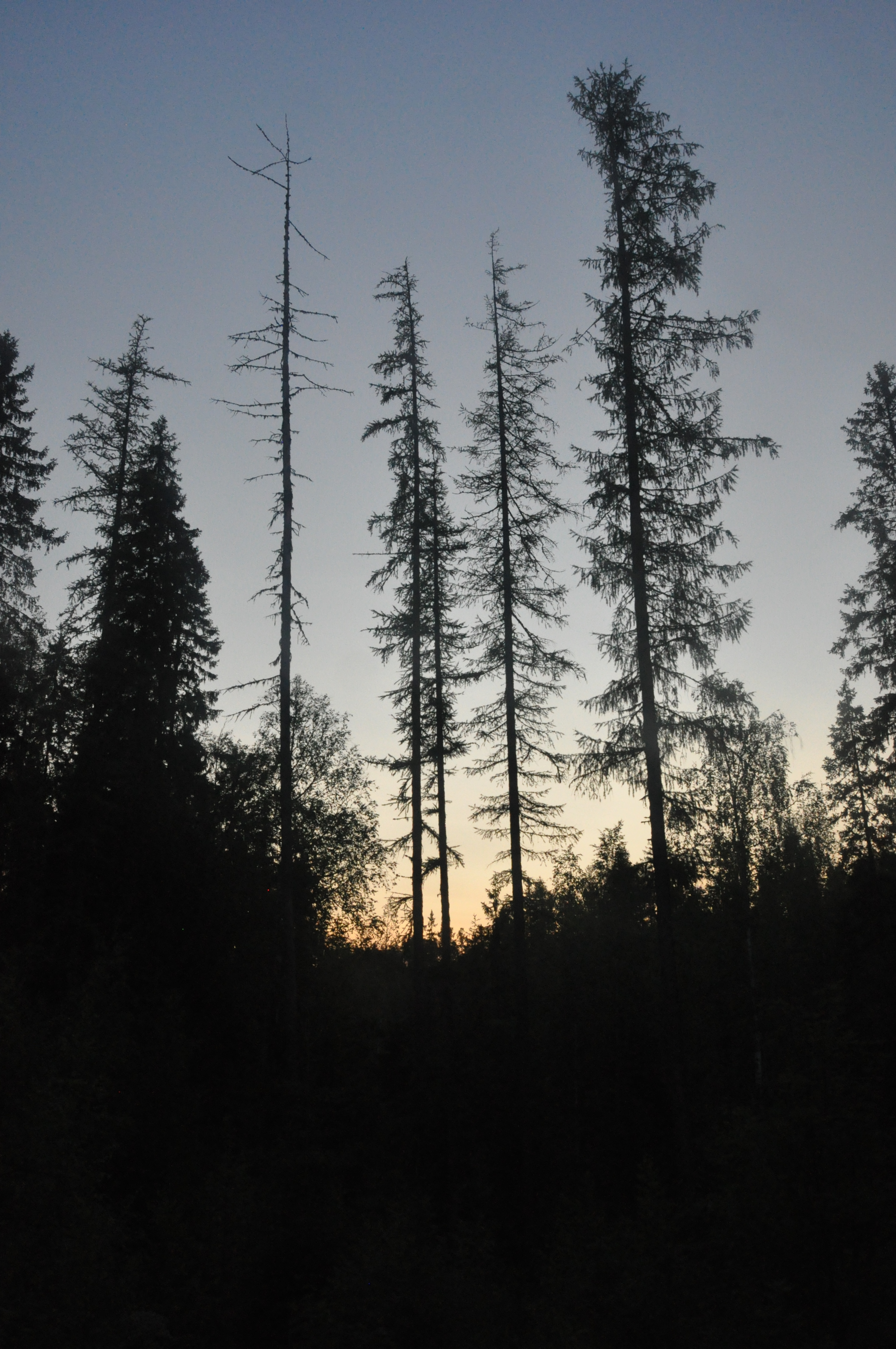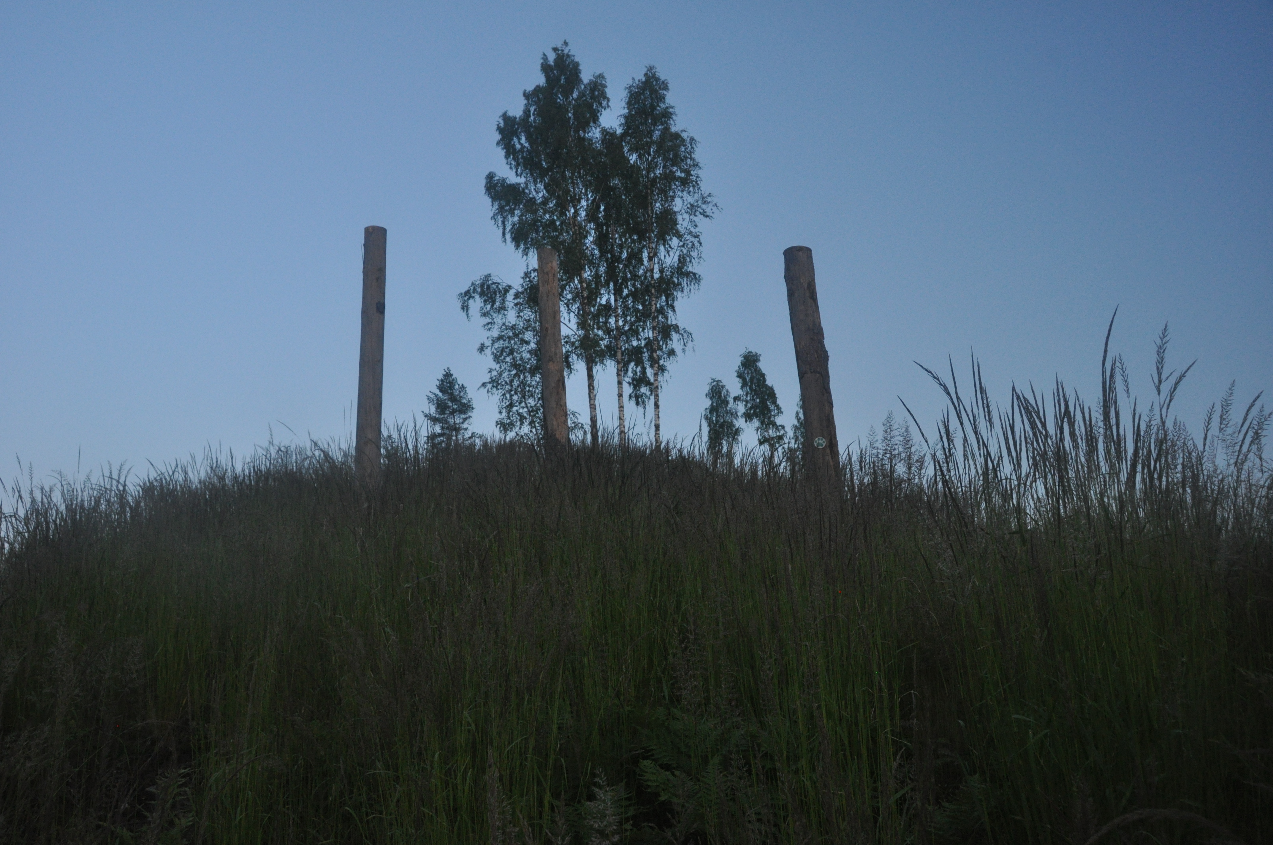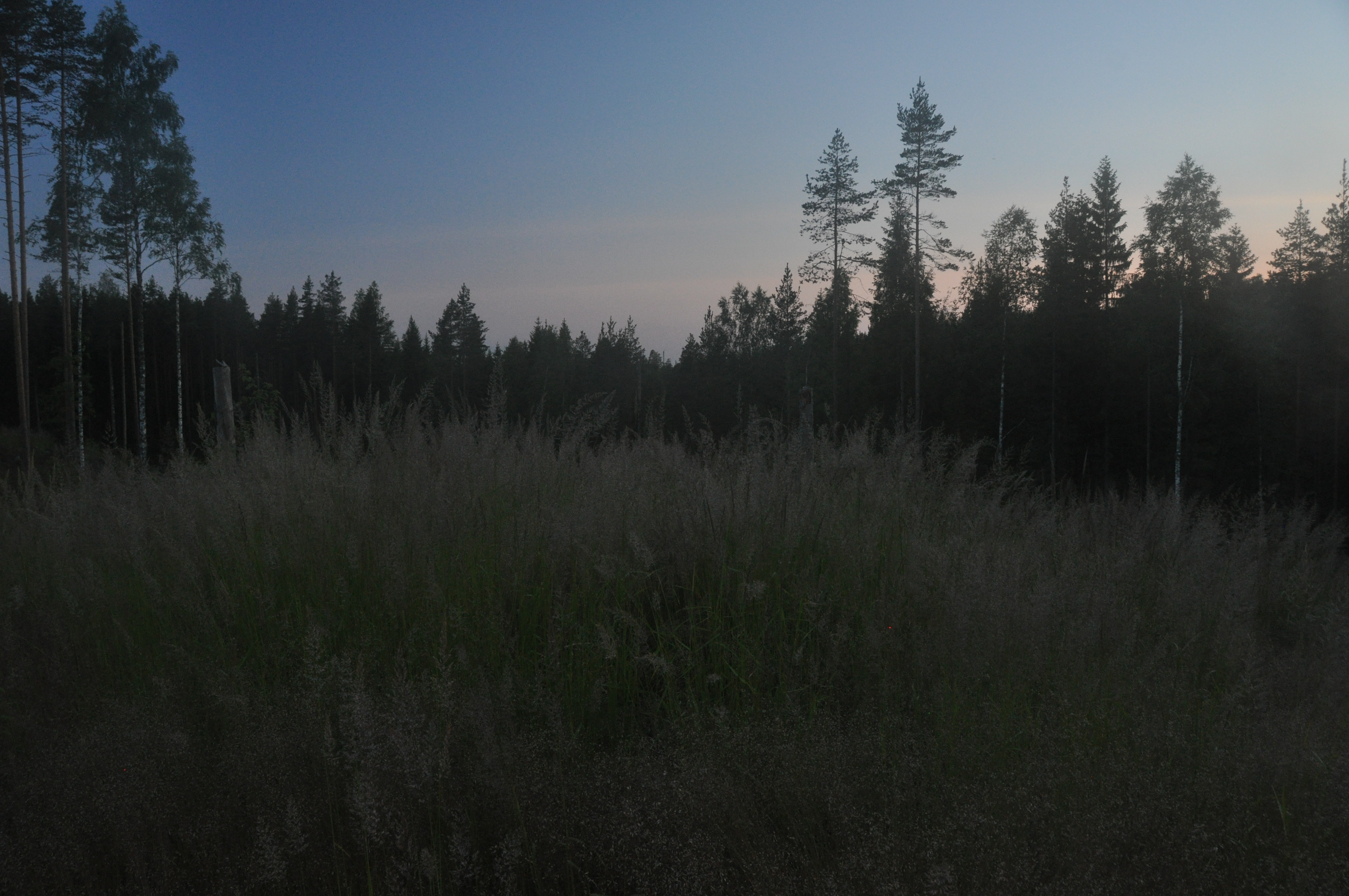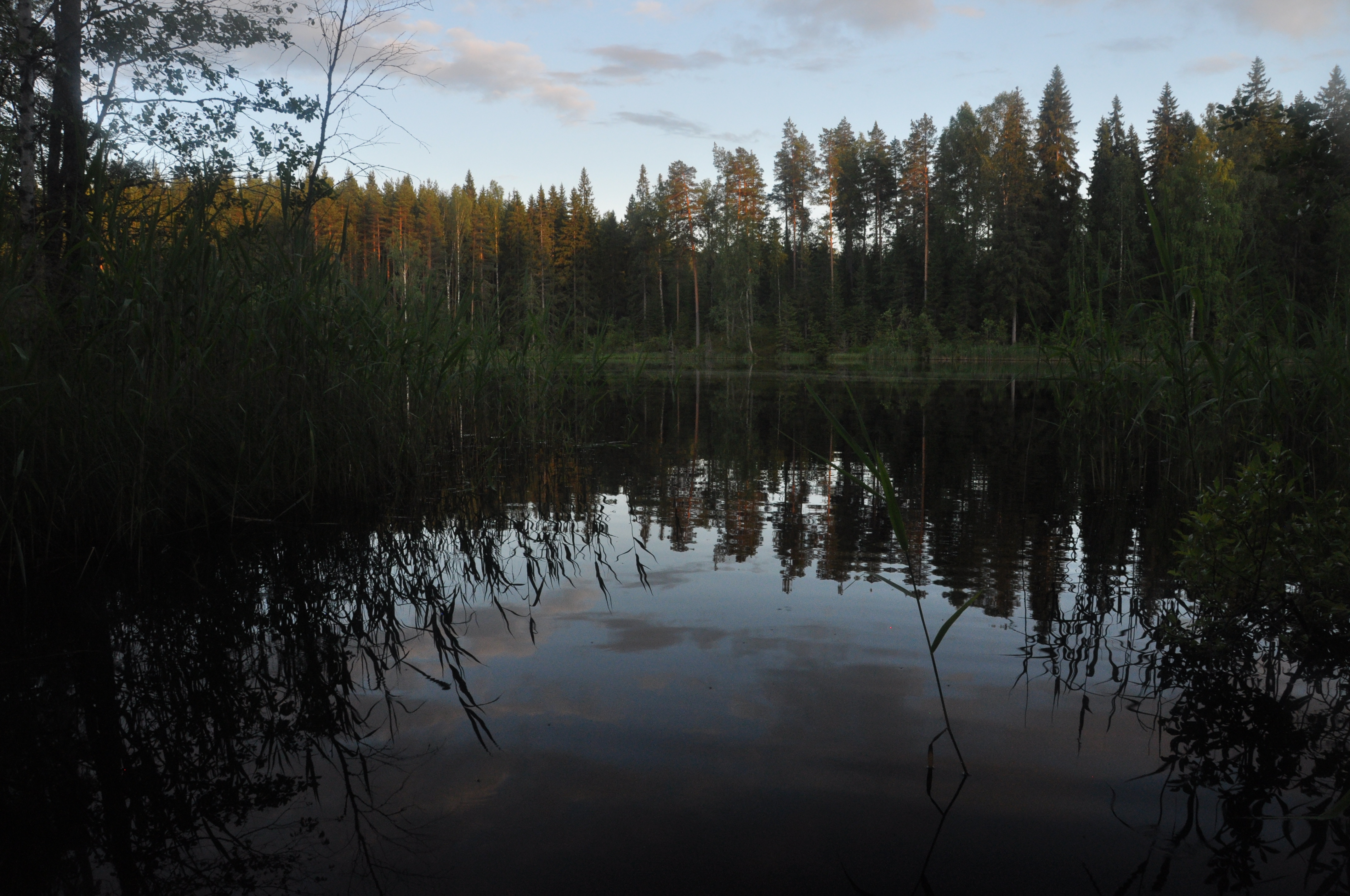 Illallisen jälkeen oli vielä hyvin aikaa tehdä pieni iltakävely, no vajaa tunti siihen meni. Kierrettiin telttapaikkamme vieressä oleva järvi ja päästiin kuulemaan vettä hännällään paukuttavia majavia, eivät kai tykänneet kun saivat seuraa. Myös loppupätkälle sattunut hakkuu-/kulotusaukea oli vaikuttava laskevan auringon kajossa. Miehen korkuiset heinäkasvit ja siellä täällä tököttävät puut tekivät aukeasta itse asiassa aika hienon!