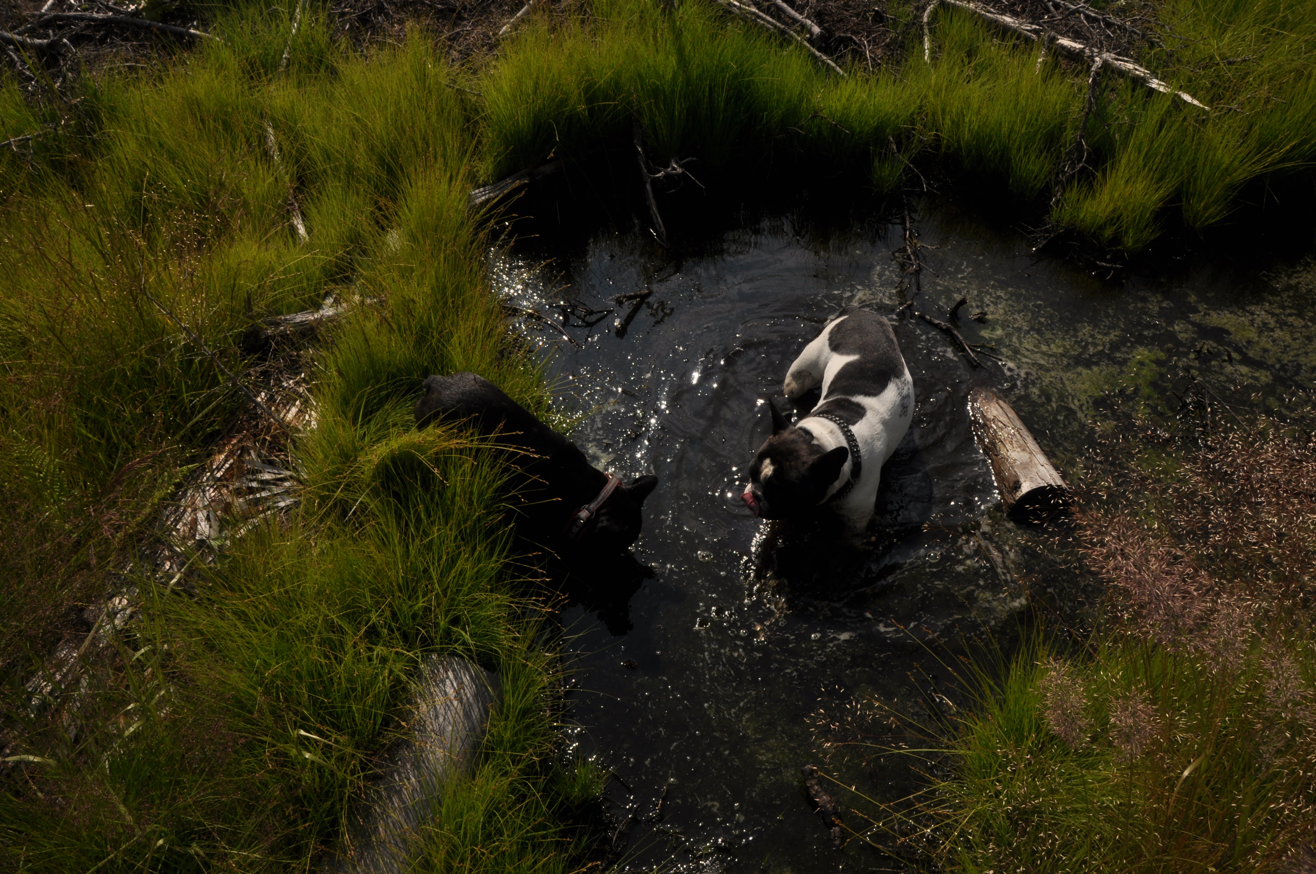 Reissu alkoi hieman epäonnisesti kun Lulu aloittelevana retkeilijänä paukautti ensimmäisen lammen rannassa suoraan johonkin rantaan muodostuneeseen mutakuoppaan. Siellä se Lulu raasu yritti räpiköidä ylös ja pääsikin ennen kuin ehdin hätiin. No Lulu kyllä oppi samantien, sen jälkeen juomapaikatkin katsottiin tosi varovasti, Lulu on vähän hienohelma…