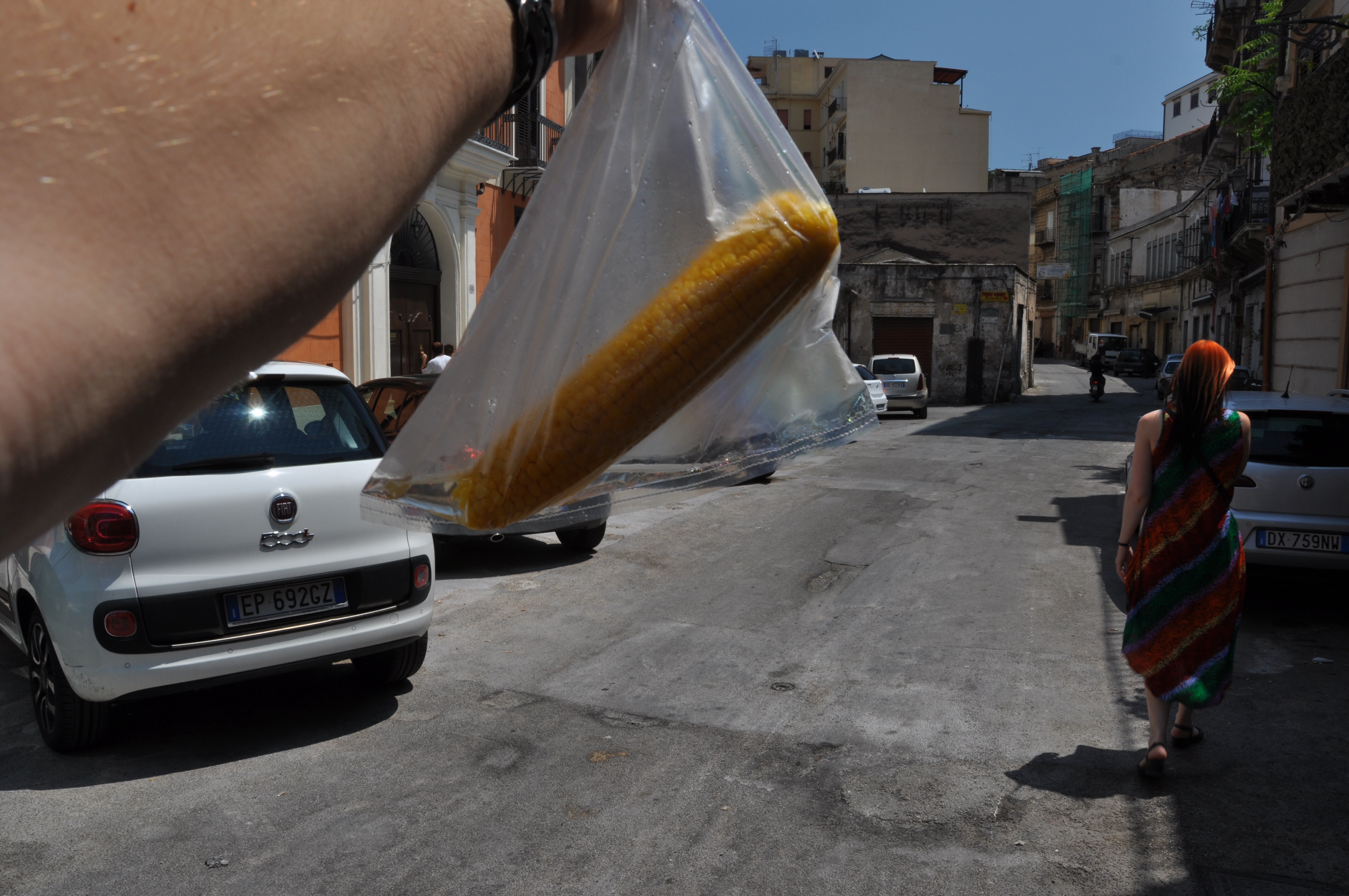 Maisemien ihailun jälkeen löytyi reitti alas ja suuntasimme vesihanan kautta kohti rantaa ja kuumia Välimeren aaltoja. Muutaman kilometrin tallustelu oli hieman piinallinen mm. iltapäivästä entistä kuumemmaksi äityneen auringon ”ansiosta”. Perille kuitenkin päästiin, toki jätskibaarin kautta. Pulahtaminen Välimereen todellakin korvasi muutaman tunnin kävelyn Sisilian kuumaakin kuumemman auringon alla. Mikään ei voita uimista lämpimässä ja suolaisessa merivedessä!