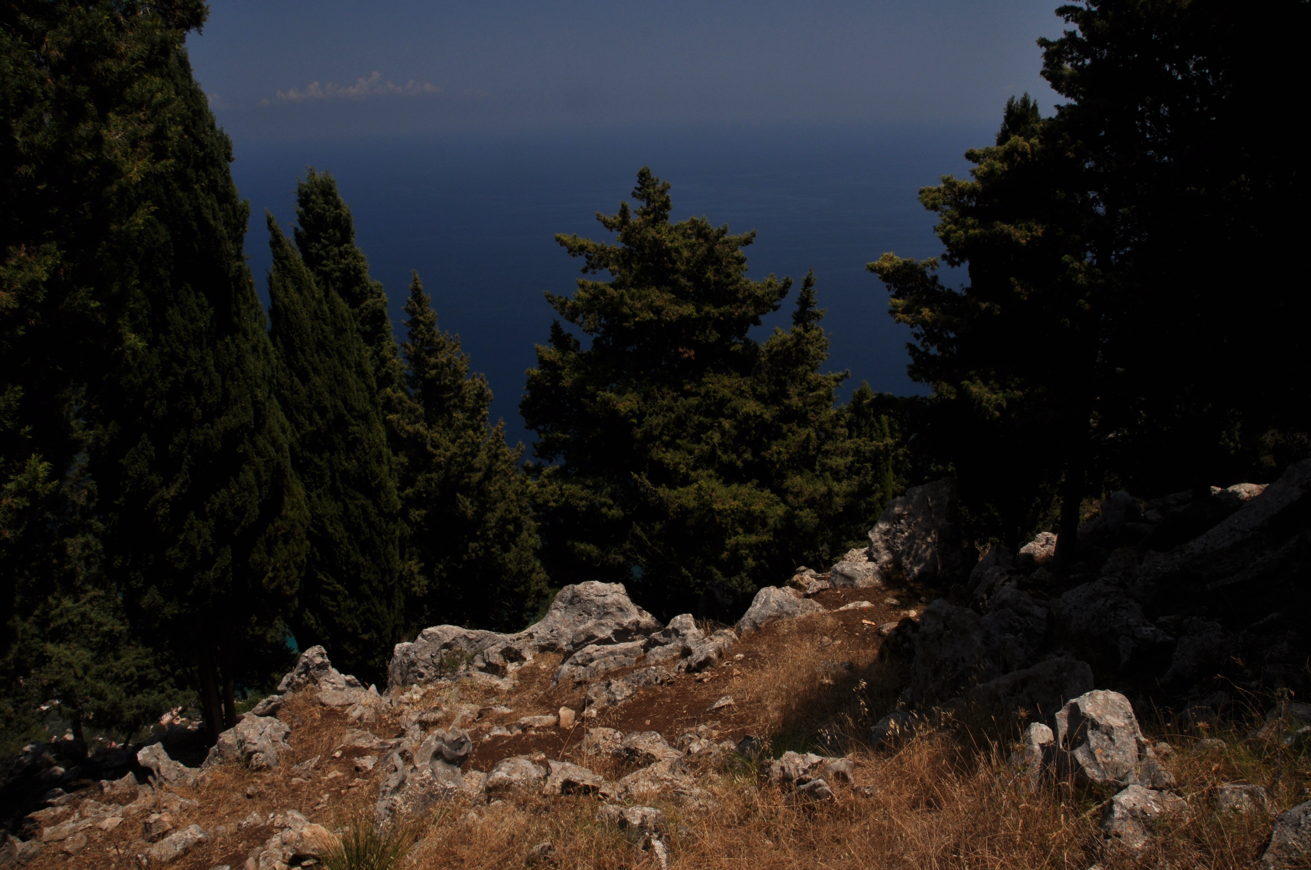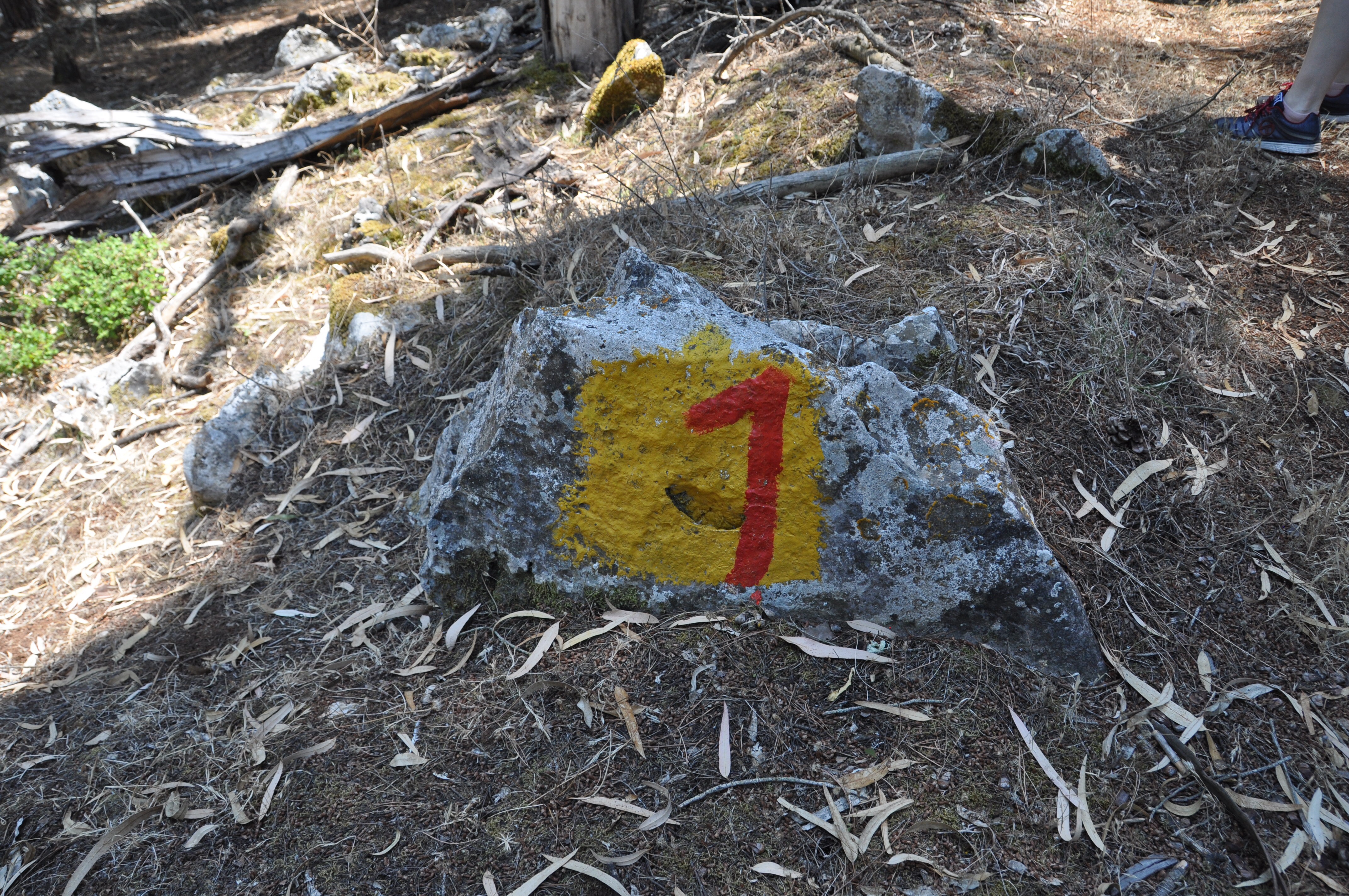 Santuarion jälkeen reitti lähti melko pian metsään ihan polkua pitkin. Lähtöpaikka oli aika ”herran hallussa” joku taulu siinä oli, mutta eipä muuta, ja tietysti polku. Käveleminen on Sisiliassa perinteisesti köyhien puuhaa, joten vaellusreittien viitoitus ei ole Alppien tasoa. Ilman karttaa ei pärjää ja karttaa on syytä osata myös lukea eikä kompassistakaan haittaa ole. Silti reitit voi päästä ”hukkumaan”. Tosin kun pääsimme Monte Pellegrinon pohjoisreunalle, joka on siis todellakin reuna, niin reittien merkkaaja oli löytänyt maalipurkin oikein kunnolla, joksikin matkaa…