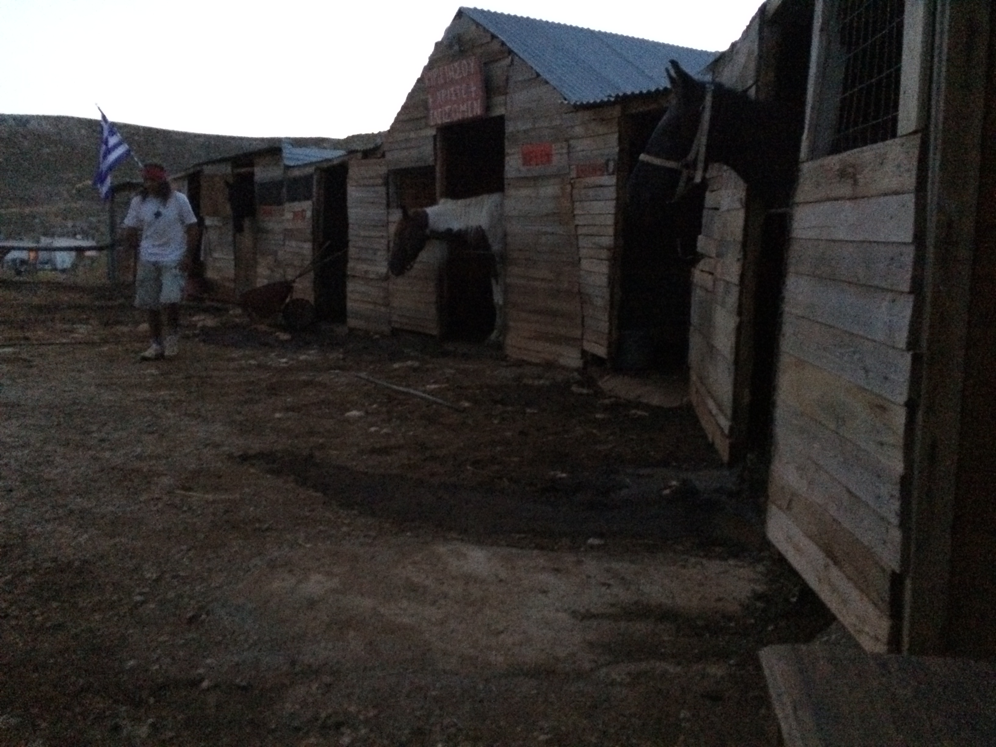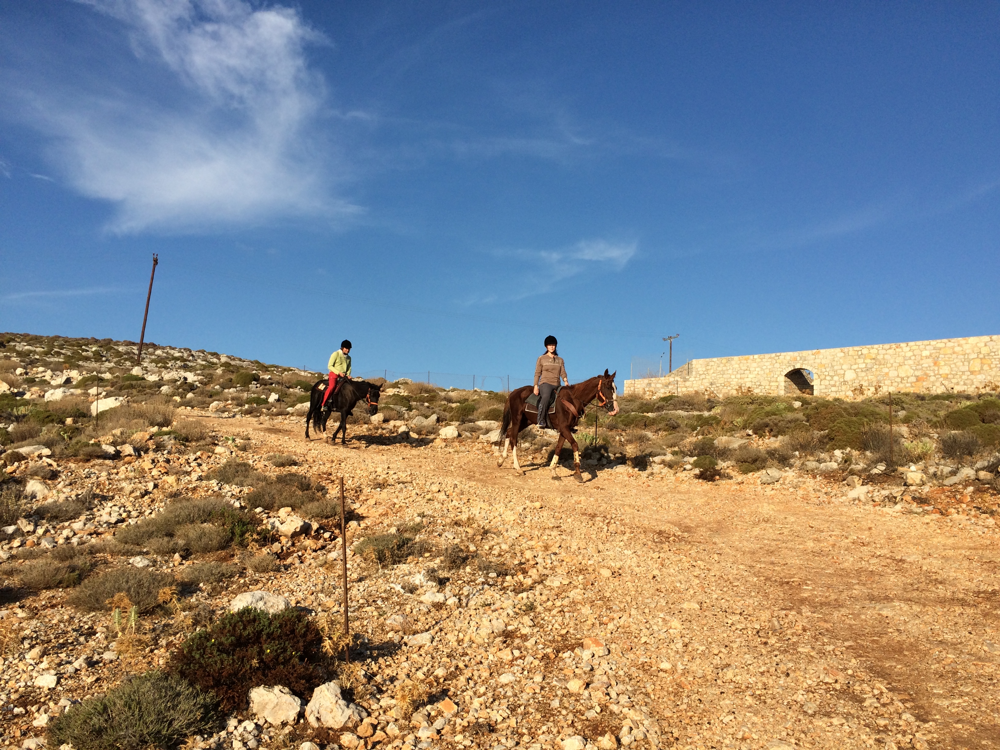 Kuten aiemmassa postauksessa totesin, Kalymnoksella voi tehdä muutakin kuin kiipeillä ja huristella skootterilla. Heti ensimmäisessä kiipeilykaupassa huomasimme, että he välittävät myös ratsastusretkiä. Ensin hieman kyselimme myyjäpojalta, että millaista osaamista retket vaativat. Heppu sanoi, että hänen mielestään retket soveltuvat ihan aloittelijoillekin, mutta kovempaakin pääsee niin halutessaan, tästä vielä soiteltiinkin varmuuden vuoksi ratsutilalle, josta vahvistettiin näin olevan, joten tehtiin varaus. Retkeksi valikoitui kuulemma paljon kehuttu reissu, joka sisälsi myös vierailun tippukiviluolassa.