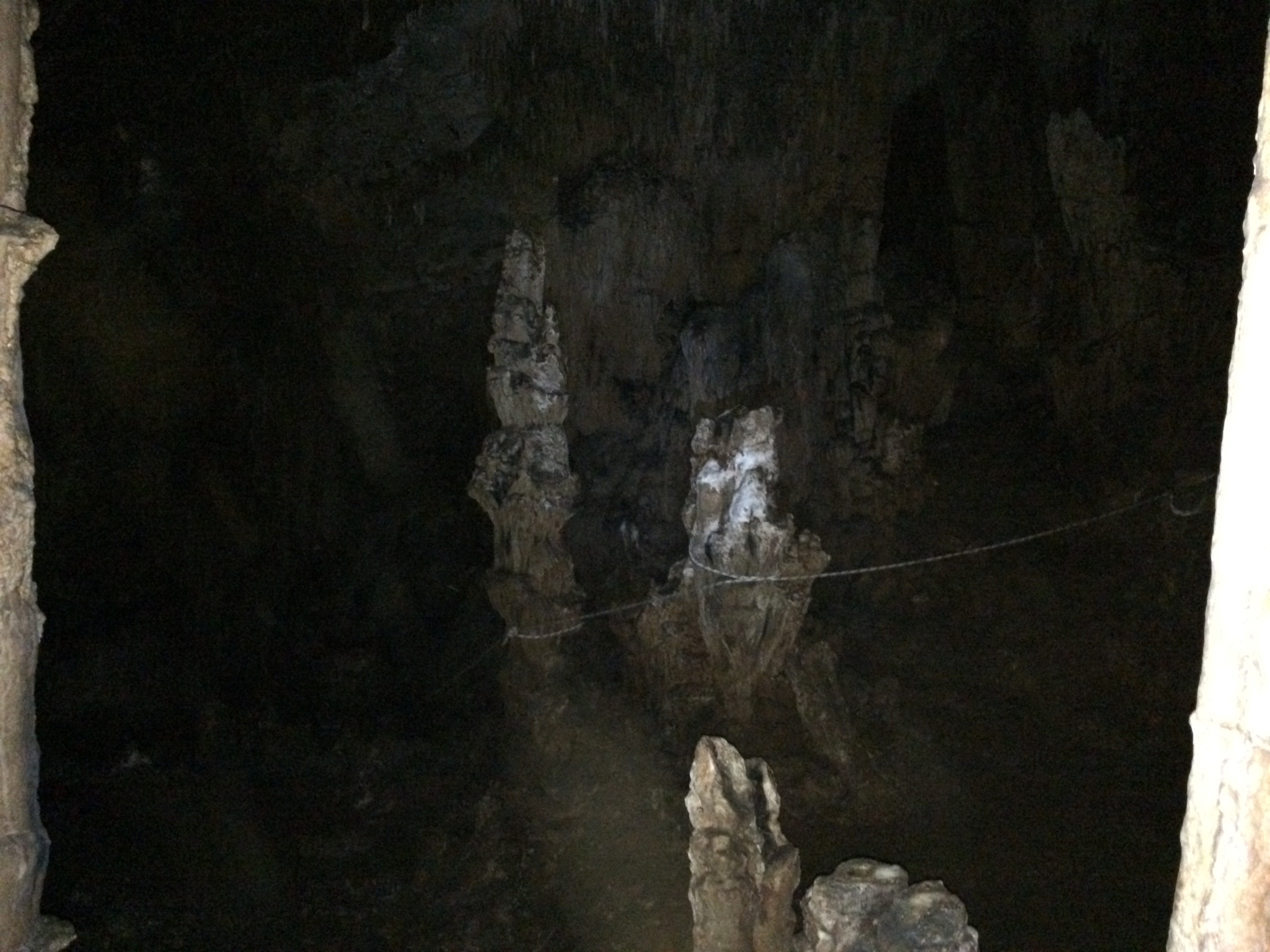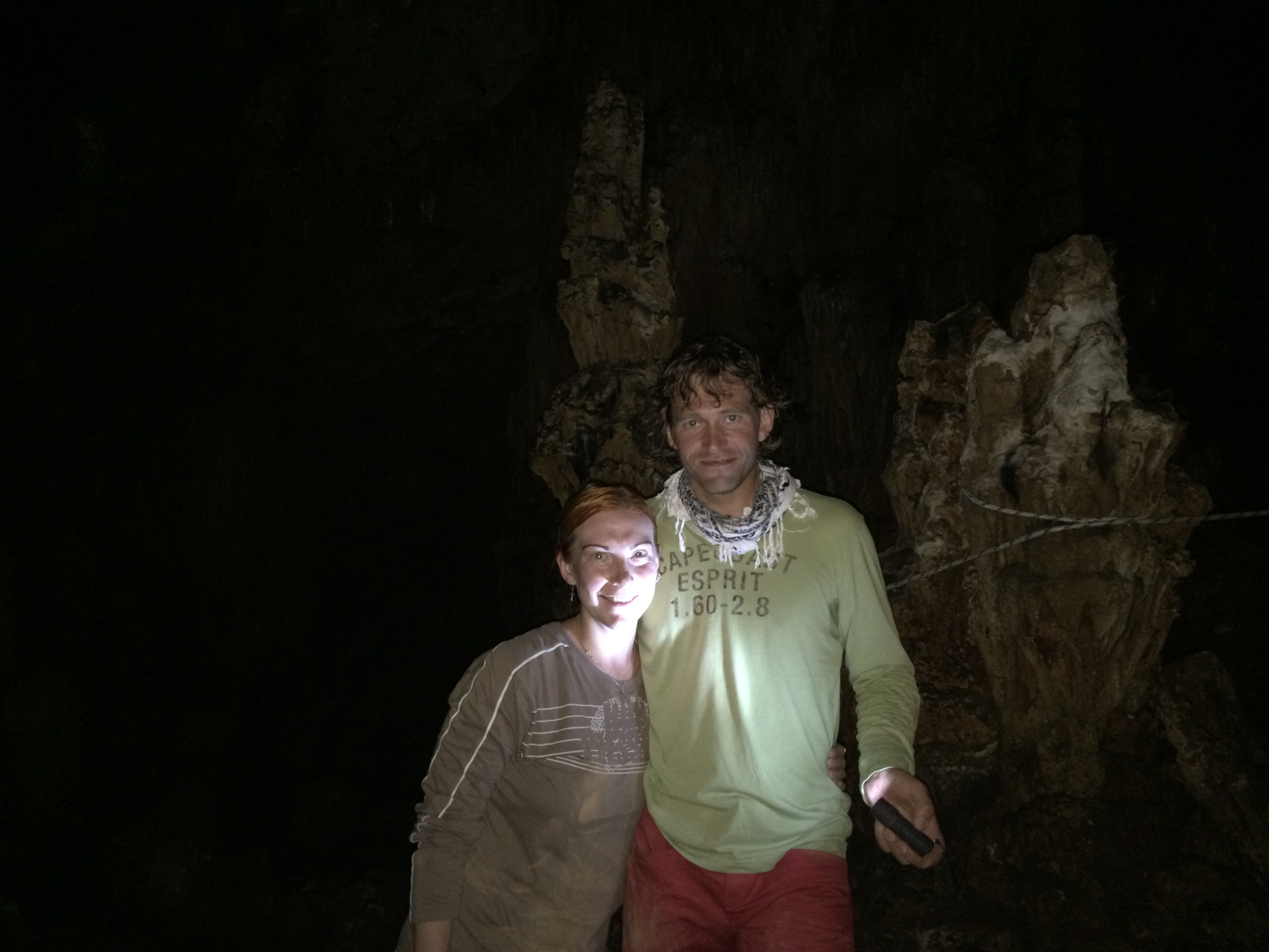 Itse luola oli todella vaikuttava! Niissä tippukiviluolissa joissa olen aikaisemmin käynyt on aina ollut valmiit valot. Toki joskus valot on näytösluonteisesti sammutettu, mutta nyt olimme ihan omien lamppujemme varassa. No eihän rundi luolassa mikään pitkä ollut, mutta vaikuttava paikka joka tapauksessa. Monen muotoiset ja väriset tippukivet ovat todella hienon näköisiä lamppujen hämärässä valossa! Valitettavasti jotkut vähemmän valveututuneet matkailijat ovat pätkineet tippukivien päitä matkamuistoiksi ja juuri siksi luola on suljettu rautaovella. Kaikenlaisia urpoja aina löytyy. Luolan ulkopuolella pudistelimme pölyt vaatteistamme ja oppaamme sekoitteli meille jääkahvit jääkahvipikajauheesta, heh, kaikkea sitä onkin olemassa…!