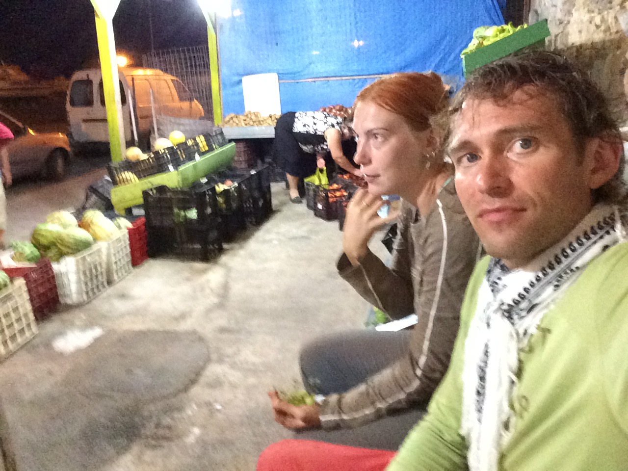 Tämän jälkeen ajelimme perheen vihanneskaupalle Pothian kylään ja istuimme odottelemaan miehen vaimoa, joka kyyditsisi meidät takaisin Massouriin. Odotellessamme juttelimme niitä näitä vihanneskaupassa töitä tekevän perheen tyttären kanssa ja söimme tarjottuja hedelmiä. Lopulta oppaamme vaimo saapui, tapasimme vielä perheen pojan, hyvästelimme isäntämme sekä koko perheen ja ajelimme takaisin Massouriin. Retki oli erittäin onnistunut ja varmasti palaamme tälle ratsutilalle myös ensi kerralla!