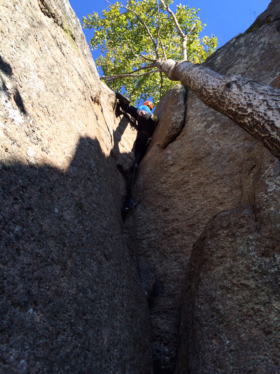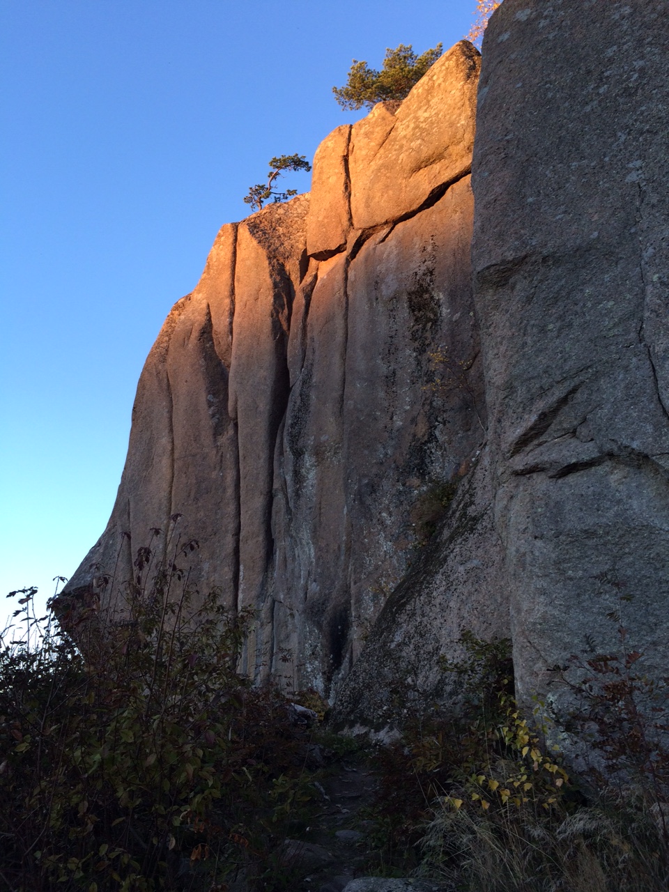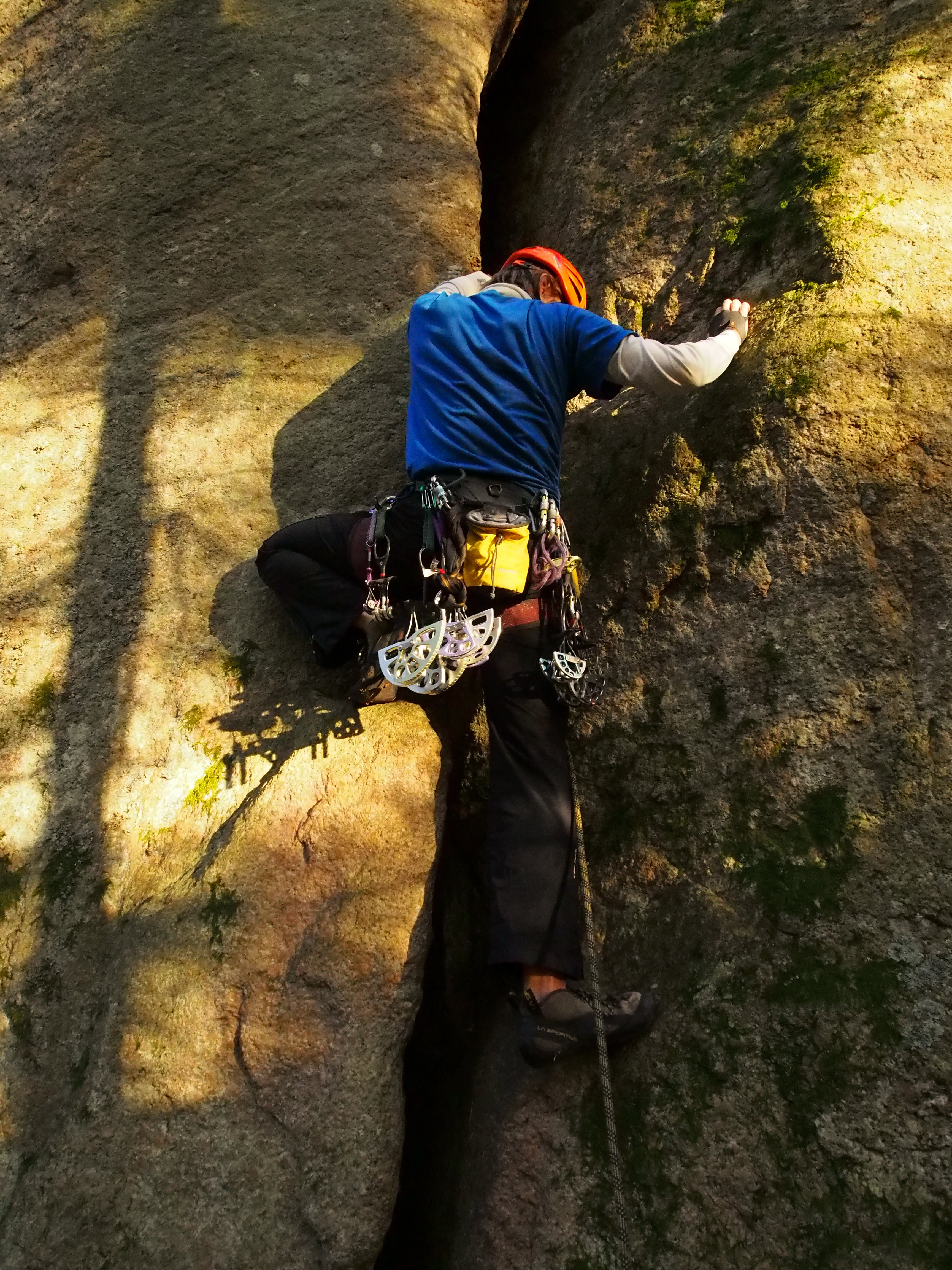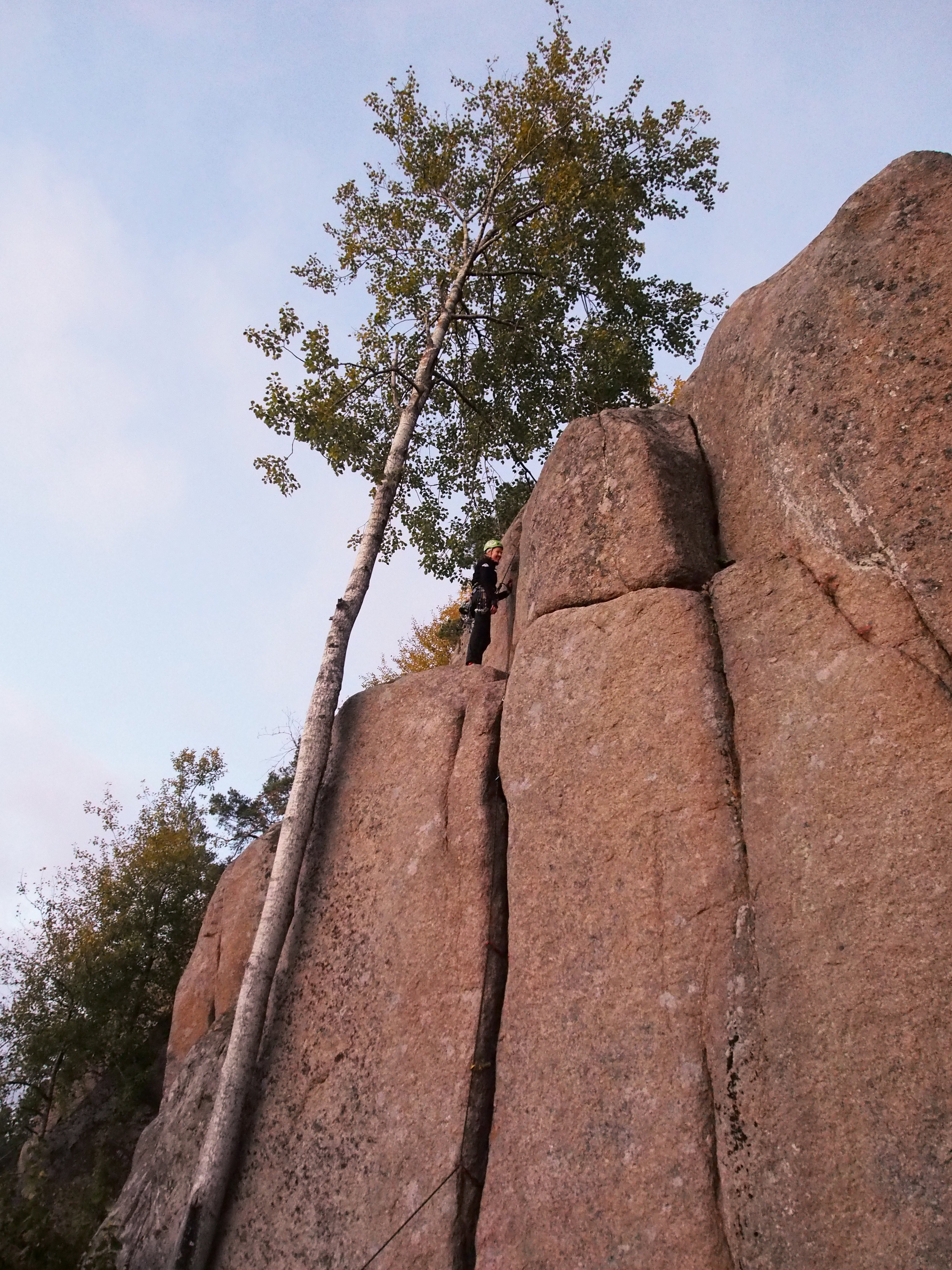 Minulla oli kunnia olla on ensimmäisessä liidivuorossa ja seuraavaksi reitiksi valitsin vähän helpompaa, tai niin ainakin oli tarkoitus. Markiisi (5-) vaan olikin hieman juonikkaampi reitti, ja alku kaikkein vaikein. Kustavin greidit tuntuvat aina ekana päivänä kovilta, kun ei halkeamakiipeilyä paljon muualla tule harrastettua. Hämärä alkoi jo laskeutumaan, kun päätettiin vielä antaa yritys Sähköpaimenelle. Pieni kosteus alkoi jo hiipiä kallion pintaan, ja yhden putoamisen jälkeen luovuin liidiyrkästä. Mikko kyllä pääsi melkein ykkösellä ylös, mutta alun jyrkkyys yhdistettynä kallion kosteuteen teki tepposet ja projektiksi jäi. Saatiin kuitenkin hyvin otettua tuntumaa, ja kun vielä viime tipassa varattu majoitus Hakkenpäässä Kleemolan vanhassa maatalossa osoittautui oikein viihtyisäksi oli Kustavin viikonlopun vietto todella onnistuneesti aloitettu.