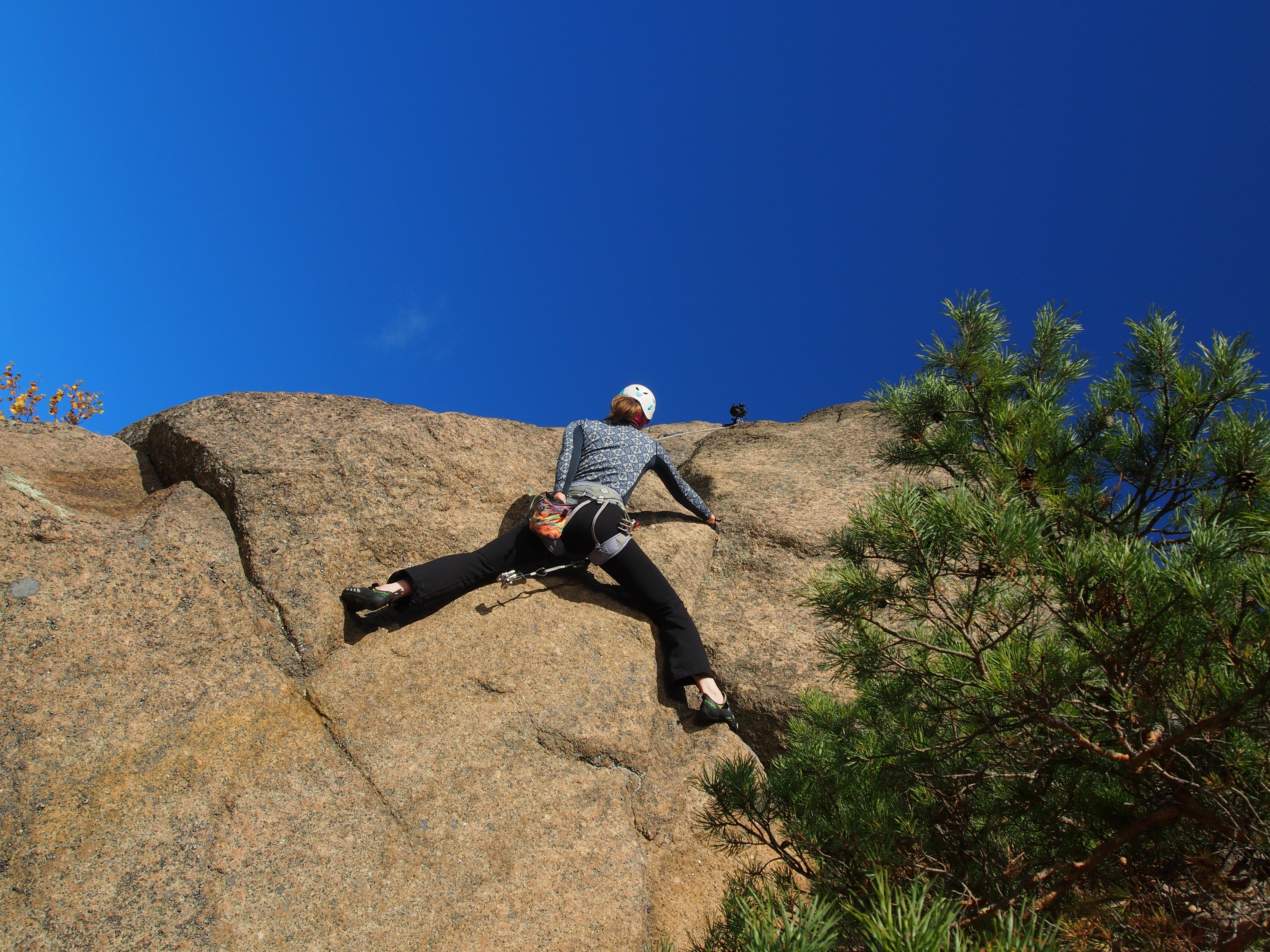 Sunnuntaina alkoi kahden päivän halkeamakiipeily jo vähän painamaan lihaksissa. Menimme porukalla Riskeläisvuorelle, ja aloitimme kiipeilyt laskeutumalla sektorille Epätoivon ranta. Juudas (5) oli nimensä veroinen, ja kakkostaessakin oli epätoivo iskeä kun ei otteita meinannut löytyä sitten mistään. Espresso (5) olikin sitten jo komea, ihan ansaitusti tähtireitti ja sää taas niin lämmin ja aurinkoinen kuin vain toivoa voi. Päivän kiipeilylliset ansiot jäivät kuitenkin sekä minulta että Mikolta hieman köykäisiksi, mutta kallioilla meren äärellä oli hauskaa viettää kevyempää kiipeilypäivää ystävien kanssa. Mainittavan arvoinen suoritus on, että kiipesin reitin Tiira(4) peräti kahdesti, kun viereisellä Tuutikki-reitillä majaili lepakko ja sormien työntäminen sen kotihalkeamaan aiheutti äänekästä vastustusta. Monet Riskeläisvuoren sektoreista ovat siinä mielessä tylyjä, että kun alas reitin alkuun on kerran laskeutunut pitää sieltä myös jollain tavalla kiivetä ylös, jos ei halua palata uiden lähimpään matalampaan rantaan Uimaranta-sektorille. Kommitmenttia liideihin ei siis ole kovin vaikeaa löytää.