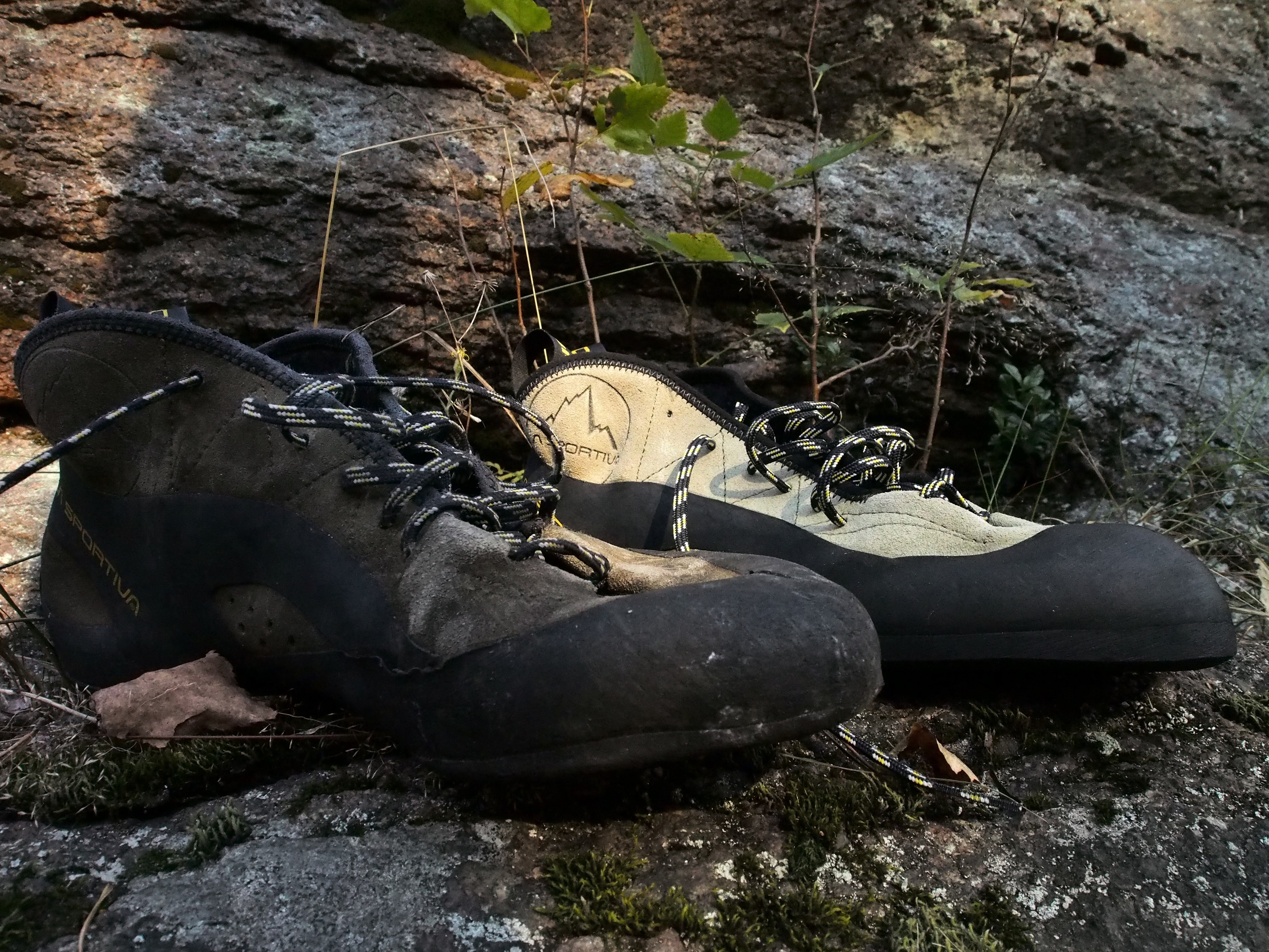 Tämän kauden kiipesin aikalailla kokonaan TC Prolla. Keväällä Finalessa taisin käyttää vielä toisia kenkiäni (5.10 Arrowhead tai jotain). Lisäksi muistan kerran vetäneeni ne jalkaan kesälomareissulla Val Massinossa mukamas tiukemman reitin alla. Muuten kaikki ulkokiipeily on tehty TC Prolla eikä ole ollut ikävä muita kenkiä. Reitit ovat olleet hyvin suurelta osin graniittia kaikissa muodoissa. Mukana satunnaisesti kalkkia ja hiekkakiveä. Lämpötilan puolesta kesähelteestä aina nollan pintaan. Kengät ovat kestäneet ihan kivasti. Hukkasin ne kertaalleen syksyllä Haukkakalliolle ja ehdin ostaa uudet, mutta kun vanha pari edelleen löytyy, niin niillä mennään. Pohjausta ei ole vielä tarvinnut miettiä.