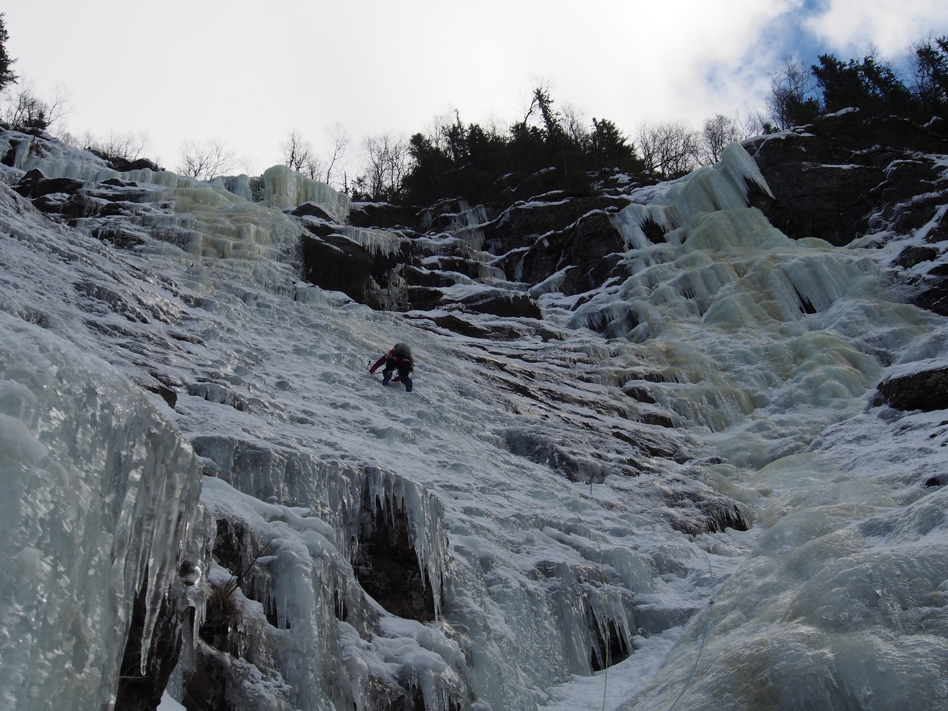 Sabotörfossenin viimeiseltä köydeltä. Ei mitään ihan maagista kun oli niin hyvät rappuset hakattuna. Reitillä mietti kannattaisiko Rjukanin reissut ajoittaa ennen paikallisia jääfestivaaleja.