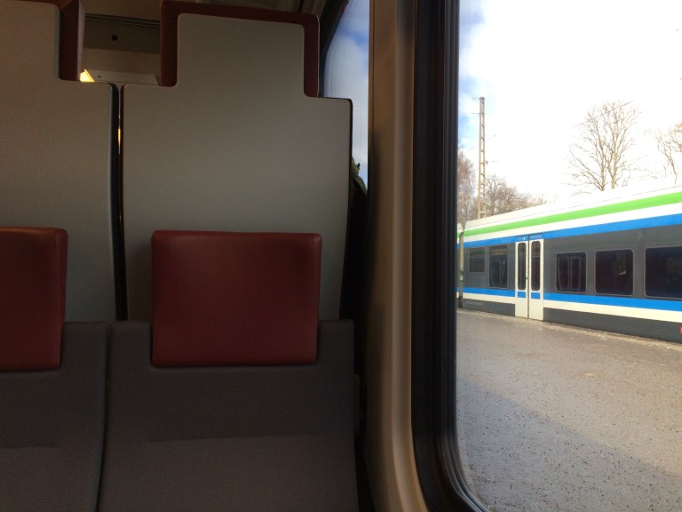 No, parempi kuuma kuin kylmä. Metromatka meni rutiinilla, samaa reittiä käytän ForSkiin Himos-reissuille lähtiessä. Junia lähti 2 samaan aikaan, P- ja I-juna, eli Myyrmäen ja Tikkurilan kautta menevät junat. Minulla ei ollut hajuakaan onko toinen nopeampi kuin toinen, valitsin I-junan, koska arvioin, että raide 2 on lähempänä kuin raide 17. Juna lähti sopivasti juuri kun olin päässyt istumaan. Kyyti oli mukavaa kuten junakyyti yleensäkin on. Tikkurilan jälkeen junassa oli tilaakin mukavasti, tai se oli melko tyhjä. Miksiköhän? Junan näyttöruuduilta oli helppo seurata missä mennään ja perillä olin noin 50 minuuttia sen jälkeen kun lähdin tallustelemaan kohti metroasemaa. Ihan hyvin, kun vielä huomioi, että seutulippu maksaa 5€…