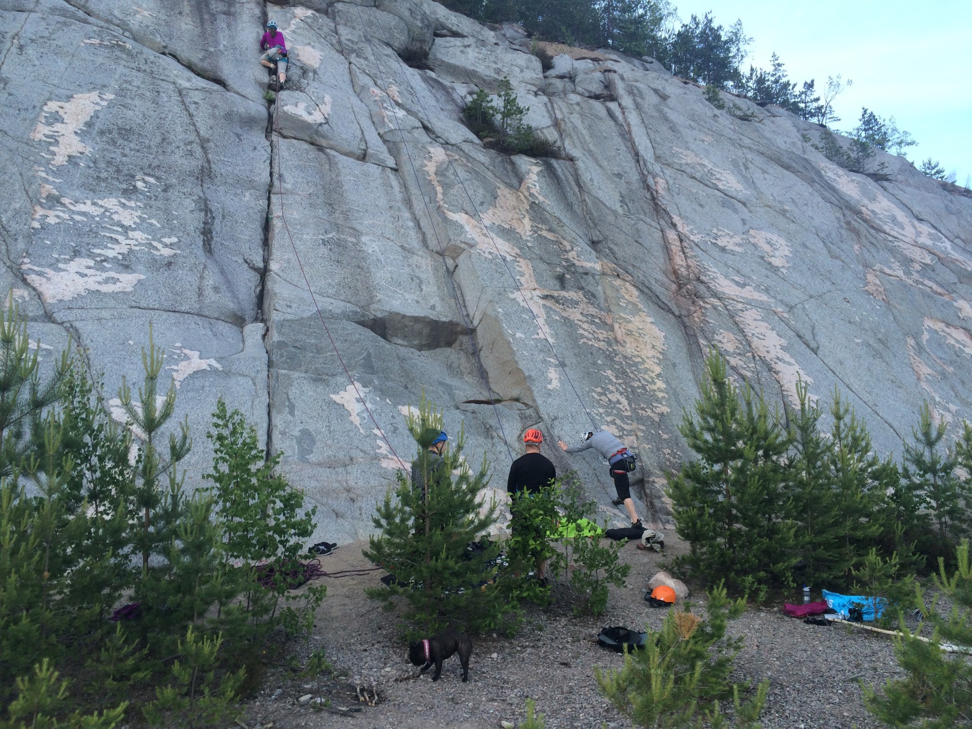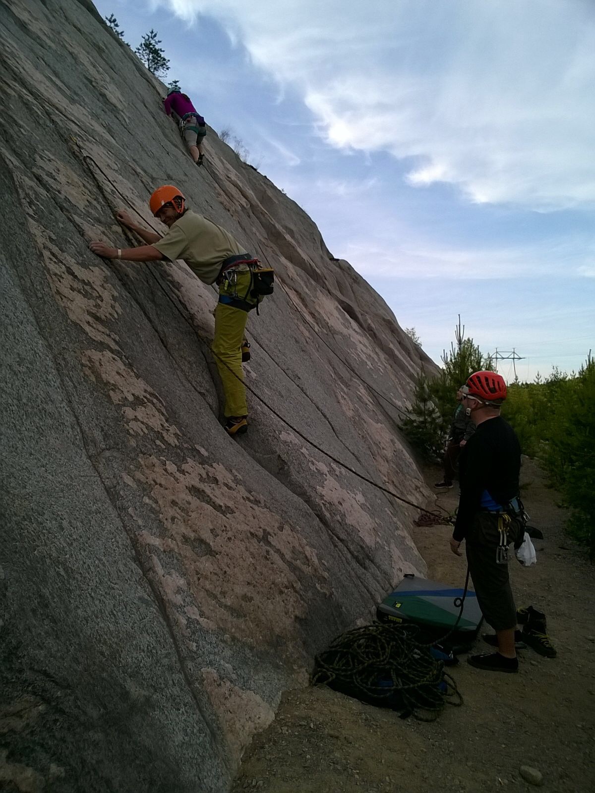 Viime kesänä kehuin Italian ja Sveitsin reissun innoittamana släbikiipeilyn maasta taivaaseen ja samalla harmittelin, että släbejä on Suomessa kovin vähän tai ei miltei lainkaan. Mutta mitä vielä, löytyihän se släbi! Mäntsälässä sijaitseva Nalkkilan släbi on mitä mainioin släbikiipeilyn harjoittelupaikka! Reittejä on vitosista seiskoihin ja kivi on vielä liukasta kuin mikä. Loistava paikka treenailla släbejä!
