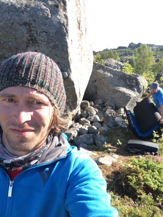 Eikä tässä vielä kaikki… Lopuksi vedimme Veskun kanssa pädit esiin ja lähdimme tutkimaan upouuden ja todella näyttävän bouldertopon reittejä Kallen leirintäalueen kupeesta…