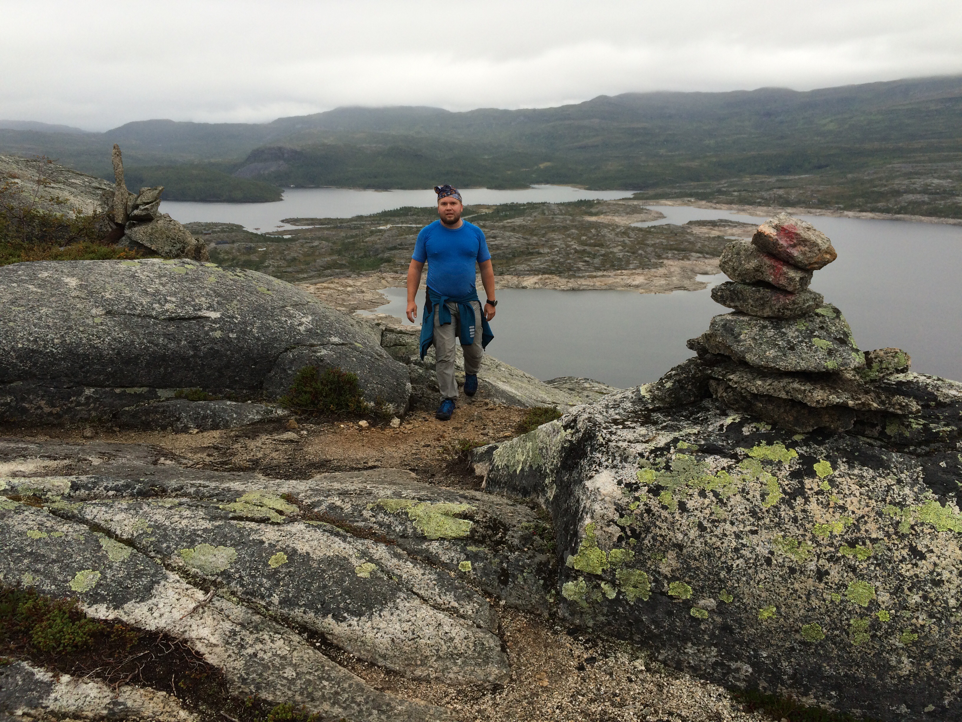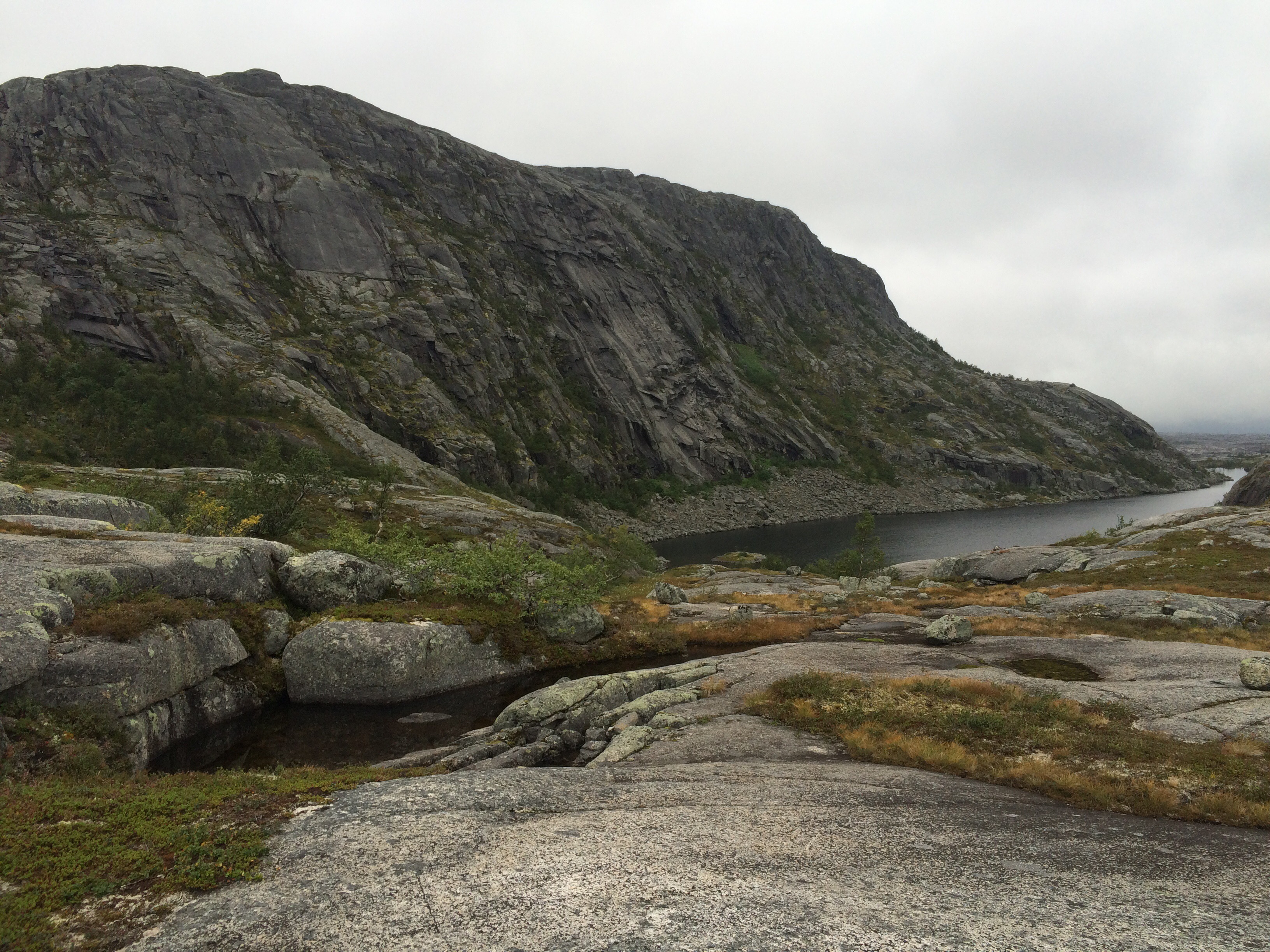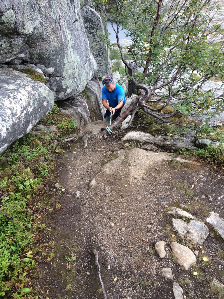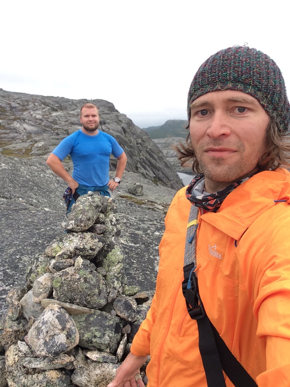 Tarkoitus oli kiivetä aamulla kolmen köyden mitan släbi Haugfjellin huipulle, Mikko oli reittiä kovasti kehunut. No märkäähän se oli, joten päädyttiin Veskun kanssa kipaisemaan vaellusreittiä Haugfjellin huipulle. Mikko ja Jukka seurasivat hetken matkaa perässä, mutta kääntyivät pian takaisin ja aloittivat paluumatkaan Taipaleen kautta. Pian mekin seurasimme Veskun kanssa esimerkkiä ja lähdimme kohti Helsinkiä…
