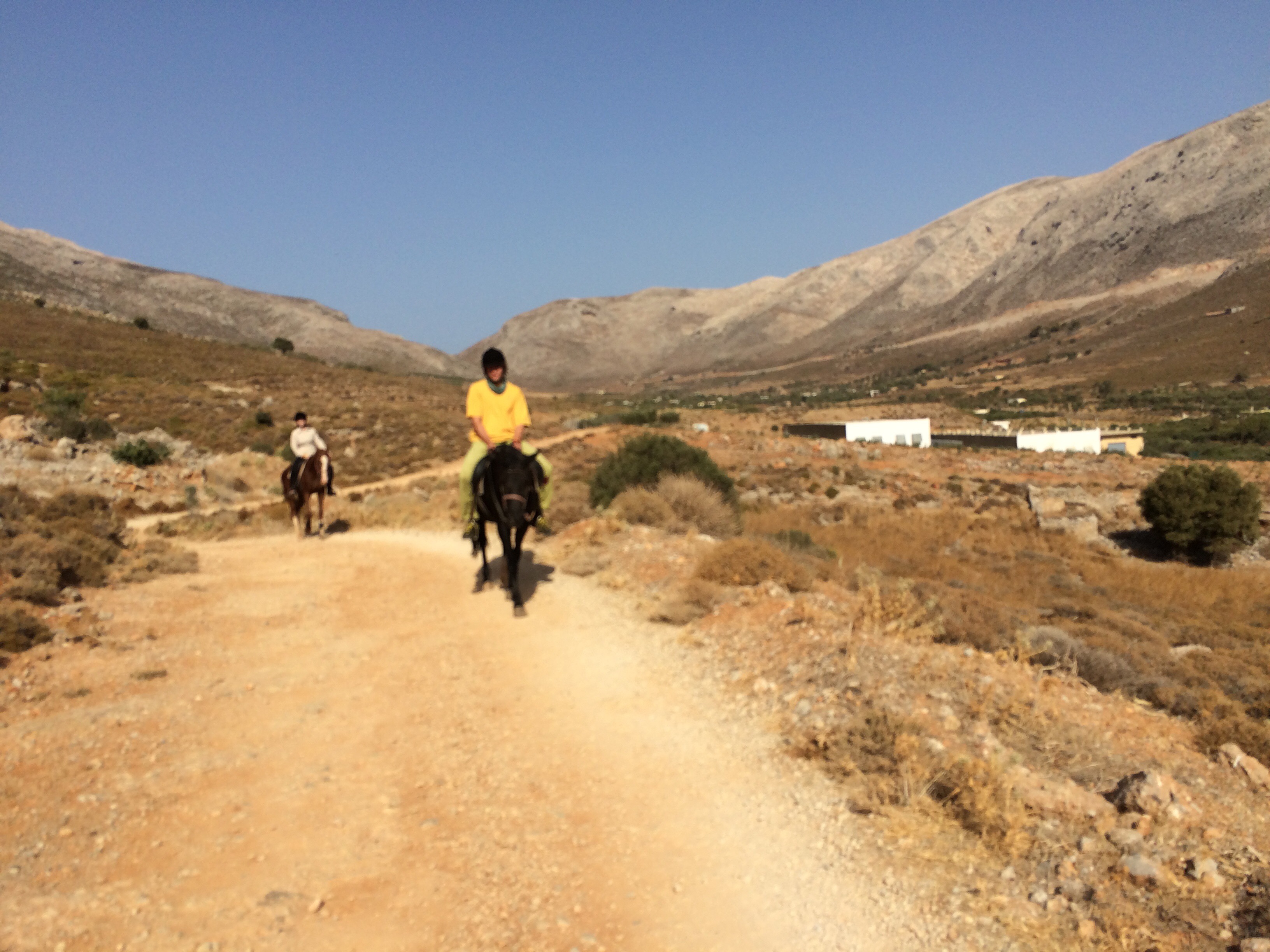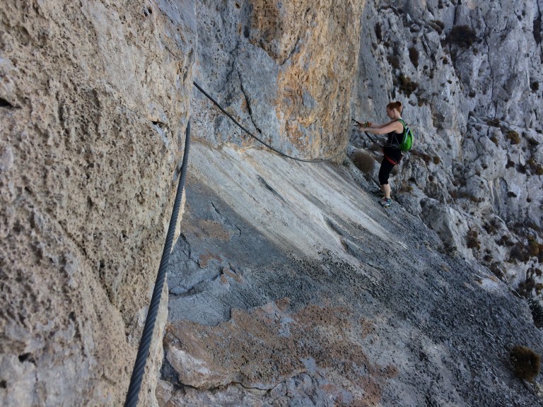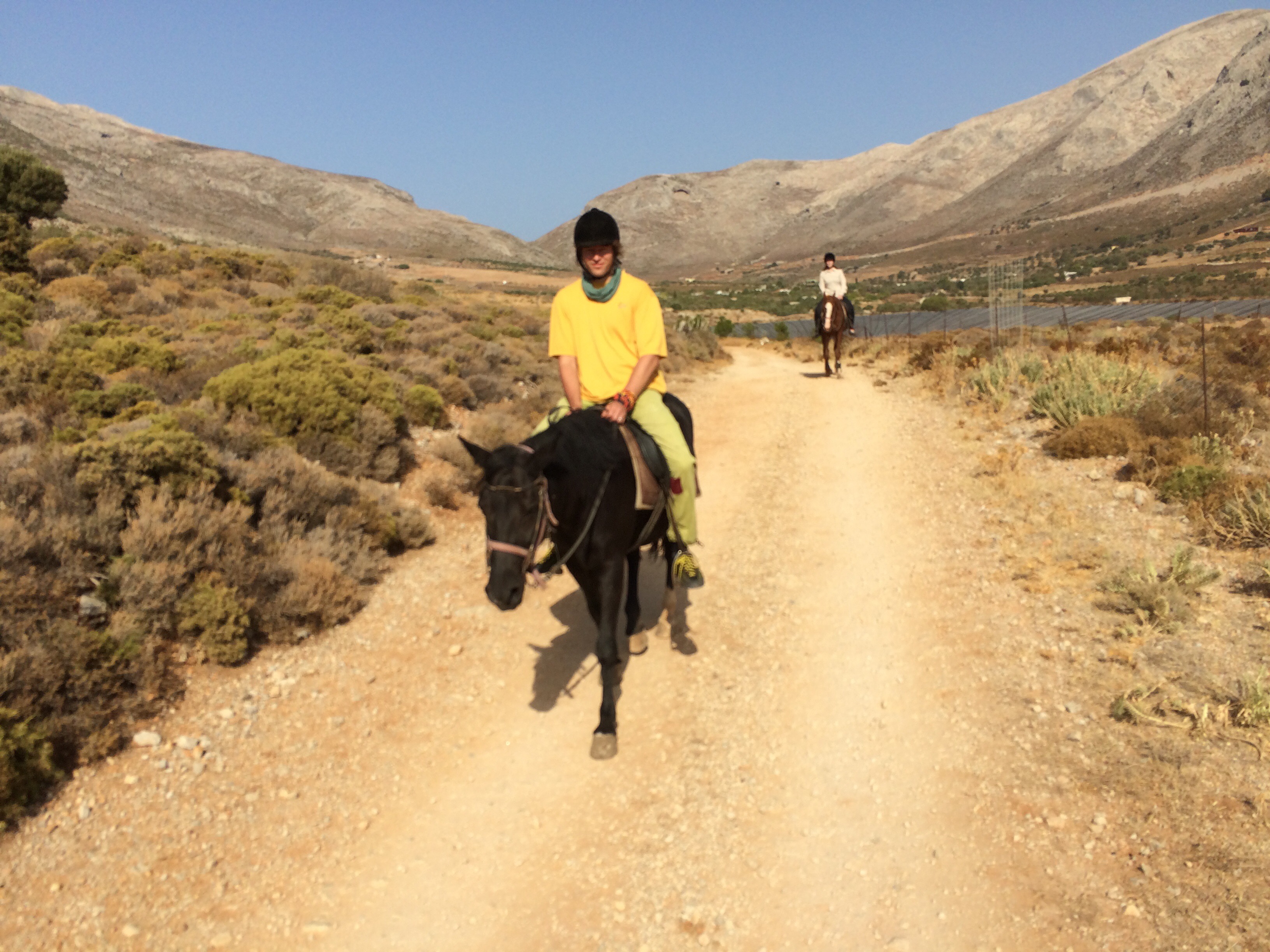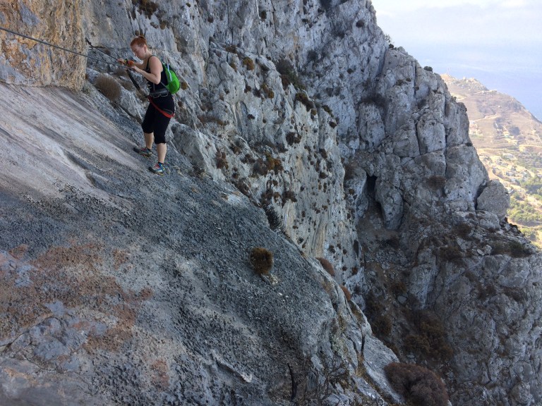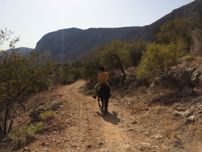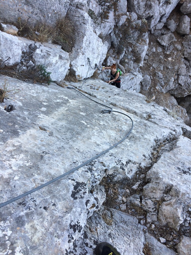 Minun kohdallani reissun suurin saavutus liittyi ratsastukseen ja oli se, että opin keventämään ravissa. Tähän mennessä olin ihmetellyt Päivin ohjeita, että seuraile jotain hevosen etujalkaa. No eihän sitä edes näe! En ole siis tähän mennessä tajunnut koko kevennyksestä yhtään mitään. No nyt teimme niin, että Päivi sanoi minulle tahtia ja siitä se oikea rytmi sitten vain jossain vaiheessa ”naksahti”. Ravi helpottuu itse asiassa todella paljon, kun löytää rentouden ja oikean rytmin keventämiseen. Loppujen lopuksi keventäminen alkoi sujua aina pienen hakemisen kautta. Ei se vielä tietysti automatisoitunut ole, mutta suunta on hyvä! Muista tekemisistä on pakko mainita vielä Via Ferrata Massourin yläpuolella, joka on todella upea! Etukäteissuunnitelmista patikka- ja kiipeilyretki Telendoksen ympäri ja merimelonta jäivät tällä kertaa odottamaan seuraavia reissuja, kaikkea ei kerralla ehdi.