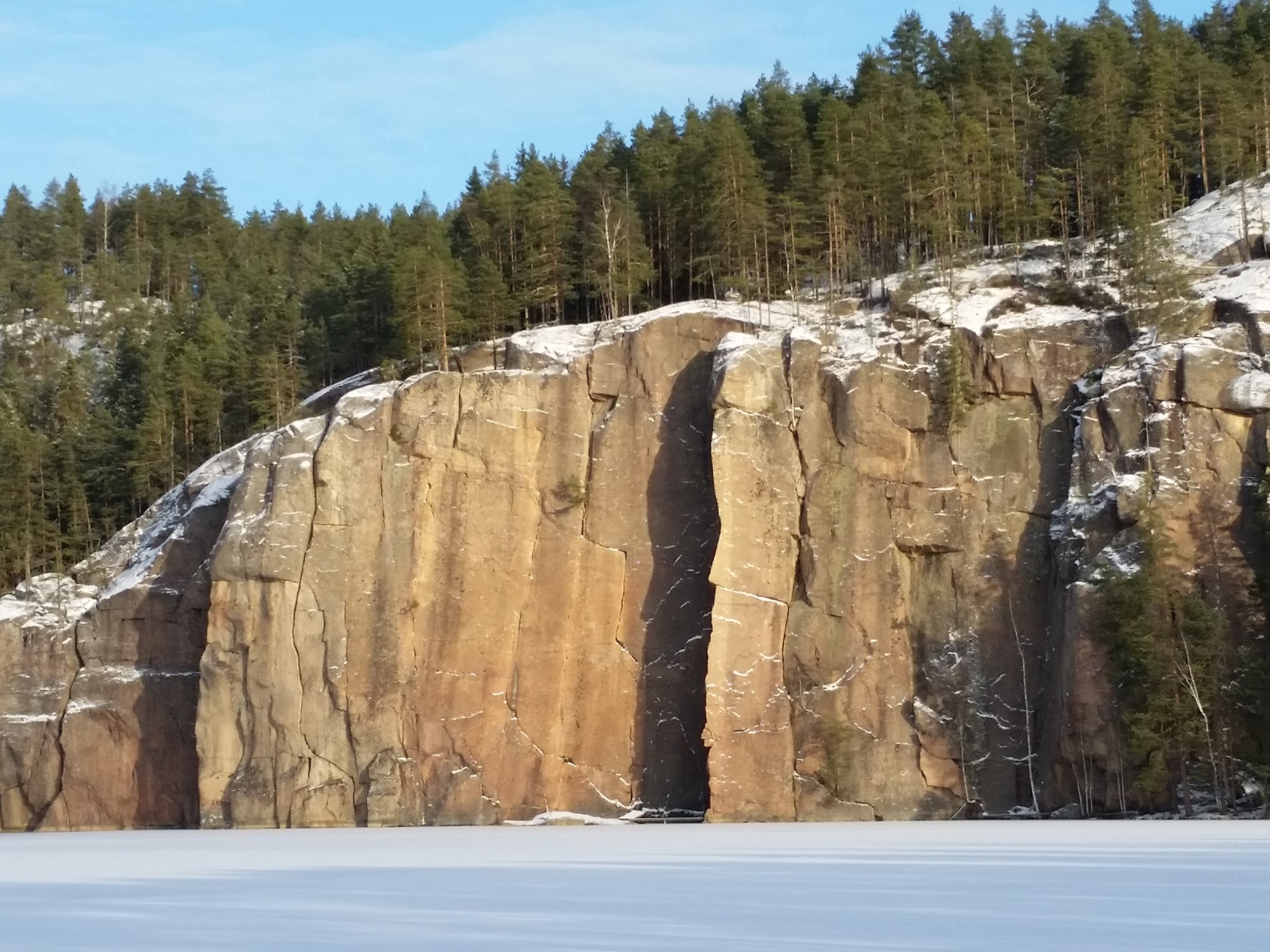 Olhavavuorella käytiin fiilistelemässä maisemia ja laitettiin Pirjo sekä Laura teknoamaan. Pojat huuteli asiantuntevia kommentteja ja nojailivat puihin. Kallio oli kuiva ja täysin kiipeilykunnossa, mutta ainakaan me ei nähty Jakea tai Jukkaa Kantilla. Jäätä alkaa jo pikku hiljaa muodostumaan joillekin Repoveden kallioille. Maasto on kyllä aika kuivaa ja voi olla ettei tähän etutalveen ehdi hirveitä putouksia syntymään, mutta täytyy yrittää päästä vähintään mixtaamaan tulevana viikonloppuna.