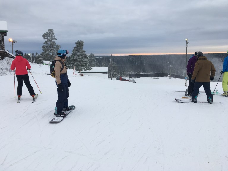 Me aloitimme laskettelukauden Swinghillissä neljän aikuisen ja kahden nuoremman polven voimin heti lauantaina, kun rinteet aukesivat. Eihän rinteet vielä nyt ihan optimikunnossa olleet, mutta oli se vaan hienoa päästä taas laskemaan pitkän kesän jälkeen!