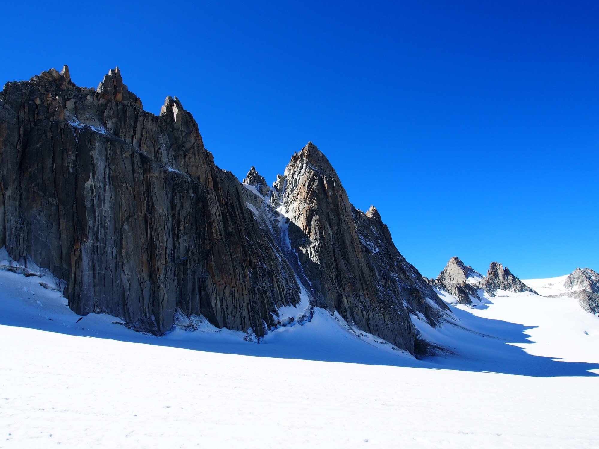 Les Strapontins du Paradis on 15 köyttä ja vajaat 500m. Yksi ylimääräinen köysi on syntynyt reitin alkuun kuun jäätikkö sulaa ja se taisi olla samalla kruxi. Muuten vaikeustaso on aika tasaista 5c luokkaa aina siihen saakka mihin me päästiin eli ysin toppiin. Kiipeily oli koko ajan hienoa. Ei liian helppoa, mutta suht rullaavaa. Reitillä pysymiseen täytyi panostaa jonka suhteen onnistuttiinkin hyvin. Otettiin kuitenkin aikataulun kanssa aamusta alkaen vähän turhan rennosti ja se kostautui reitillä. Päätettiin laskeutua viimeisestä pultatusta paikasta linjaa pitkin, vaikka valoa olisi ollut vielä viitisen tuntia. Otettiin yksinkertaisesti varman päälle.