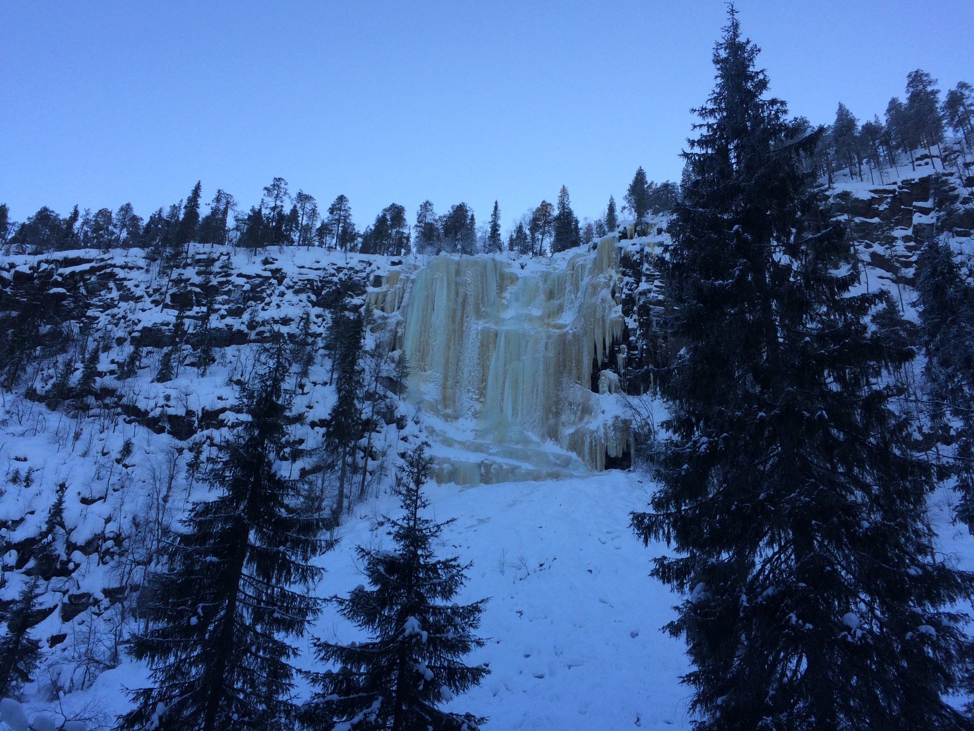 Palasin yöjunalla Rovaniemeltä tiistai-aamuna, ja vielä vaan pyörii mielessä kuvia Korouoman jääputouksista ja Piippukodassa vietetyistä mukavista illoista. Päällimmäisenä tietysti ensimmäinen liidinousu Ruskealla virralla, josta taidan olla ylpeämpi kuin oikeastaan mistään parin viime vuoden aikana tekemästäni asiasta. On kyllä hurjaa miten suuri vaikutus sillä on omaan uskaltamiseen, kun muut sanovat kokemuksen vahvalla rintaäänellä että ”kyllä sä siihen pystyt”. Ei ollut silti mitään painetta, mutta pikkuhiljaa vaan mahdoton muuttui omassa mielessä mahdolliseksi ja yritys loppuun asti toteutuneeksi nousuksi. Enpä olisi tähän reissuun lähtiessäni uskonut.