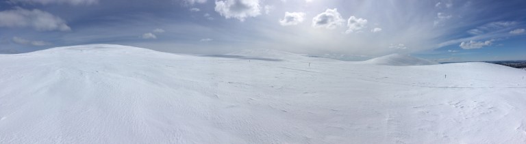 Tapasin loput retkeläiset Hangaskurun laavulla ja söin kevyen lounaan. Koska päivän ensimmäinen lasku oli niin upea, päätin kavuta vielä Lainion huipulle ja laskea kohti Kotamajaa. Jälleen sama upea tunne! Rinne oli tällä kertaa perustunturia, mutta lumi todella hienoa aivan ylhäältä asti. Mikä olisi hienompaa kuin päästellä hyvää vauhtia mukavasti viettävää tunturin rinnettä upeassa auringon paisteessa? Eipä juuri mikään! Lopulta istuin siltä päivältä jo sulkeutuneen Kotamajan terassilla ilta-auringossa ja söin loppuja eväitäni. Ketään ei näkynyt missään. Molemmat päivän laskut olivat olleet todella mieleenpainuvia ja päivä oli erittäin onnistunut. Tilanne oli jopa absurdin upea! Aikani istuttuani, täytyi matkaa jatkaa ja liu’uttelin alamäkeä takaisin Karilan Navettagallerialle. Päivä, johon lähdin ilman mitään odotuksia, osoittautui upeaksi ja mieleenpainuvaksi.