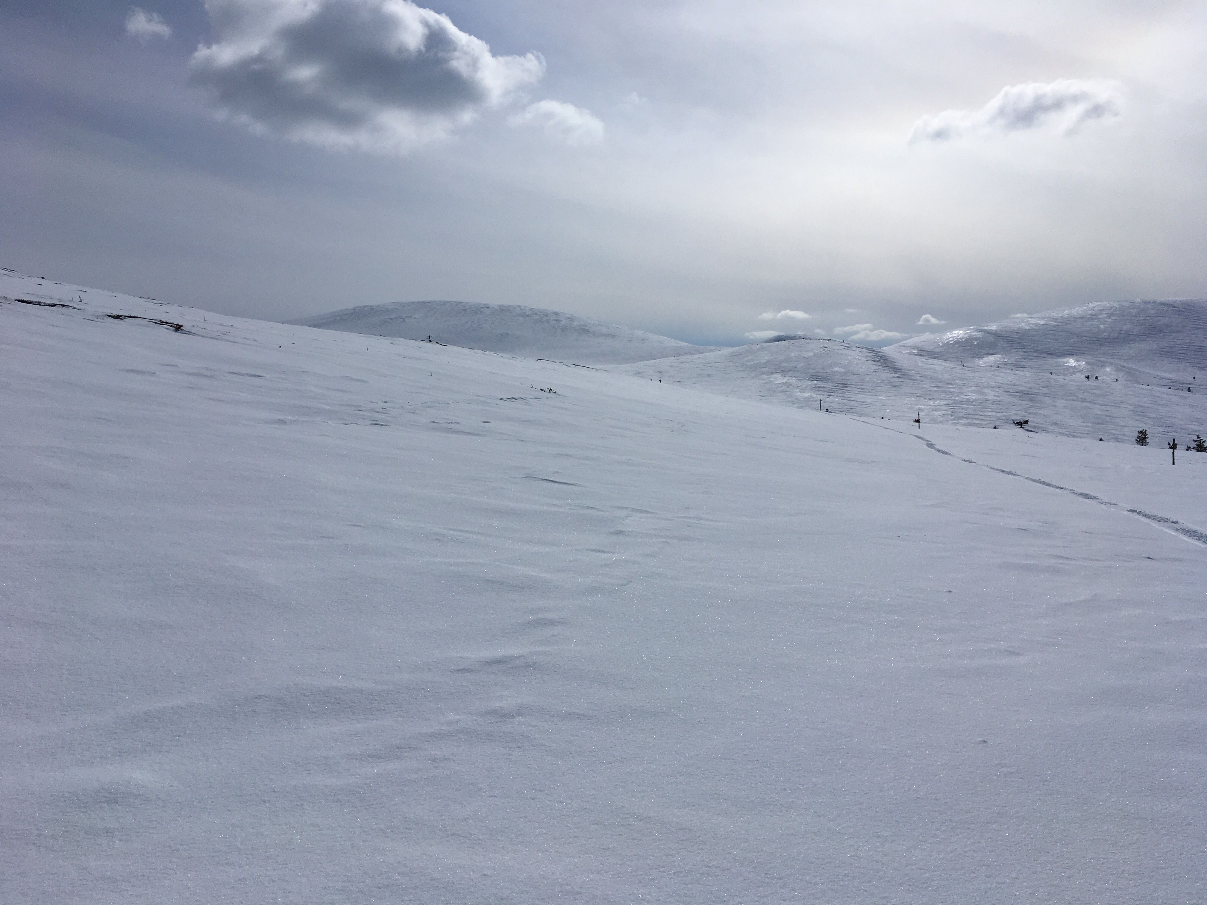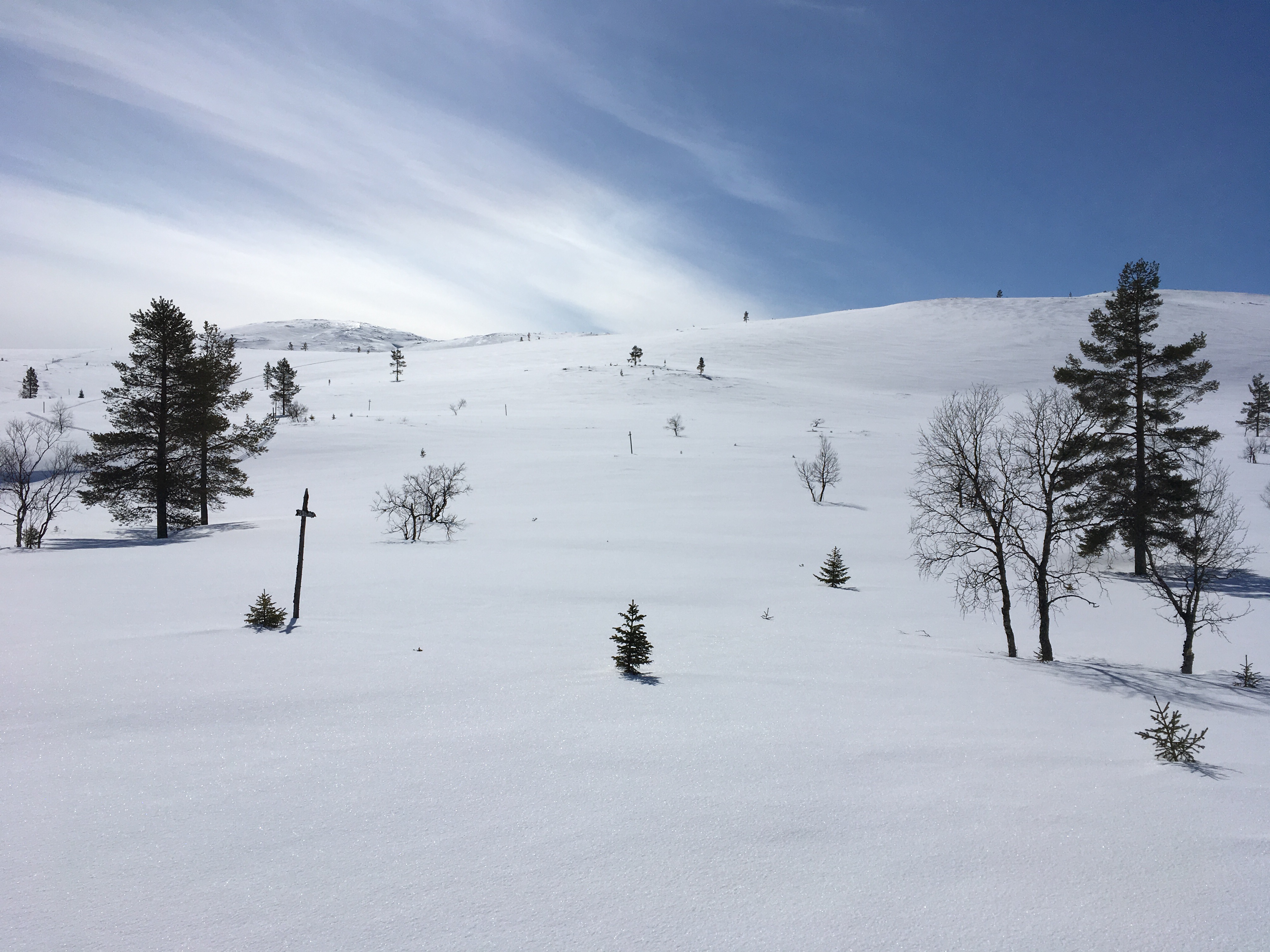 Pääsiäisen hiihtovaelluksemme Pallaksella oli siis varsin epäonninen. Helpolla ei pidä kuitenkaan luovuttaa. Niinpä tutkailin koko Ylläksen ensimmäisen viikon ajan seuraavan viikon sääennusteita Pallakselle. Olin jo valinnut tiistain Pallas-päiväksi, mutta aamu aukeni sen verran pilvisenä, että päätin siirtää Pallaksen keskiviikolle ja suosiolla laskea Ylläksen rinteitä tiistain. Valinta oli hyvä. Aamupäivästä Ylläksenkin laki oli aivan pilvessä ja rinteen näkeminen oli erittäin haastavaa. Helppo kuvitella millainen keli Pallaksella olisi ollut…