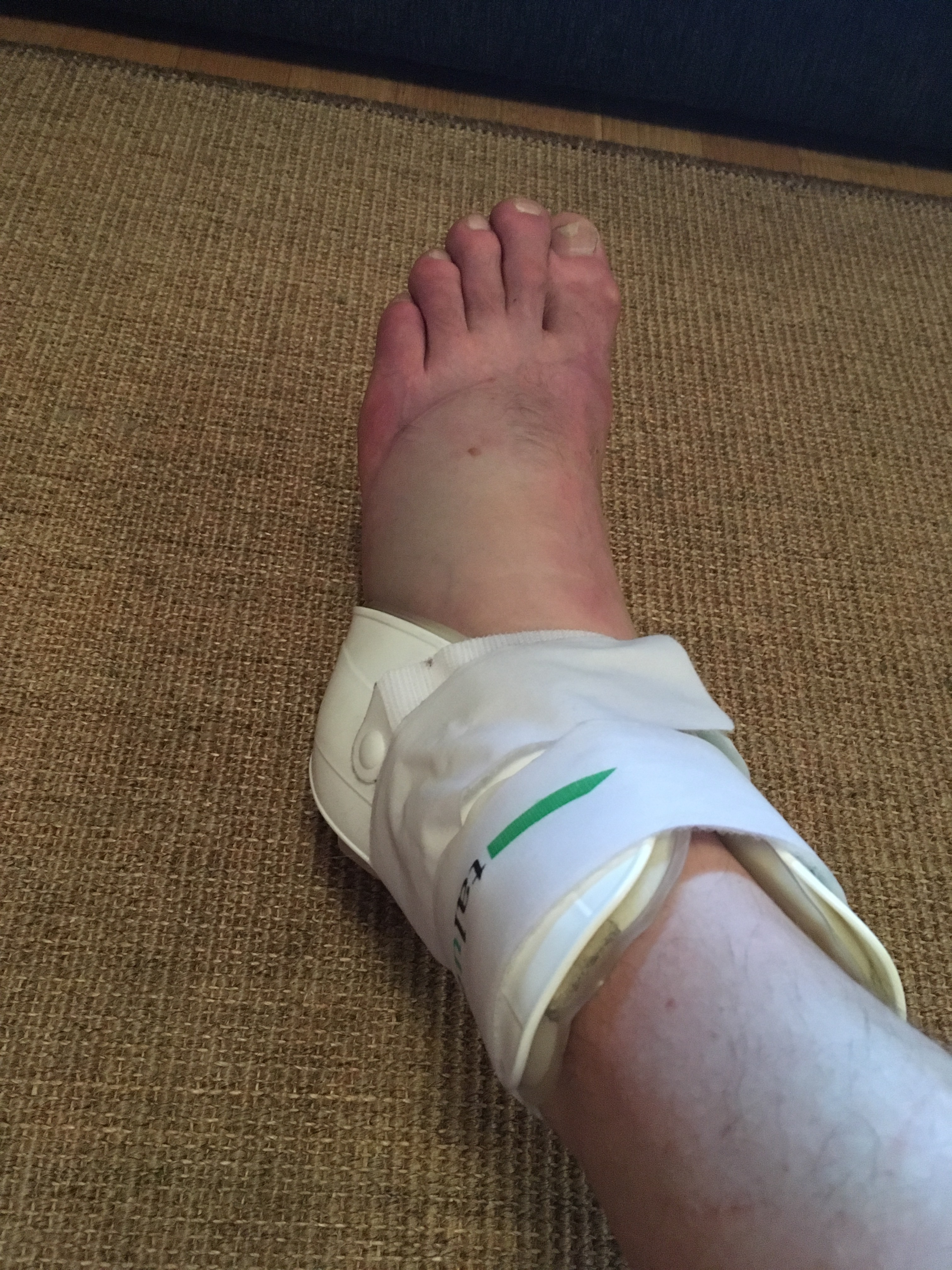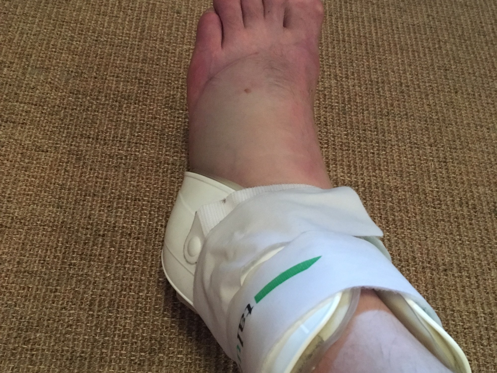 Niinhän siinä sitten kävi, että vasen nilkka vääntyi pahanlaisesti ja ei kun nilkuttamaan kohti autoa ja Pohjola-sairaalaa, josta hoitui lääkärin aika melkeinpä samantien ja lääkärikin oli suorastaan julkkistasoa, Eero Hyvärinen, eli jos joku muistaa niin herra leikkaili Kalle Palanderin vammoja vuosien ajan. No Eero totesi, että saattaa olla jänne pompannut kehräsluun takaa. Sama vamma siis mikä aikoinaan sattui oikeaan nilkkaan. Siitä sitten samana iltana vielä magneettikuvaan ja potentiaalinen leikkausaika aamuksi. No onneksi kuvista selvisi, että leikkausta ei tarvitsekaan, lepo riittää. Sain kontrolliajan kuukauden päähän ja eipä sitten muuta kuin nilkkaa kuntouttamaan.
