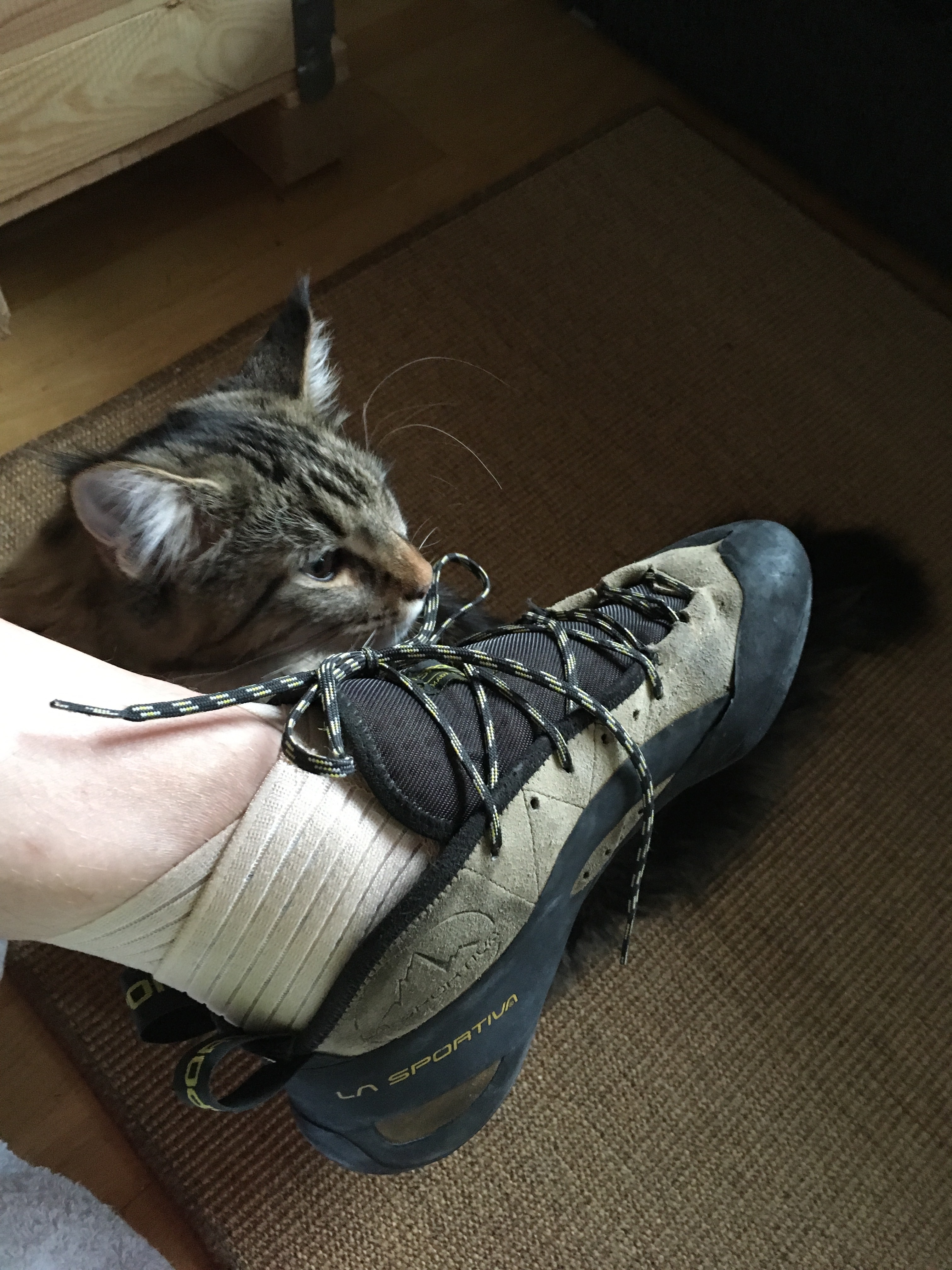 Viime kesänä tuli ajatus, että kiipeilykesään voisi valmistautua sillä asenteella, että voisi kiivetä taas jonkun vaativamman pitkän reitin. Vuosia on Lofooteilla käydessä katseltu reittiä Storpillaren, ehkäpä sitä olisi voinut uskaltaa lähteä yrittämään? Talvella tulikin treenattua sekä kestävyyttä että kiipeilyä että kestävyyskiipeilyä ihan hyvällä sykkeellää, mutta sitten koitti toukokuun puoliväli ja yksi nopea boulderkeikka Salmisaareen. Huomasin sieltä keskikaaren ja takaseinän taitteesta selkeästi pitkälle miehelle soveltuvan 6b+-reitin, jota piti tietysti yrittää. Ensimmäisellä kokeilulla jalka lipesi melko alussa, mutta toisella reitti meni oikein mukavasti. Viimeinen muuvi oli jonkinlainen kurotus vasemmalle ja kun molemmat kädet olivat tukevasti otteella päästin jalat otteilta alas. No eihän ne mokomat kädet mitenkään tukevasti olleet otteella vaan ote lipesi ja tulin jonkinlaisessa sivuttais heijarissa patjalle juuri väärällä hetkellä…