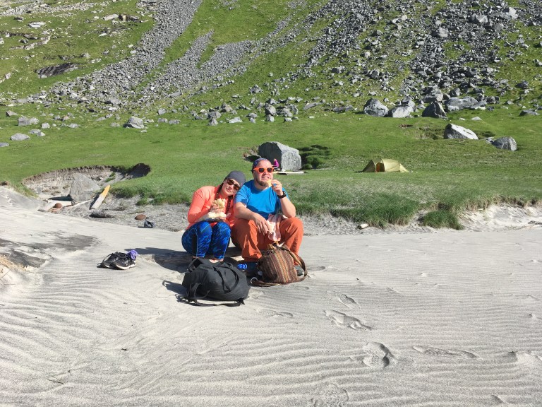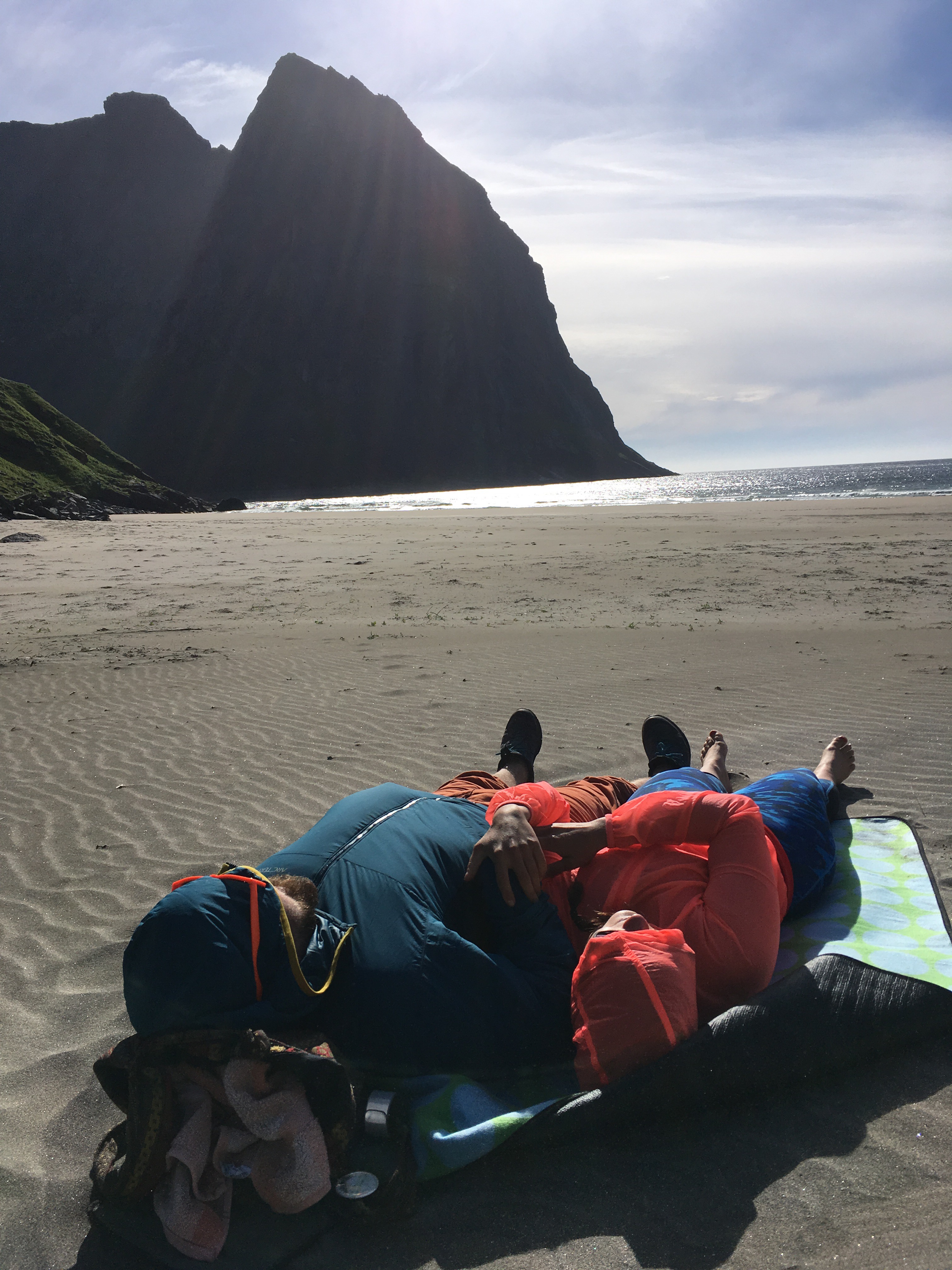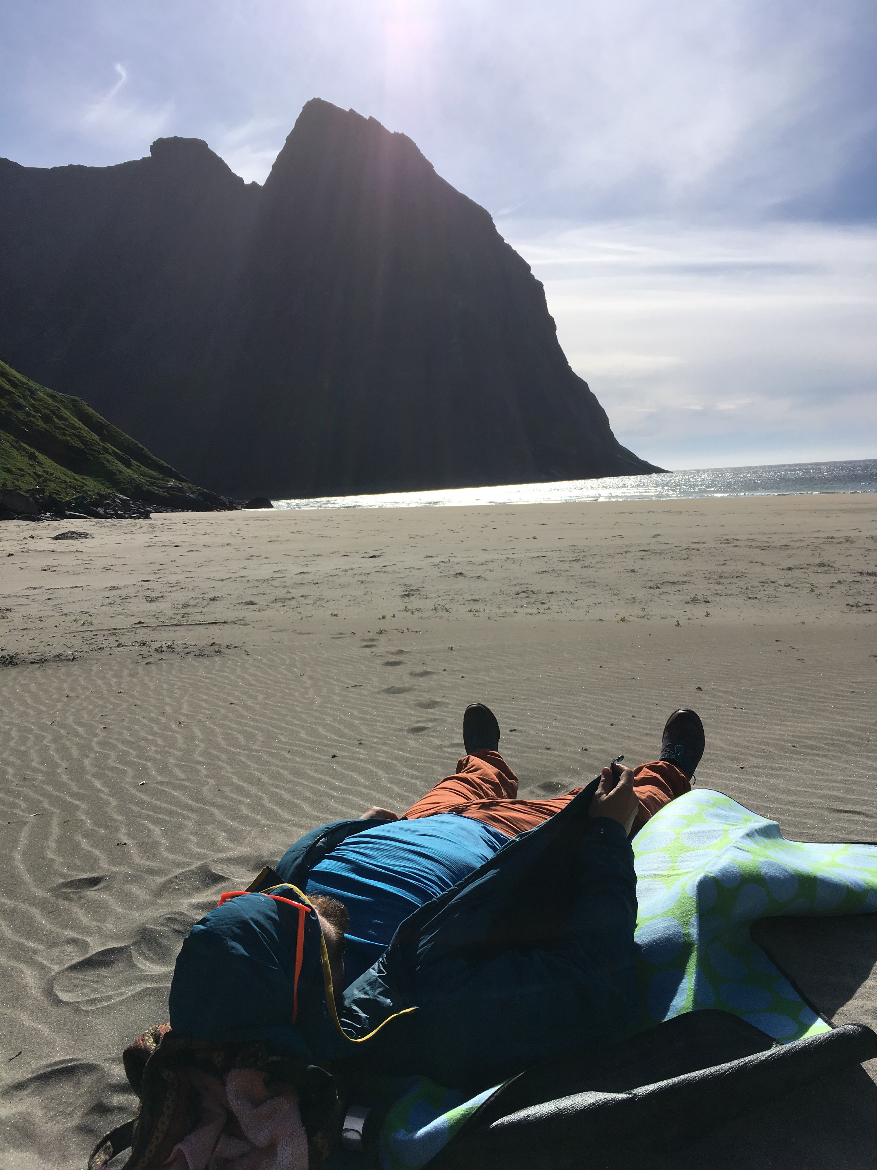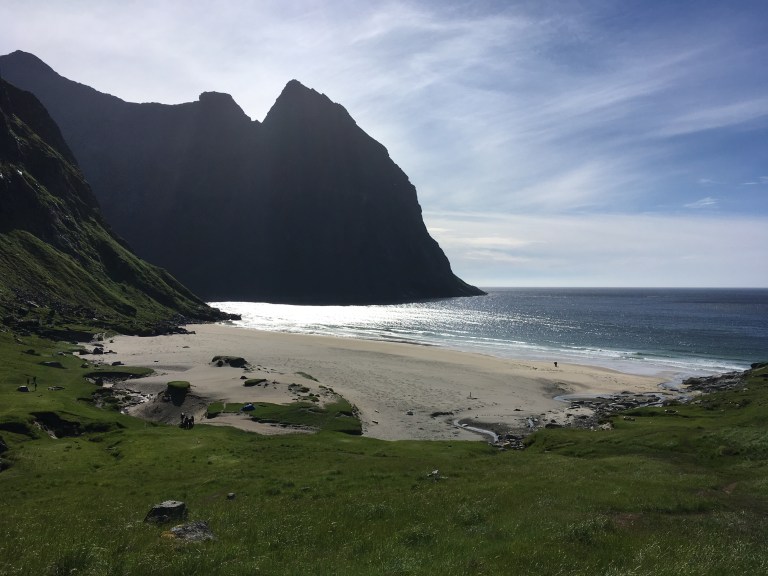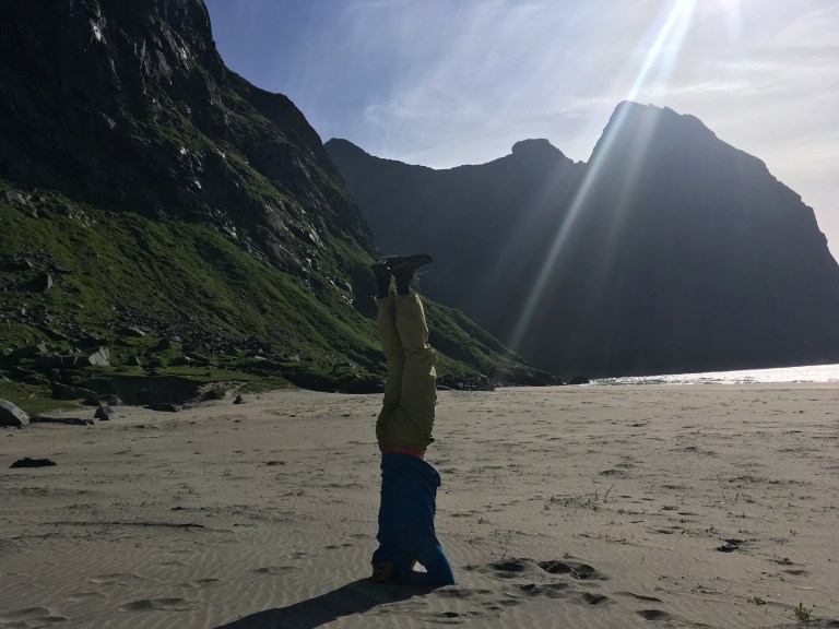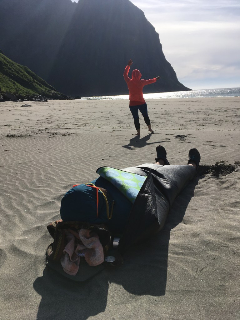 Vielä yksi juttu Lofoottien reissulta ennen uusia tarinakohteita. Vestpillarenin jälkeisenä päivänä kukaan ei jaksanut kiivetä. Minä, Hanna ja Vesku päädyimme pohdiskelujen jälkeen lähtemään ”instagram-rannalle” eli Kvalvika Beachille.