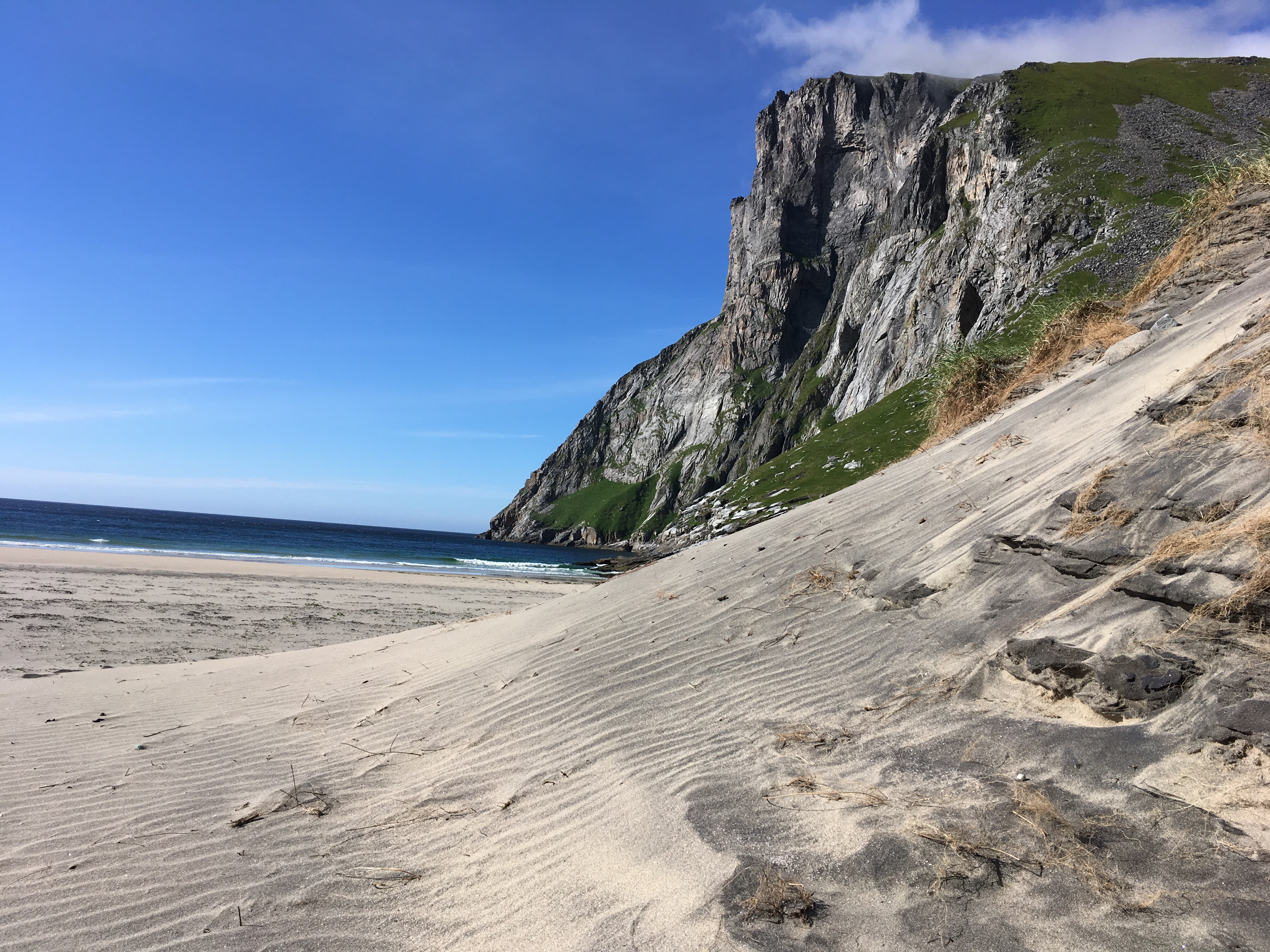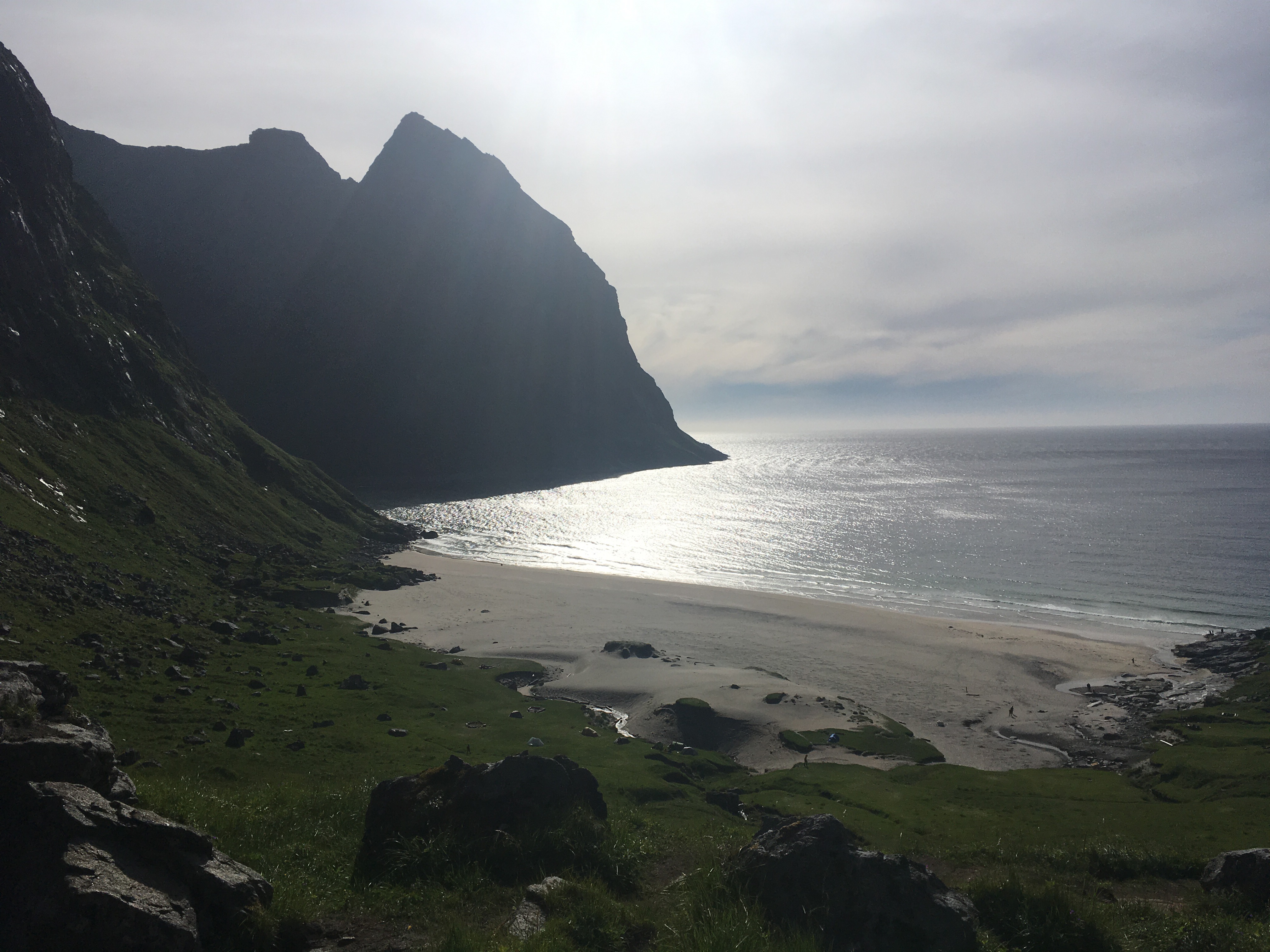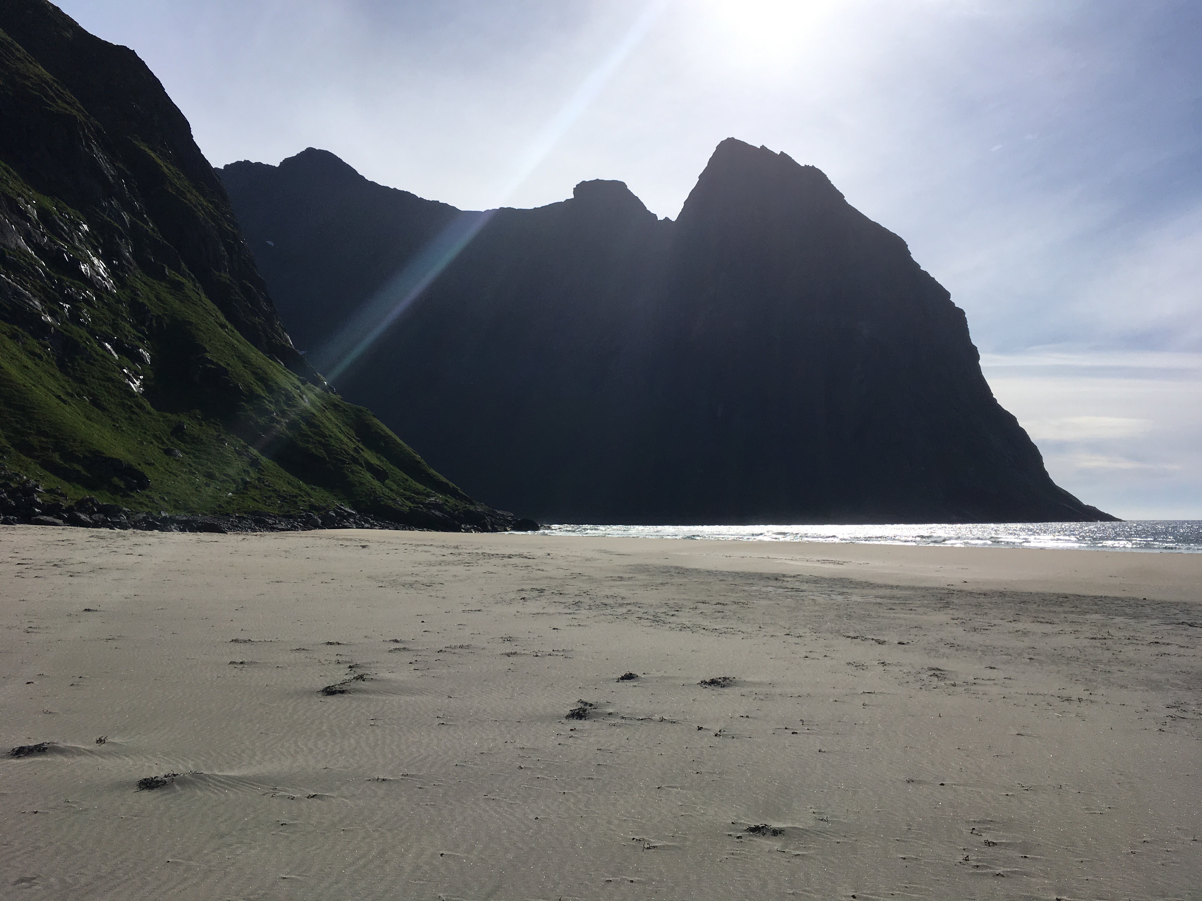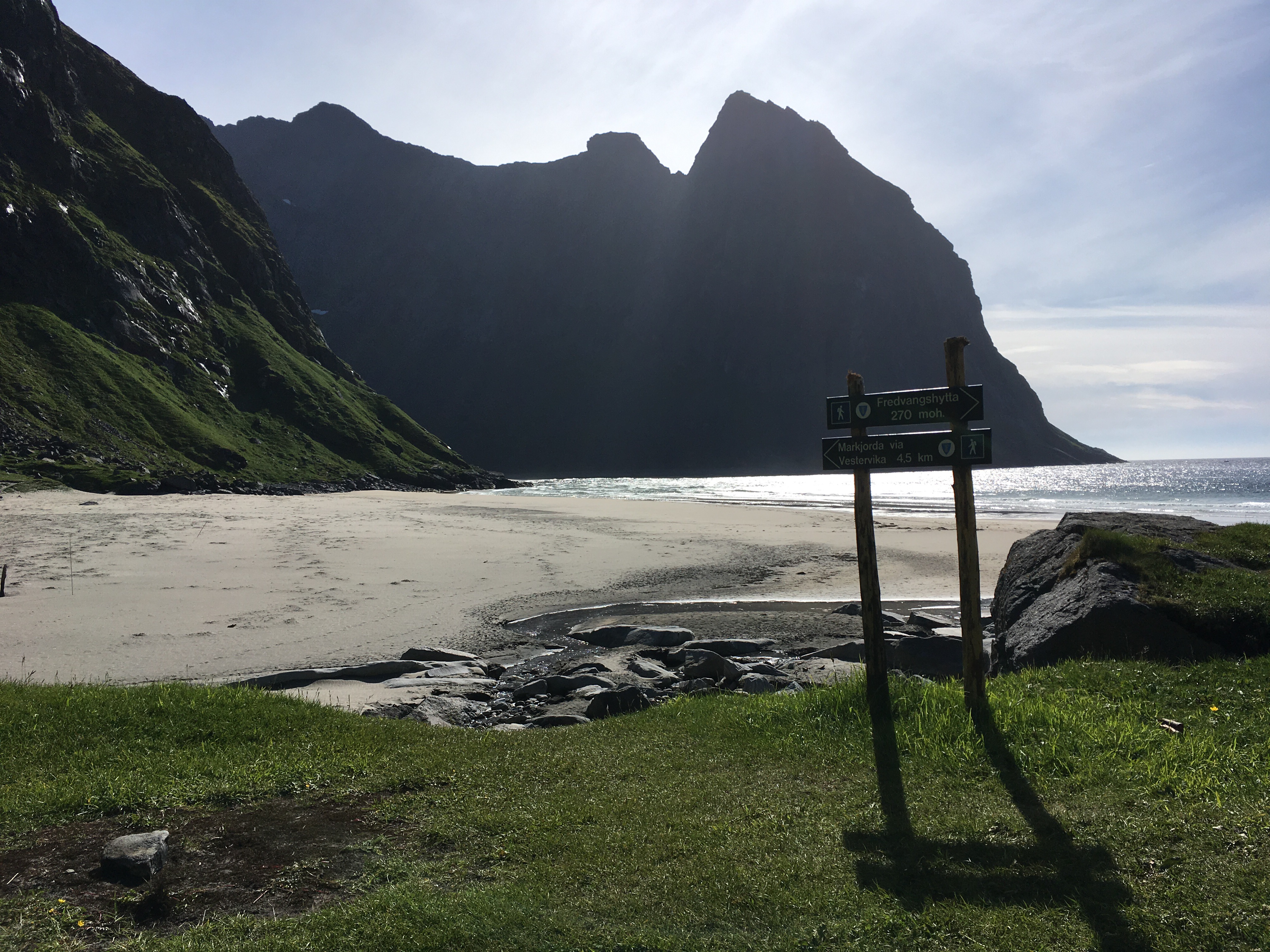 Ranta sijaitsee Moskenesøyn saarella. Ajoaika rannalle vievän polun alkuun on ehkä noin 1,5 tuntia Kallen leirinnästä ja kävelyyn kannattaa varata saman verran aikaa suuntaansa. Mukava päiväretki siis! Aikaisemmin on tullut nähtyä Lofootteja vain Svolvaerista pohjoiseen, joten oli ihan hauska päästä näkemään eteläisempiäkin osia Lofooteista. Mykistävän kaunista oli koko ajomatka!