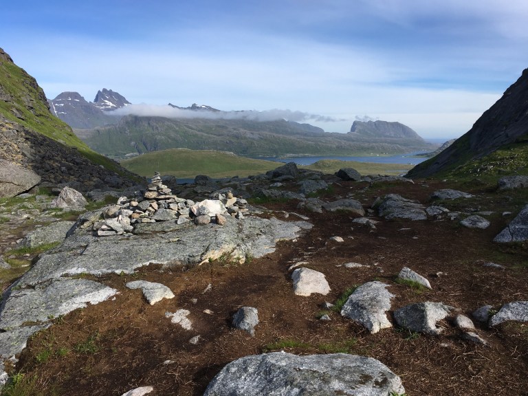 Polku Kvalvika Beachille lähti selkeästi liian pieneltä parkkipaikalta. Moni muukin taisi olla kuullut hienosta rannasta. Autopaikka löytyi kuitenkin. Itse polku oli ihan OK, mutta ei kuitenkaan mikään ”moottoritie”. Erityisesti laskeutuminen rannalle vaati paikoitellen ihan keskittymistä. Reitti ei kuitenkaan ollut mitenkään liian vaikea vaan melkeinpä kenen tahansa mentävissä, kunhan varaa aikaa riittävästi.