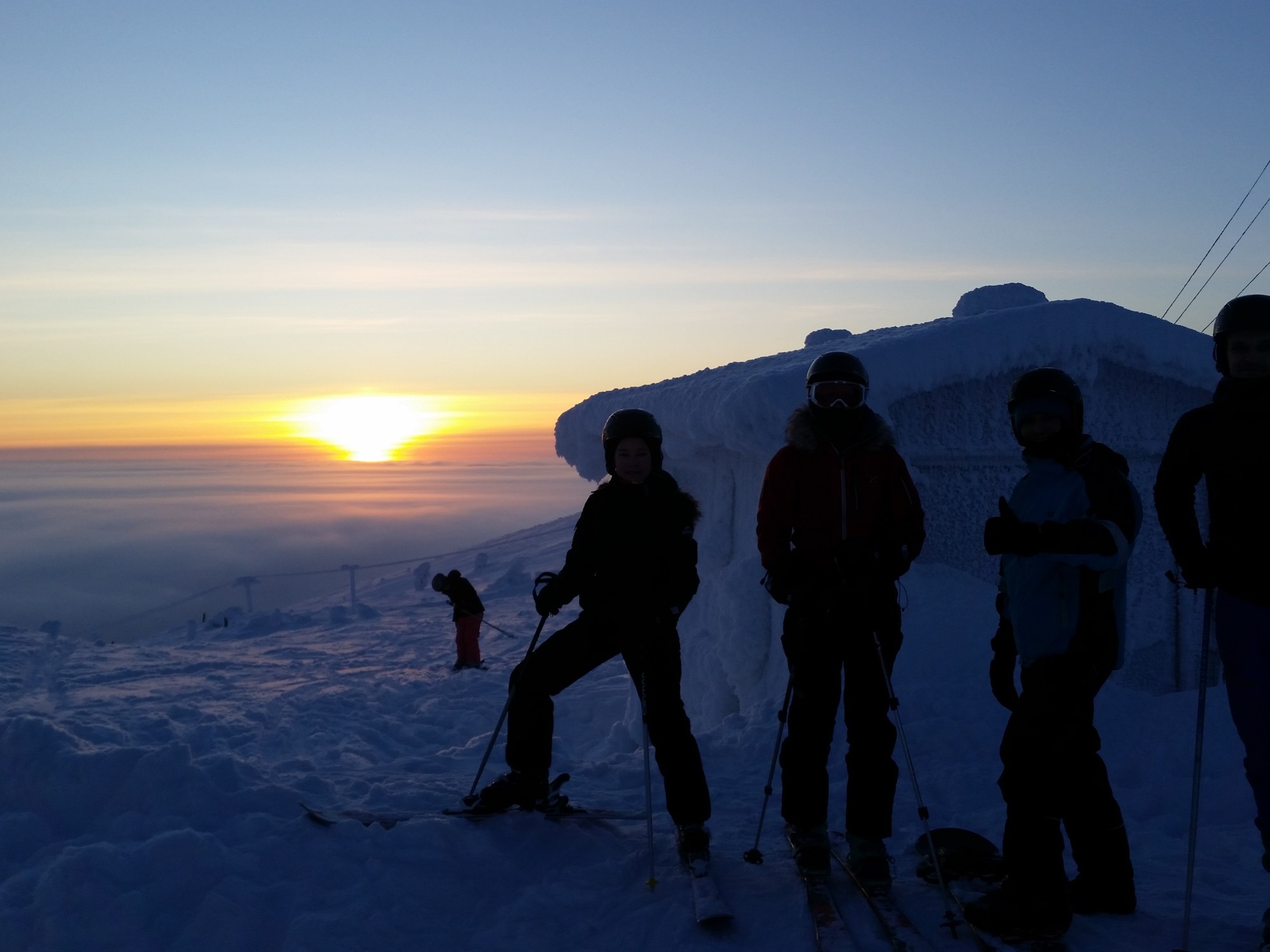 Pyhällä otin parin päivän perusvuokrasetit ja laskettiin rinnettä sekä välillä vähän siitä vierestä. Ihan kivaa ja kahdessa päivässä alkoi jo päästä jyvällä. Ei nyt vielä mitään syöksylaskua, mutta luottoa kamoihin kertyi sen verran, että uskalsi jo laskea Pyhän rinteet rennosti alas ja hakemaan välillä vauhtia sekä fiilistellä kantteja. Toisena päivänä oli vähän pyrykeliä ja pohjoispuolen rinteillä pääsi kokeilemaan helppoa laskemista rinteen vieressä pehmeässä lumessa. Tuo vähän uutta mielenkiintoa keskuslaskemiseen.