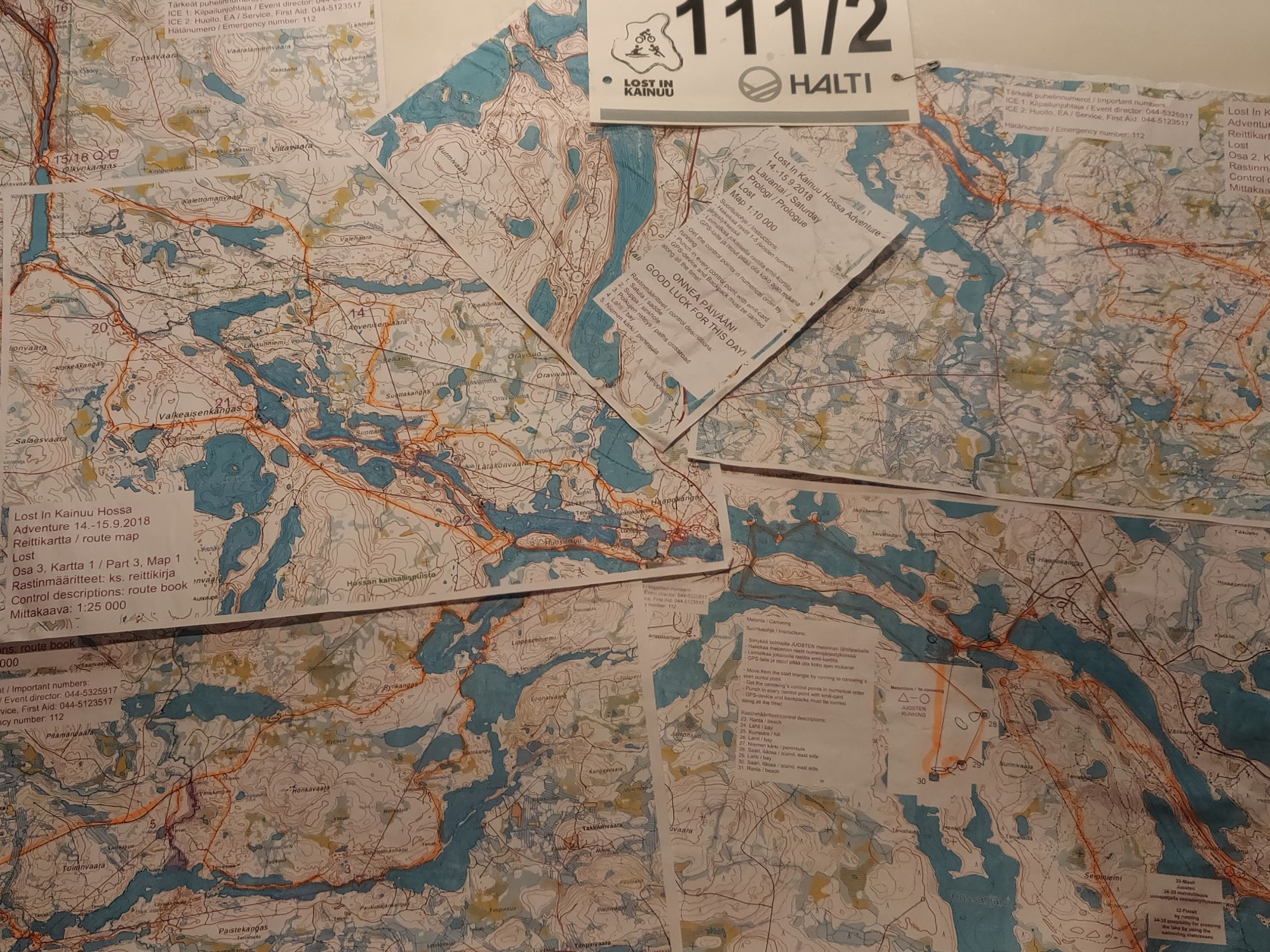 Lost sarja on siis 16h arvion kisa joka on jaettu kahdelle päivälle. Perjantaina startti klo 11:00 ja maaliin viimeistään kympiltä. Lauantaina oli aikaa aamu kuudesta ilta kuuteen eli kellon ympäri. Kartat sai hyvissä ajoin edellisenä päivänä ja reitin sai miettiä rauhassa. Pyörä dominoi ensimmäistä päivää ja juoksua ei edes jaettavien karttojen mukaan ollut, mutta oletus oli prologin ja ehkä jonkun guestinkin luulisi olevan jalalla. Muuten reilun 100km pyörätykitys olisi kyllä monelle seikkailijalle aika yllätys. Toinen päivä oli sitten sekalaisempaa kun juoksua oli enemmän ja jonkun matkaa melontaakin. Pääosin liikuttiin kansallispuiston poluilla joita Hossassa riittää. Metsäautotie toki jonkin verran, mutta hienot pyöräilyreitit kannustivat tekemään reittivalintoja polkupainotuksella. Vielä kun kelikin oli suht kuiva. Pyöräreitteihin turvaten uskalsi tehdä valintoja ja jonkun verran me tunnetaankin paikkoja kun mummola on ollut muutaman kymmenen kilometrin päässä. Reitti näytti silti hyvin selkeältä. Suunnistuselementtiä aika vähän ja paljon tykitystä. Toki kartalla täytyisi pysyä ettei pain ihan mihin sattuu.