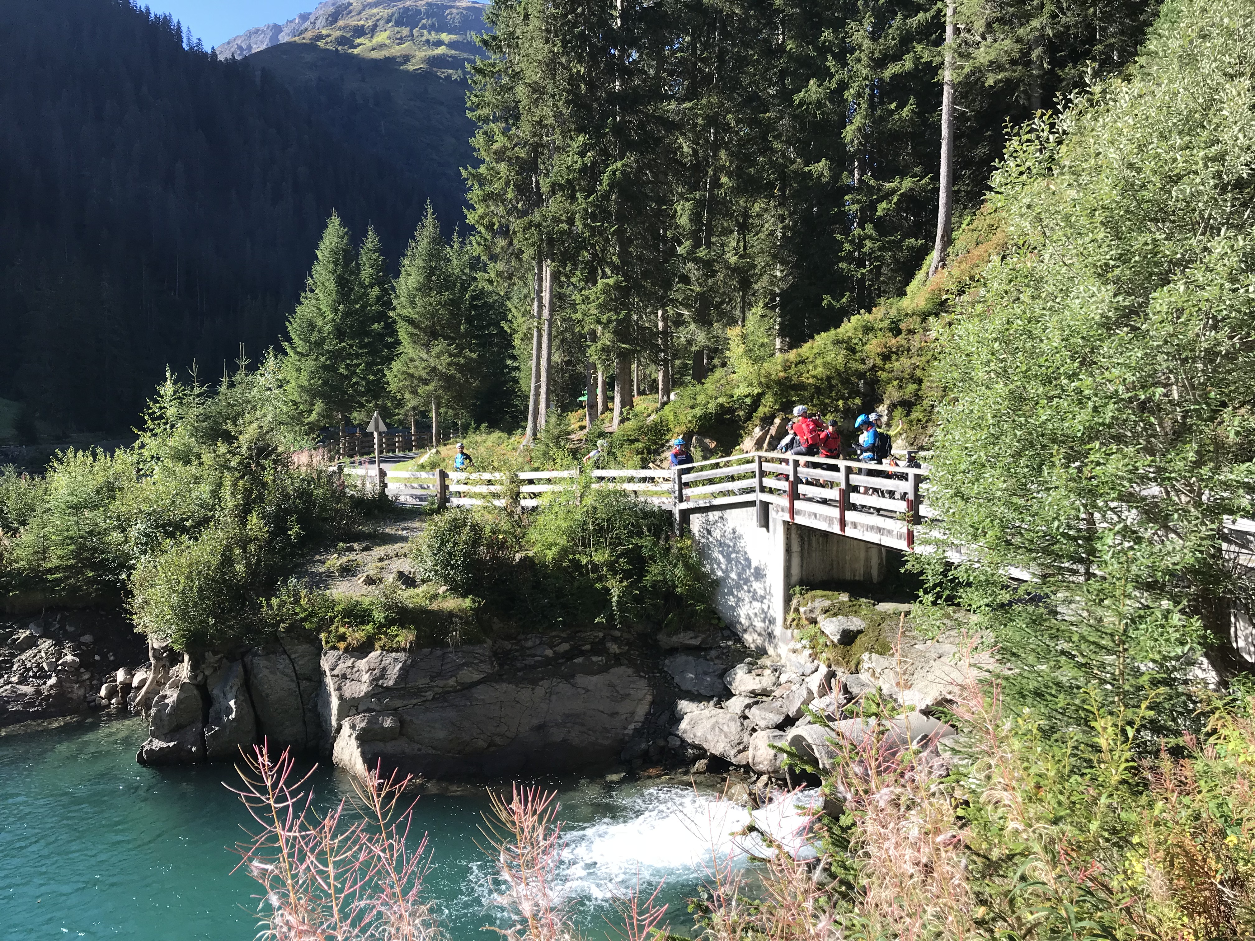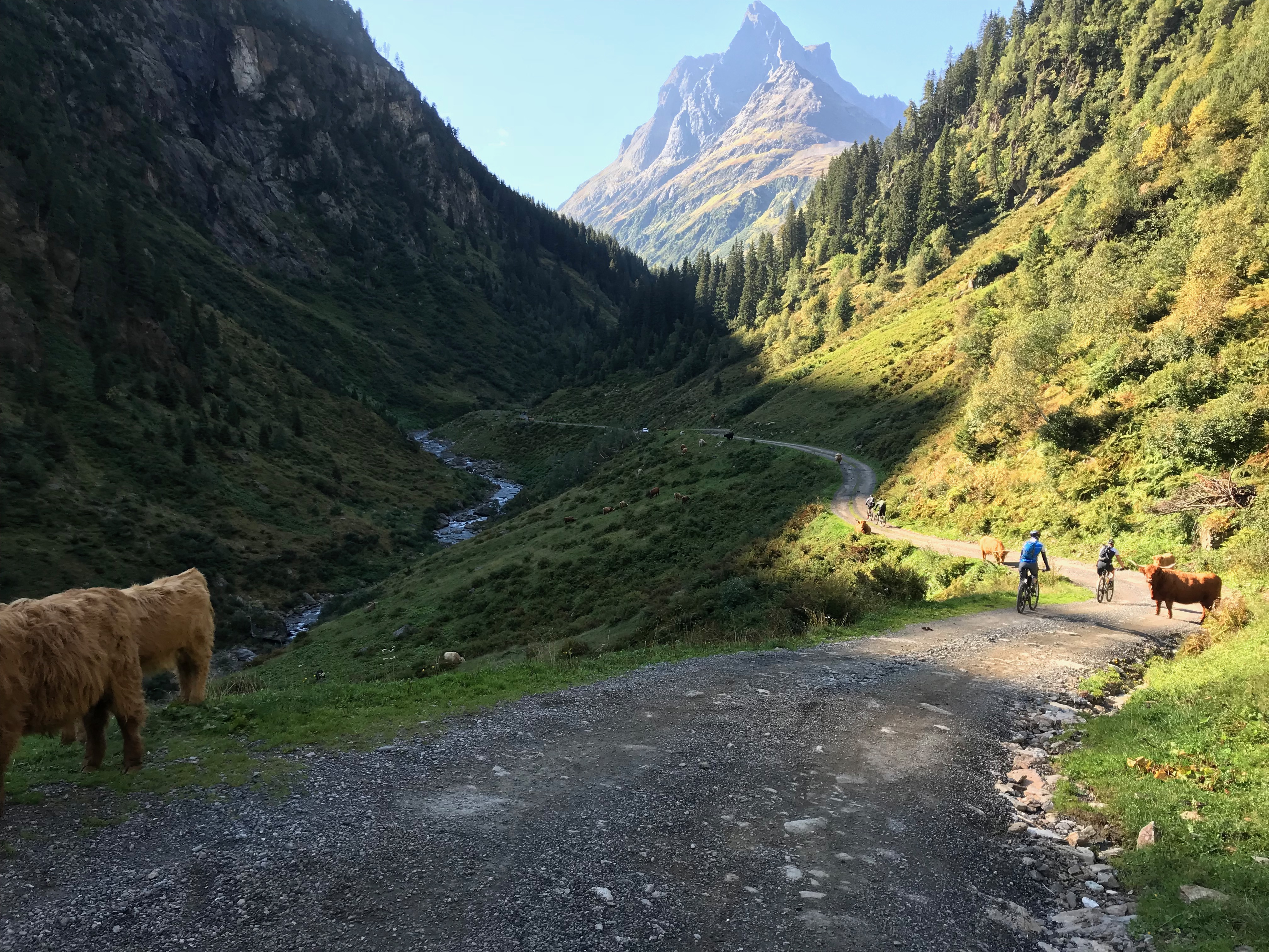 The first day started from St Anton with very big uphill. Firstly on gravel roads and later on trails. Partly we had to carry our bikes. Must say that our beforehand worries were relevant. Biking endless uphill was really hard! Especially for Päivi who was a bit sick. Our lunch brake was on Hellbronnerhutte, highest point of the day and Päivi looked and felt very tired. However, good alpine lunch helped and downhill to our first overnight stop in Iscghl went much better. And this downhill was very nice and beautiful! We followed small gravel roads and nice trails with magnificent mountain views around us! Day was a perfect start for this mtb alpine crossing. Video summary of the first day can be seen here.