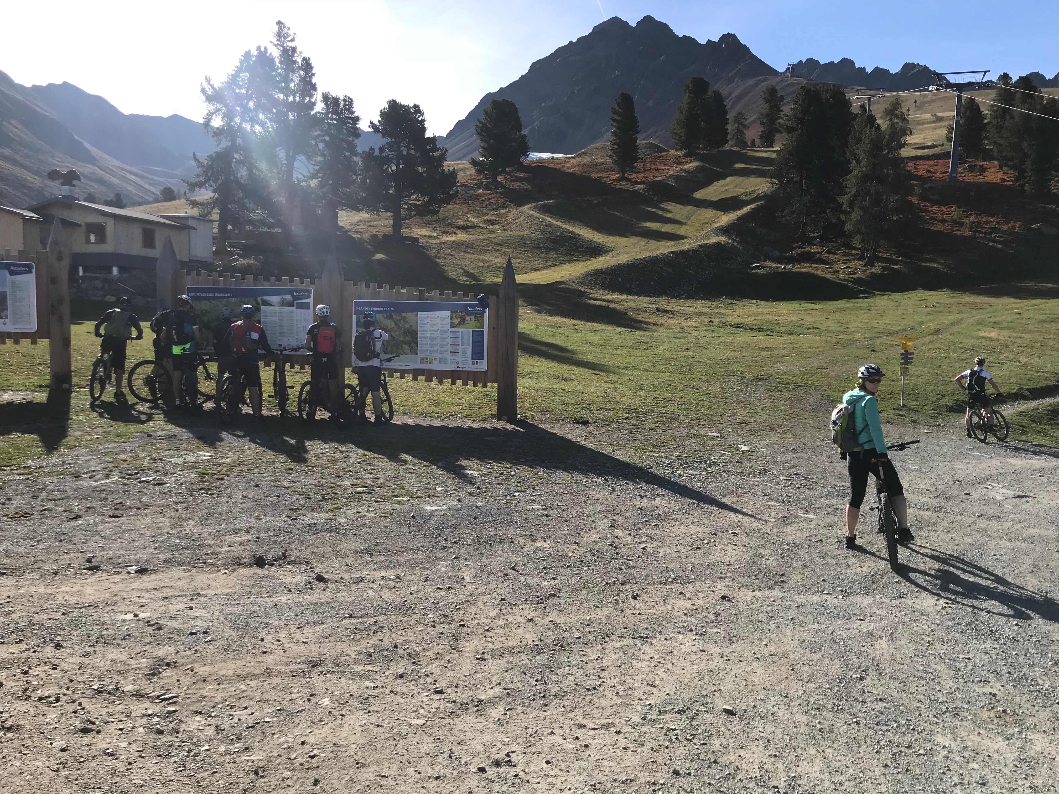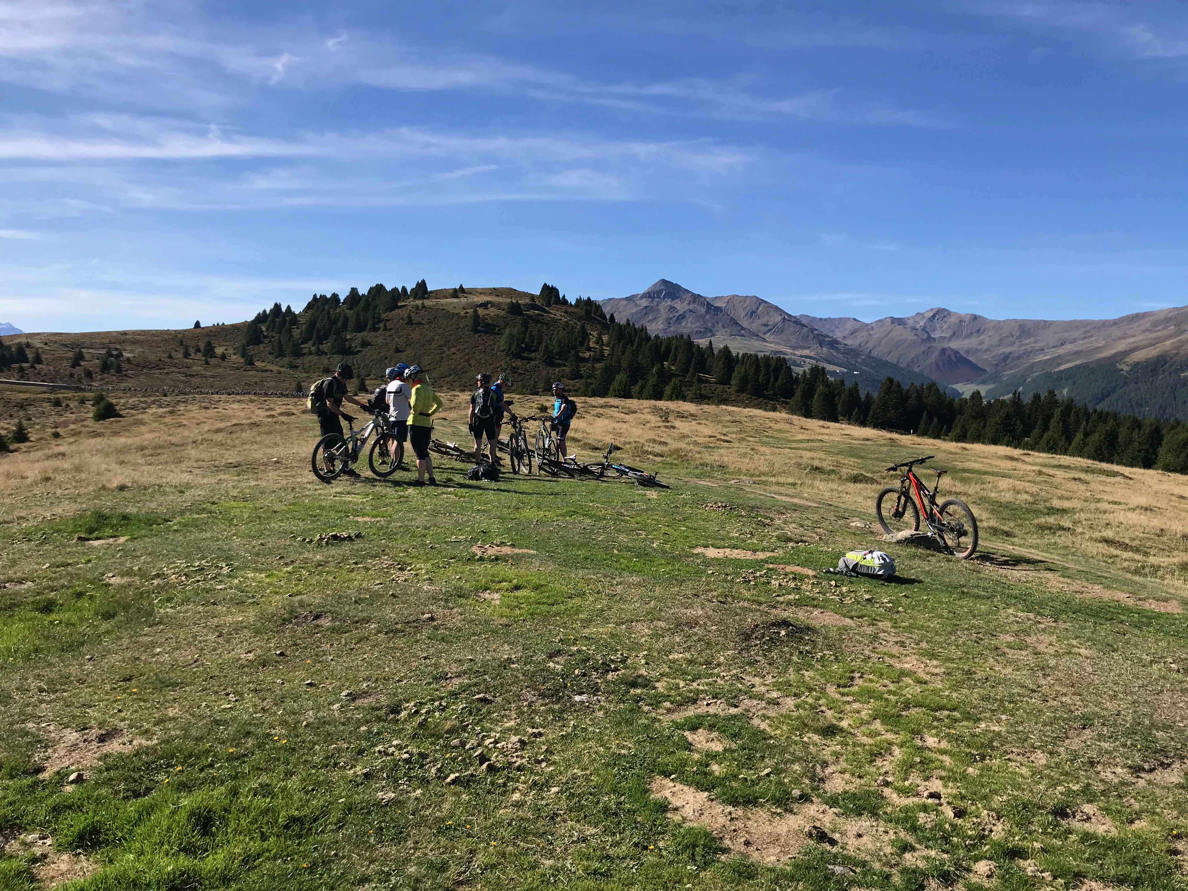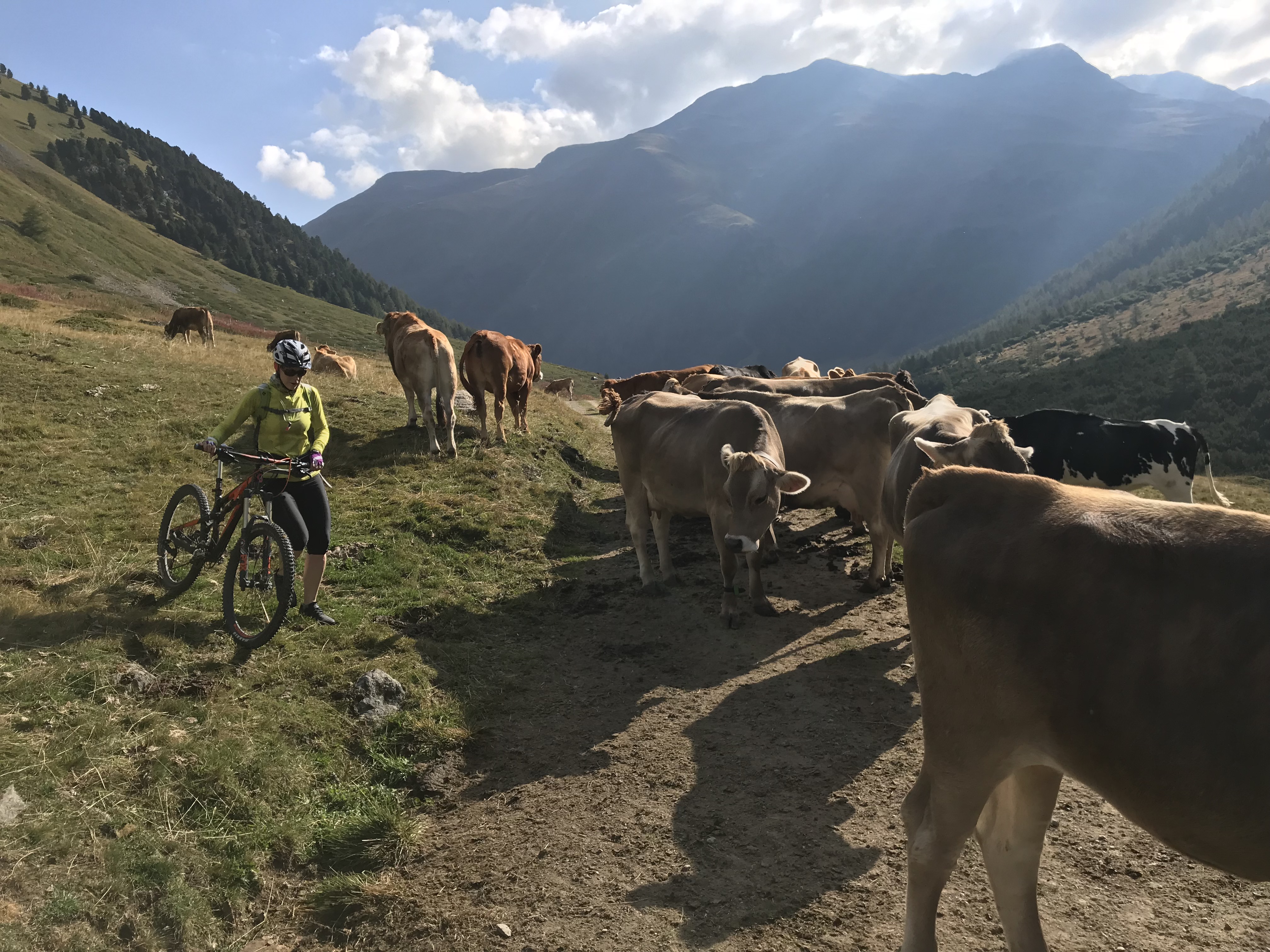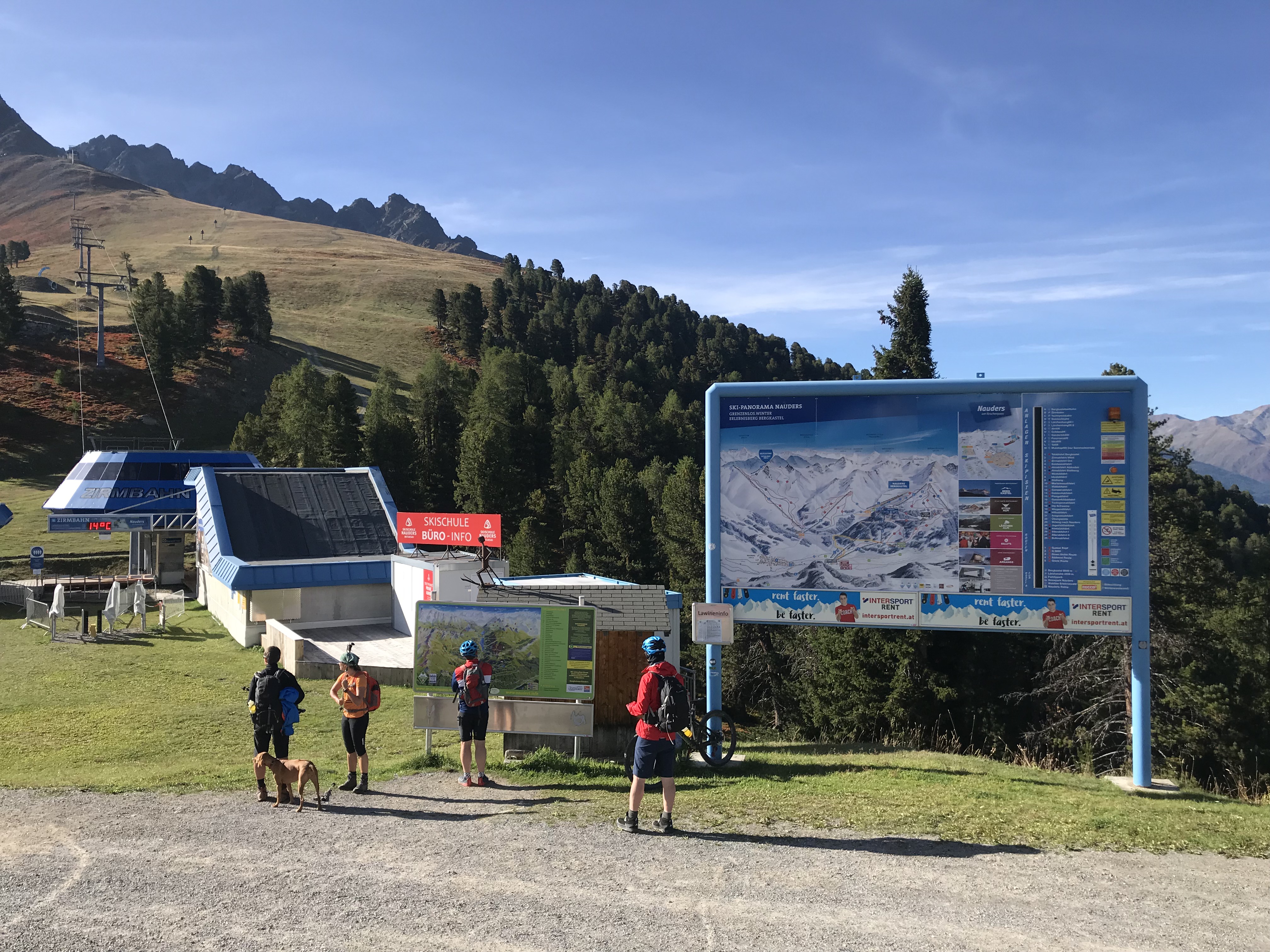 The second day started easier. We took lift up and started with nice flow trails down through alpine meadows against valley. Unfortunately I started to feel symptoms of Päivi’s flu, which was not a surprise. However, the second day was still strong for me. As said, the downhill was very beautiful! We came down an excellent flow trails kilometer after kilometer. I took one ”smooth falling” in one grassy curve, where I had a bit too tight line. After a long downhill and lunch we still had a relatively big uphill where I decided to test little bit my speed, partly because I felt that I am catching a cold and coming days might be not so strong for me. Maybe I was too eager and started absolutely too fast. Soon I noticed it, but of course it was a bit too late when lactic acids already made their damages in my muscles. Despite that I survived quite well that uphill. The second day ended in Nauders. Beautiful small village. Päivi had problems with her shoes and she bought new ones, which were luckily perfect! Video summary of the second day can be seen here.