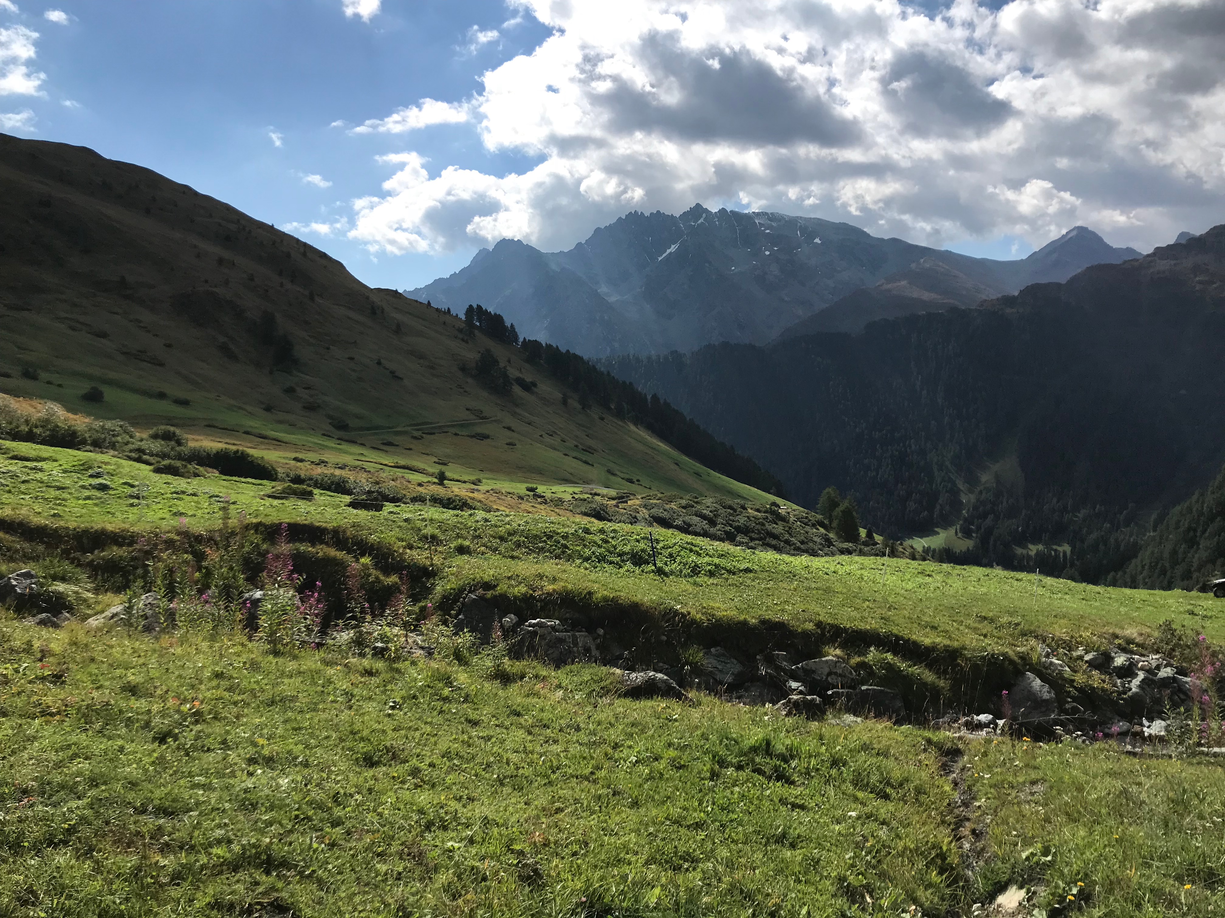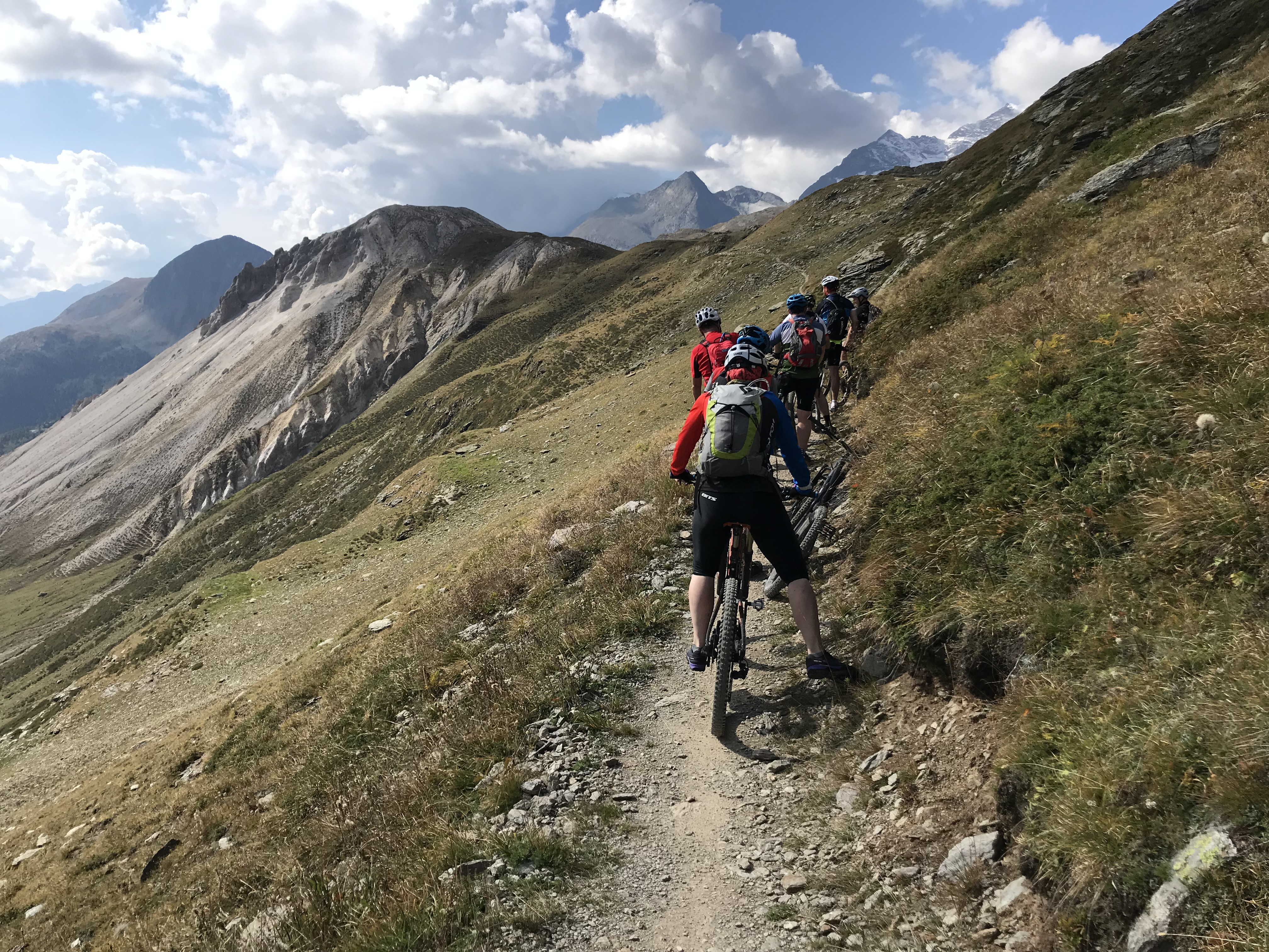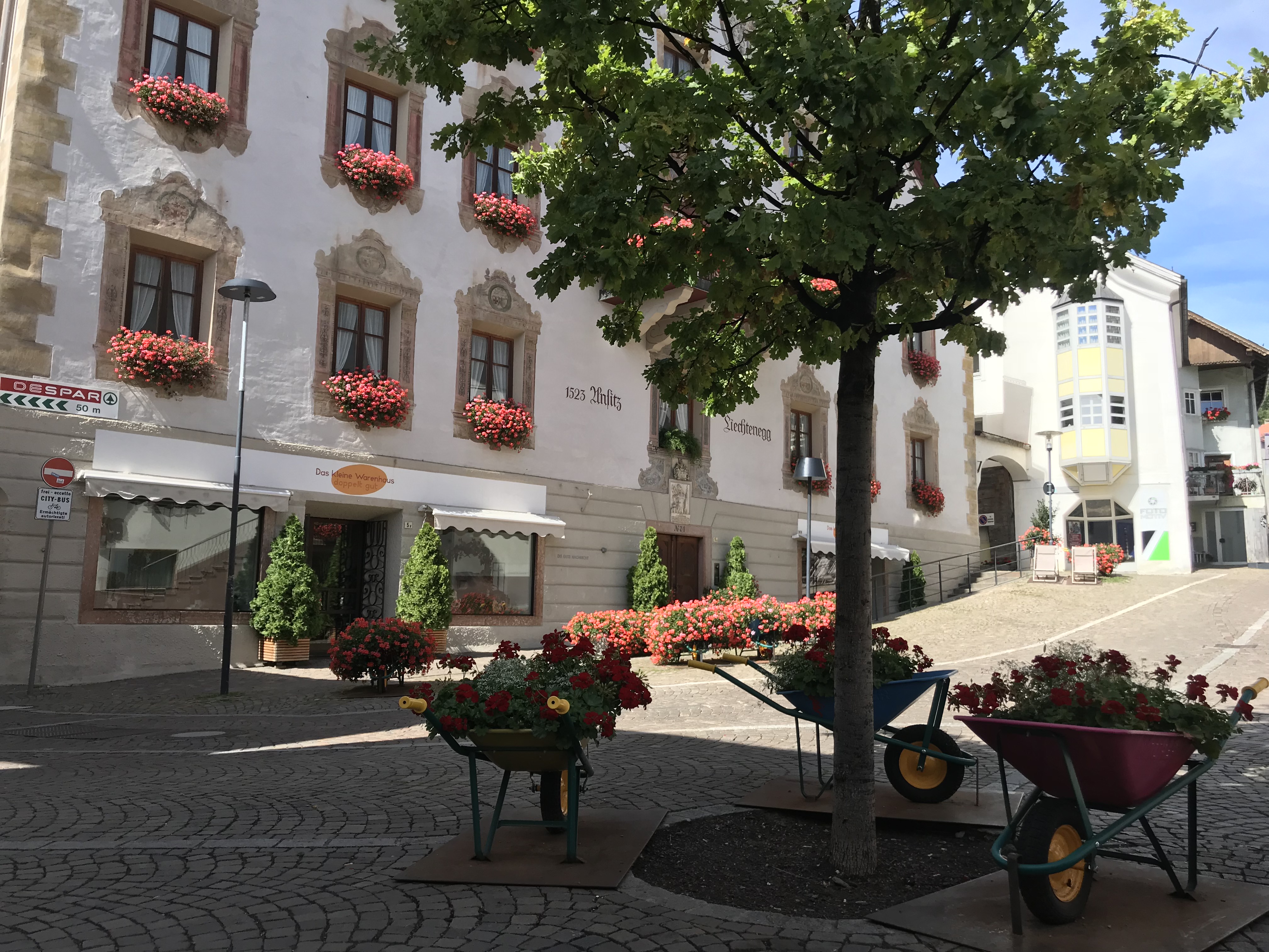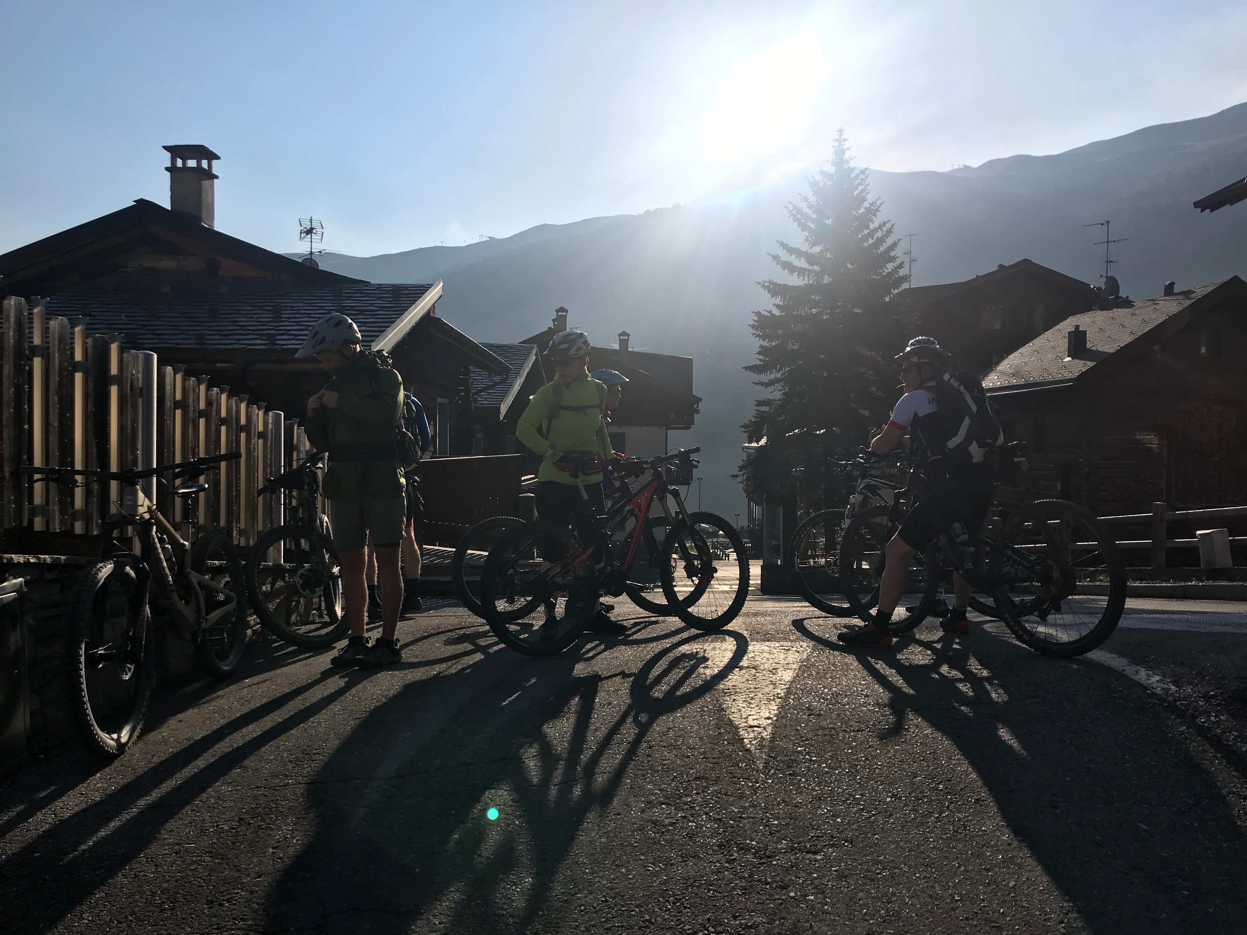 The second day started easier. We took lift up and started with nice flow trails down through alpine meadows against valley. Unfortunately I started to feel symptoms of Päivi’s flu, which was not a surprise. However, the second day was still strong for me. As said, the downhill was very beautiful! We came down an excellent flow trails kilometer after kilometer. I took one ”smooth falling” in one grassy curve, where I had a bit too tight line. After a long downhill and lunch we still had a relatively big uphill where I decided to test little bit my speed, partly because I felt that I am catching a cold and coming days might be not so strong for me. Maybe I was too eager and started absolutely too fast. Soon I noticed it, but of course it was a bit too late when lactic acids already made their damages in my muscles. Despite that I survived quite well that uphill. The second day ended in Nauders. Beautiful small village. Päivi had problems with her shoes and she bought new ones, which were luckily perfect! Video summary of the second day can be seen here.