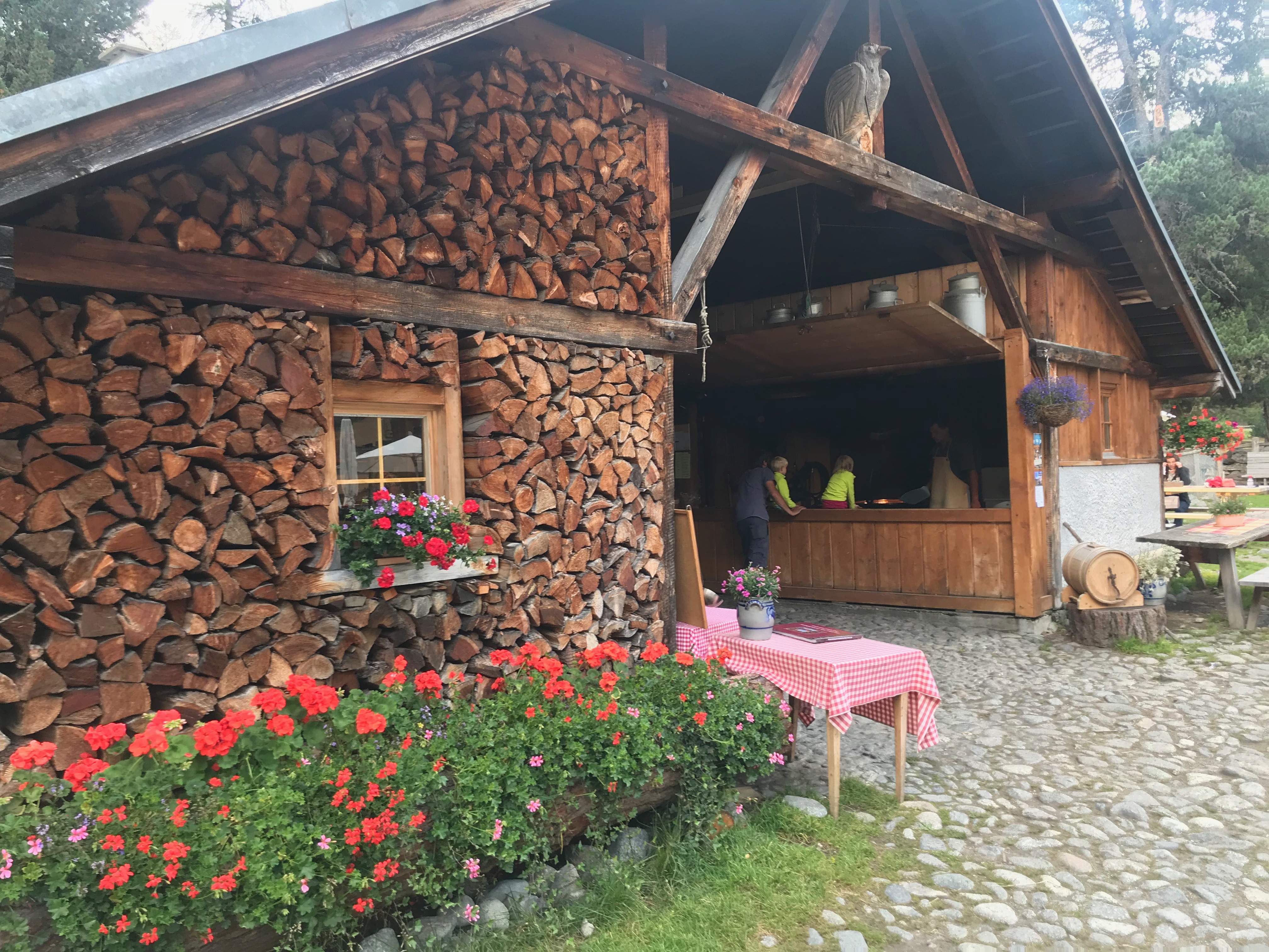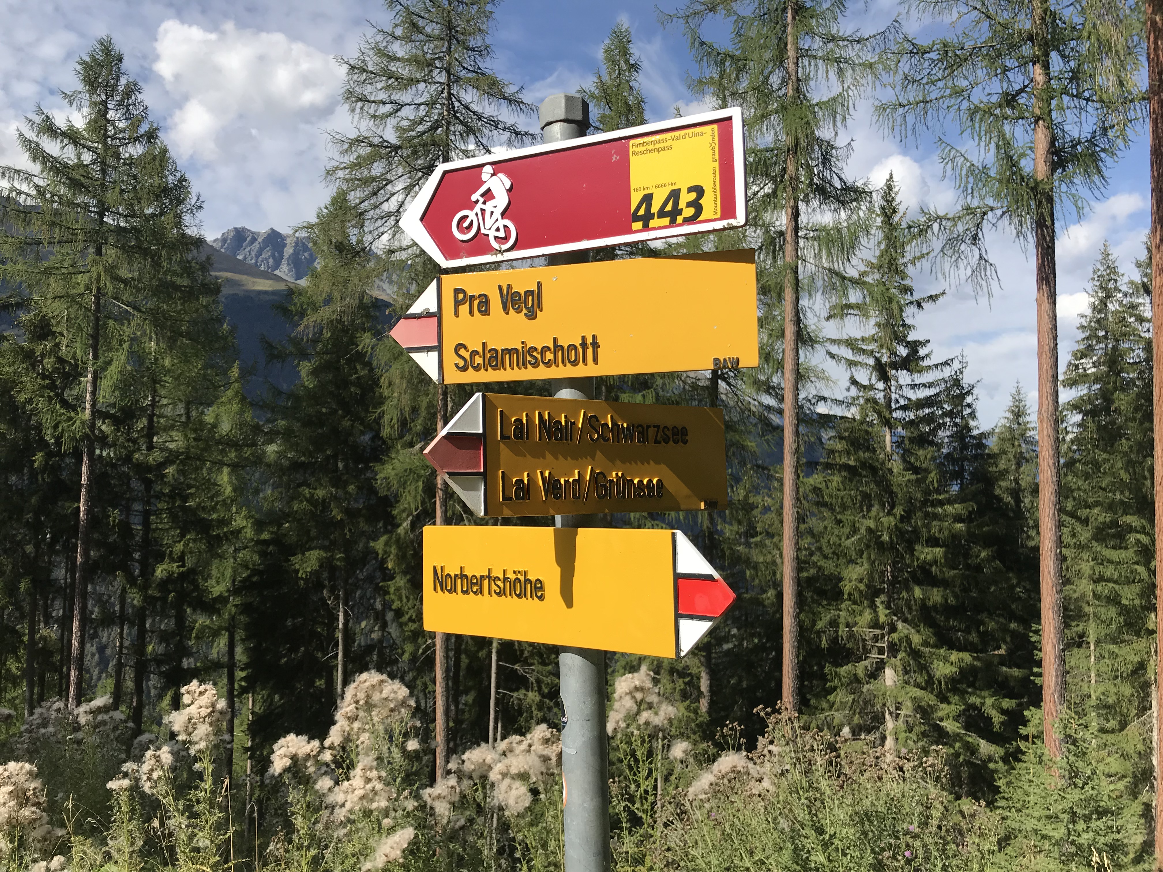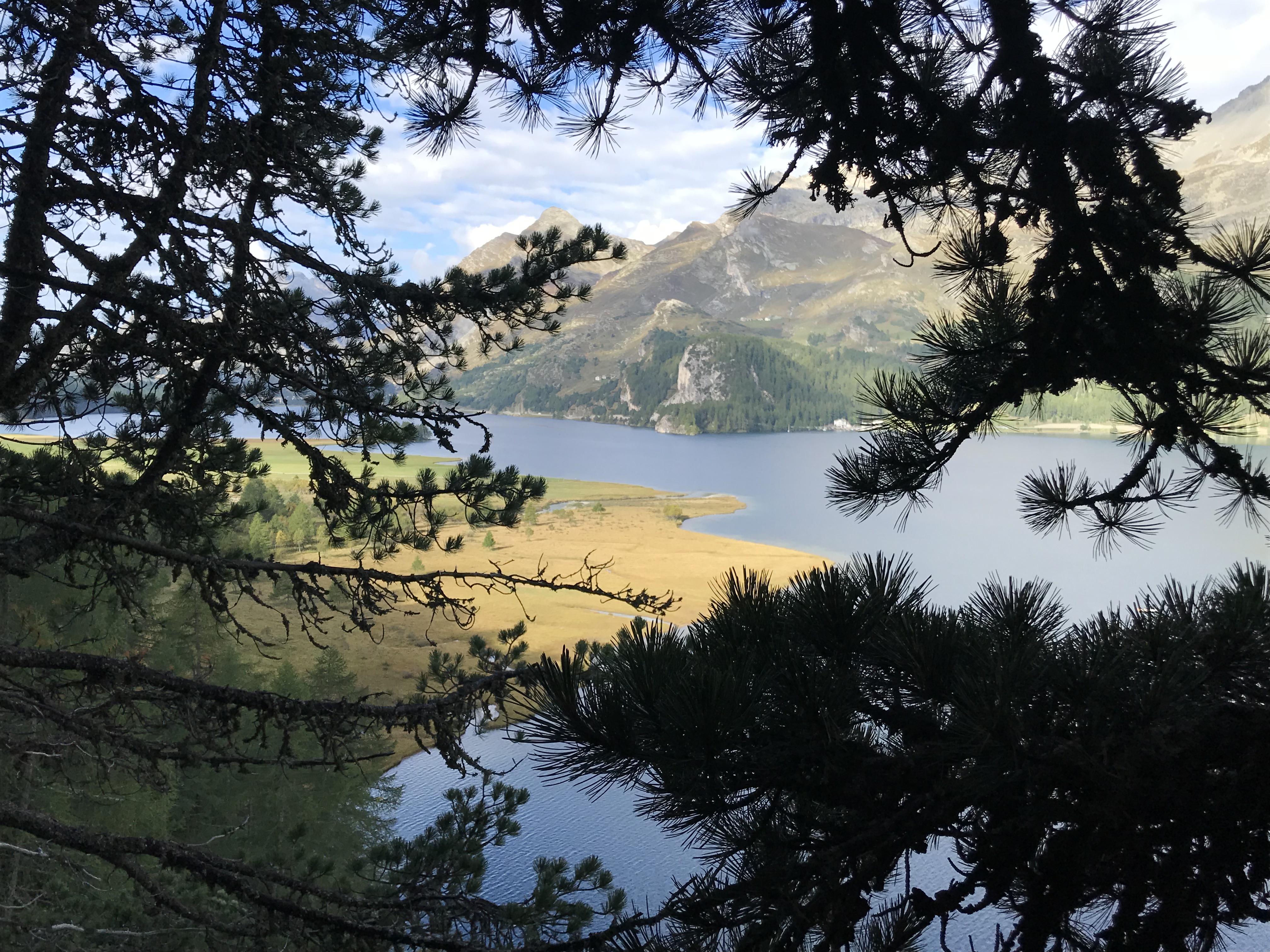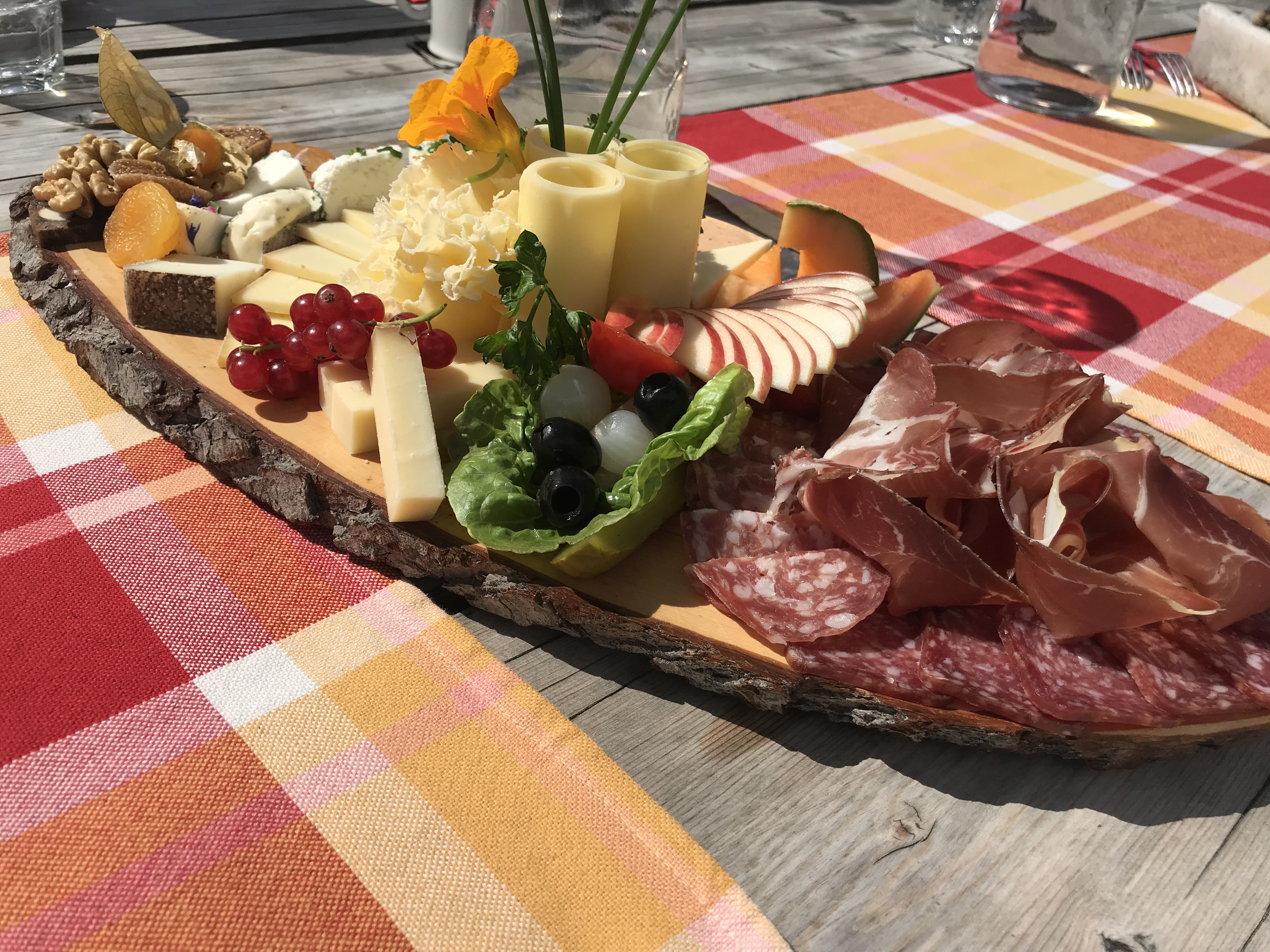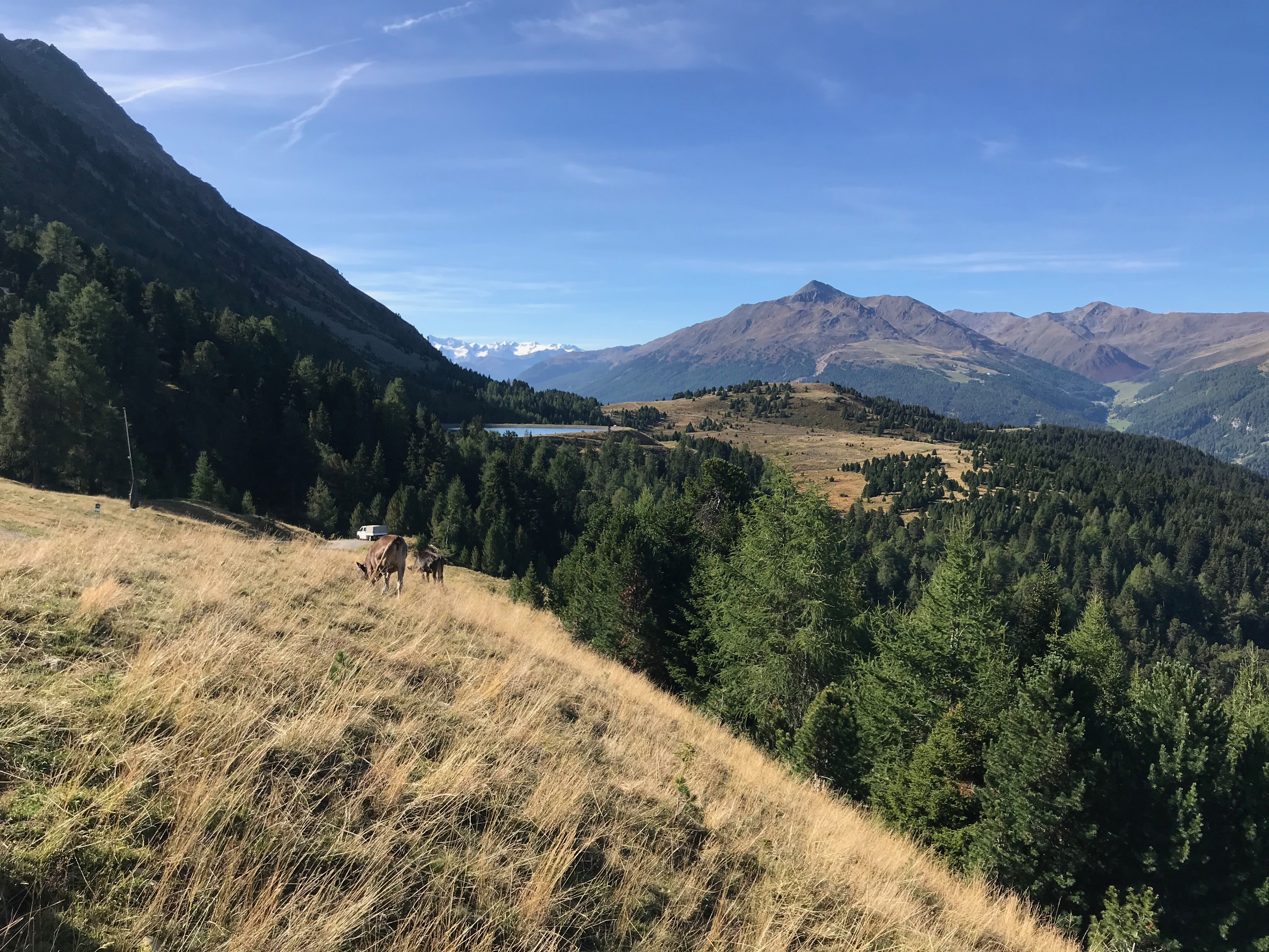 The fifth day was a real mountain day! We started on easy roads, starting to get slightly upwards. After 2-3 hours of climbing we reached a steep serpentine uphill. The one which any client had never managed to top without breaks. This fact didn’t change this time. After the climb we had a coffee break and after that we continued ascending on narrow mountain trails. Päivi had again a good day and she was doing very well! I, in contrast, felt that I had totally forgot how to ride a bike…but neverthless ascend ended and we started long and very enjoyable downhill towards our lunch break. Just before the lunch we had probably the best downhill during whole week, very enjoyable flowtrail in the middle of a beautiful mountain forest! Our lunch stop was in tradional Swiss mountain hut where we got tasty hams, salamis and cheeses with bread as well as deserts from each Swiss canton. Tasty! Soon after the lunch we got the only rain during the whole week. When we arrived to Sils, we were fully wet. Laundry service and warm shower were very welcome this evening! However, one surprise was still left. During our dinner we had a priviledge to listen really high class music! Short example can be listened and seen here in a summary video of day 5.