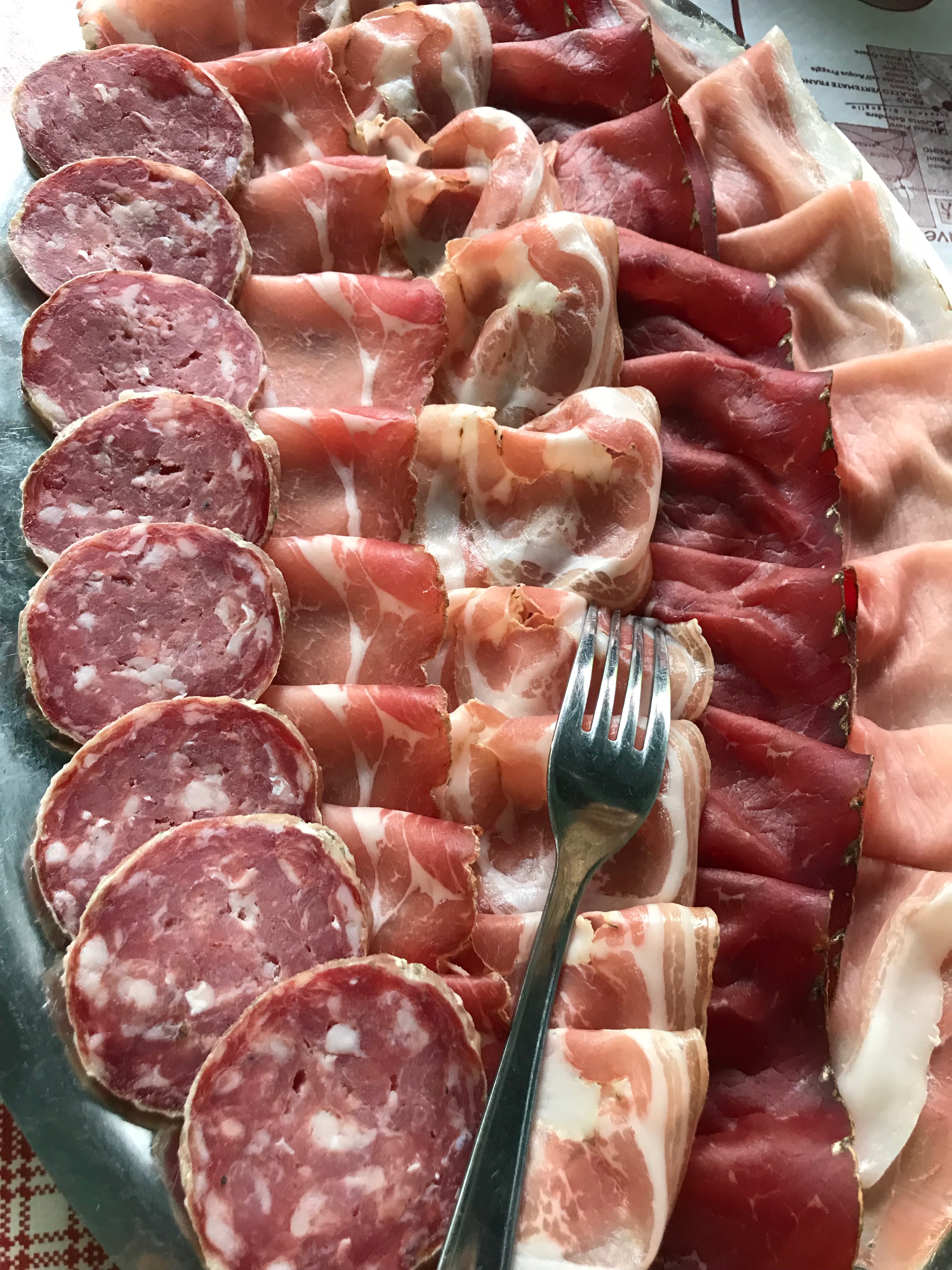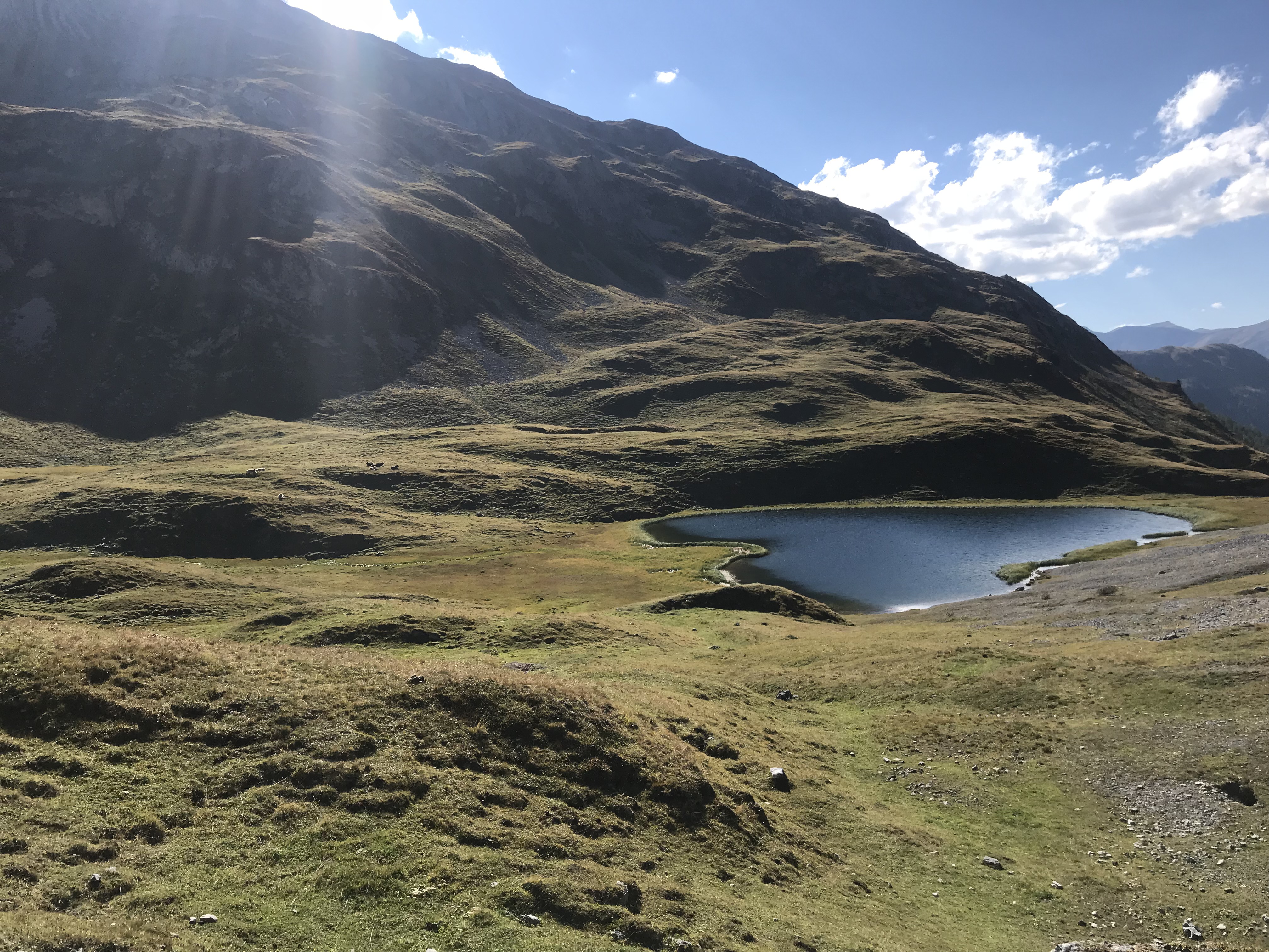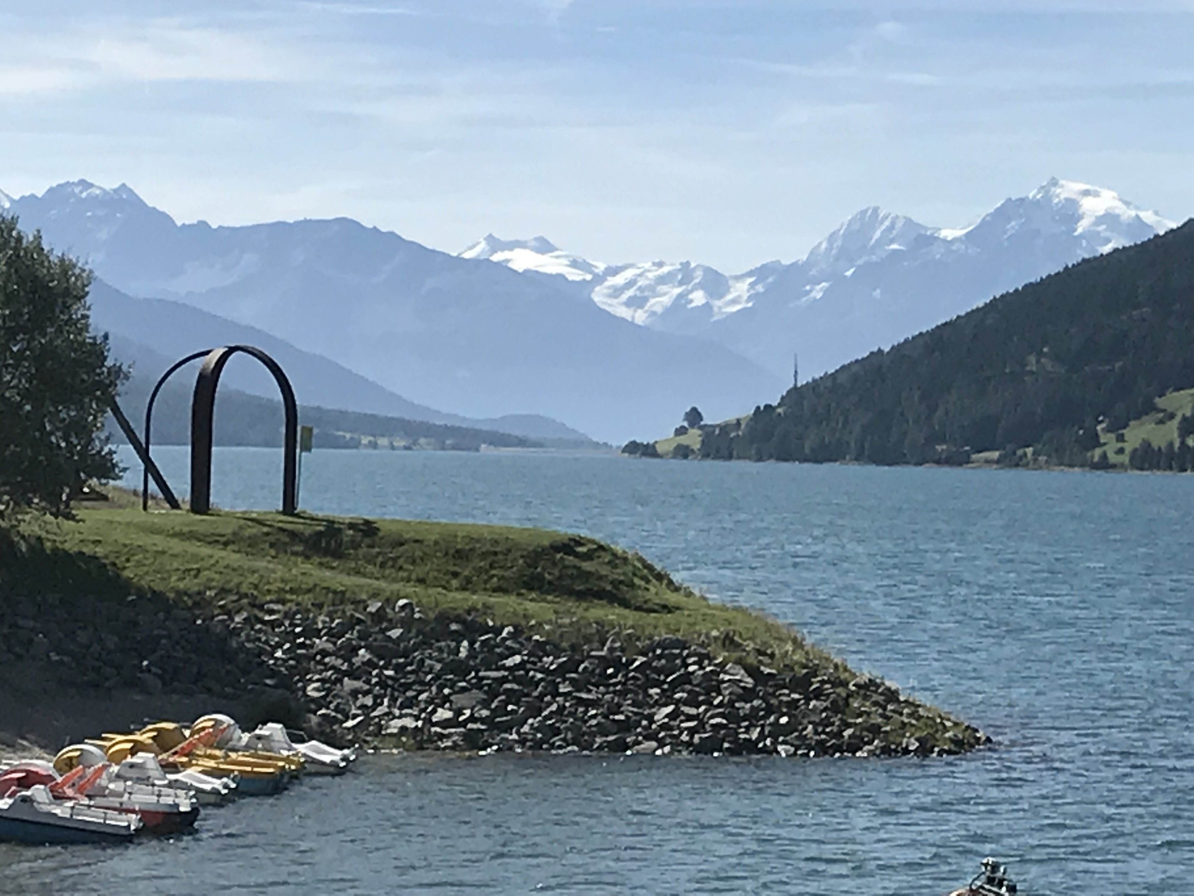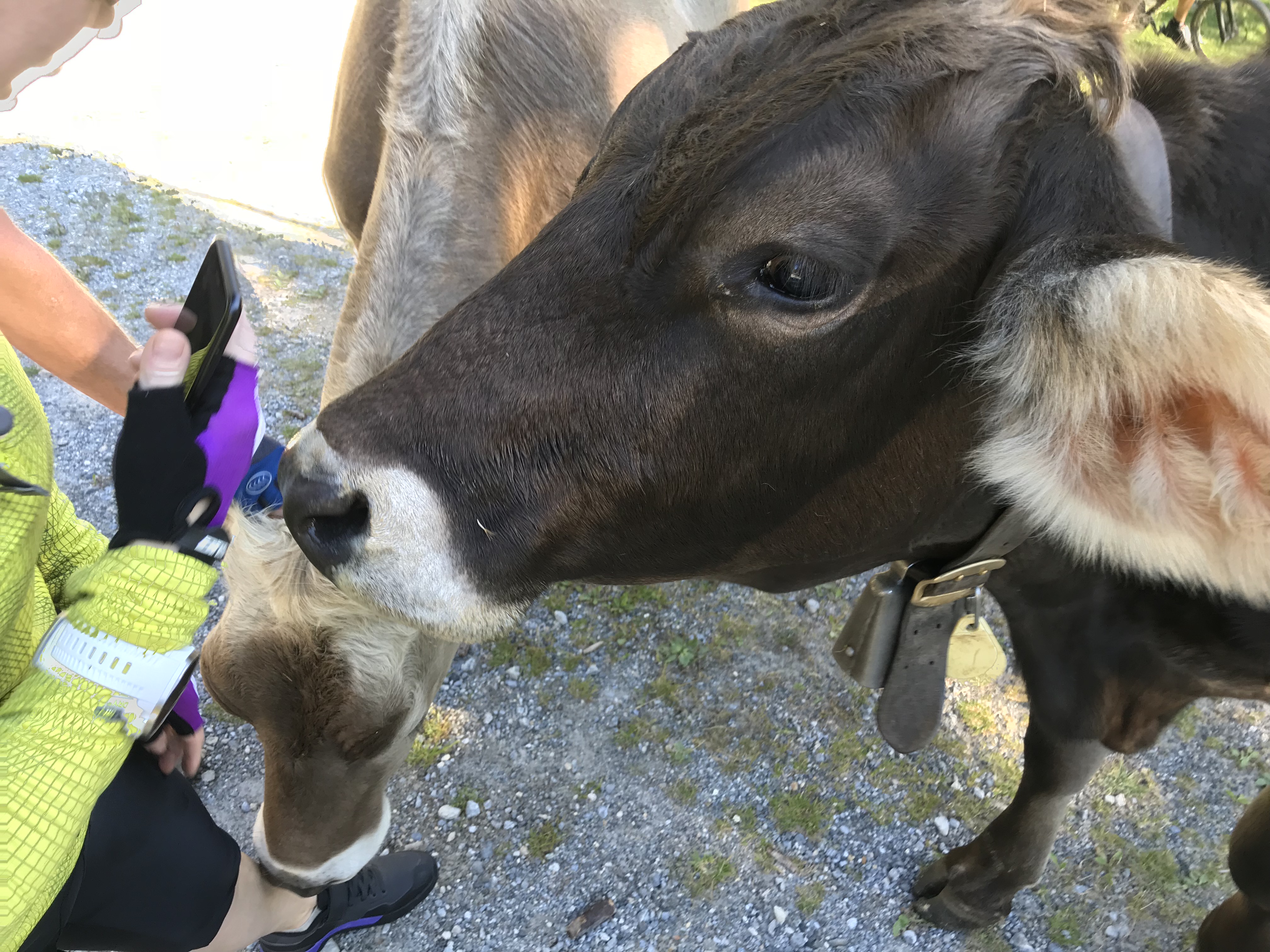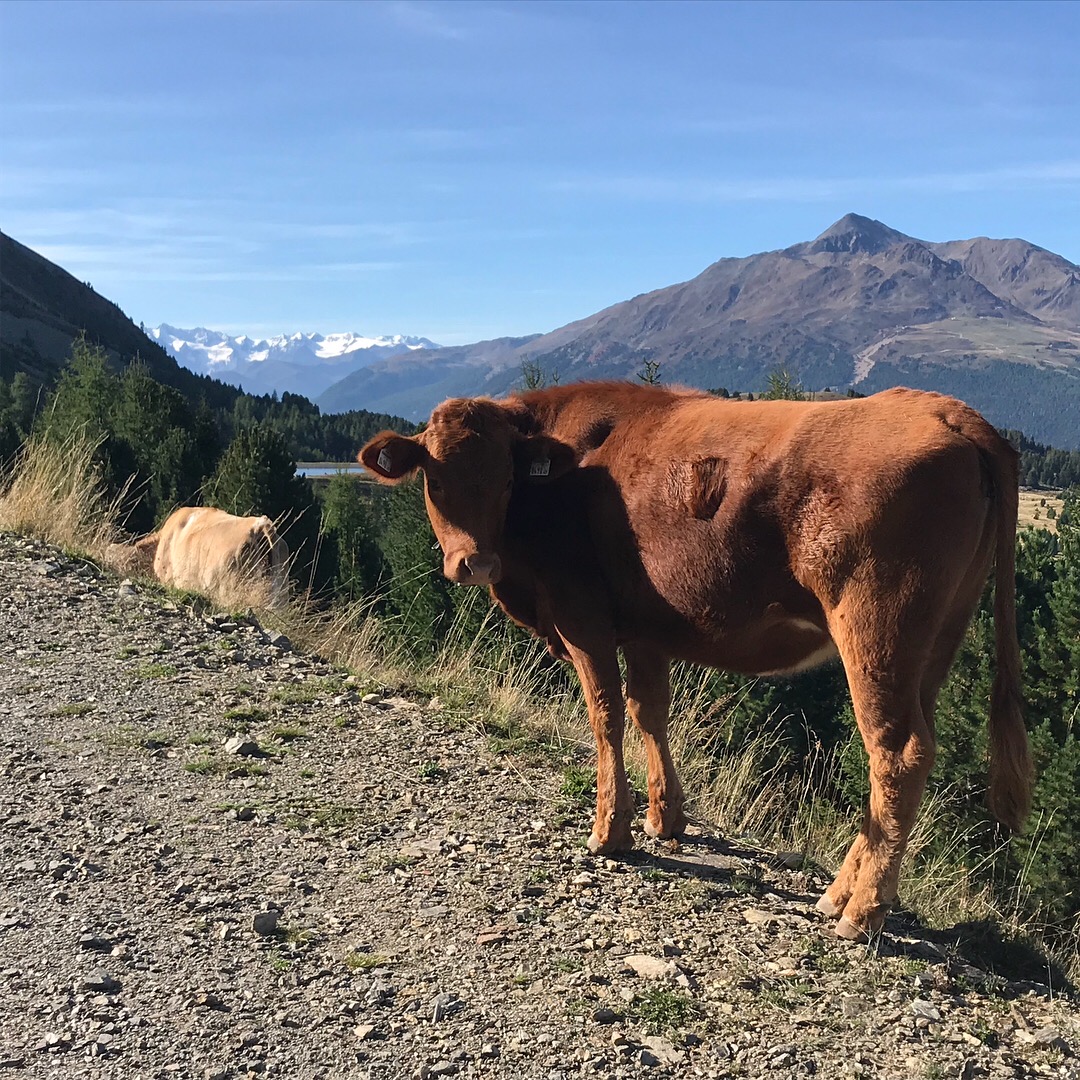 The fifth day was a real mountain day! We started on easy roads, starting to get slightly upwards. After 2-3 hours of climbing we reached a steep serpentine uphill. The one which any client had never managed to top without breaks. This fact didn’t change this time. After the climb we had a coffee break and after that we continued ascending on narrow mountain trails. Päivi had again a good day and she was doing very well! I, in contrast, felt that I had totally forgot how to ride a bike…but neverthless ascend ended and we started long and very enjoyable downhill towards our lunch break. Just before the lunch we had probably the best downhill during whole week, very enjoyable flowtrail in the middle of a beautiful mountain forest! Our lunch stop was in tradional Swiss mountain hut where we got tasty hams, salamis and cheeses with bread as well as deserts from each Swiss canton. Tasty! Soon after the lunch we got the only rain during the whole week. When we arrived to Sils, we were fully wet. Laundry service and warm shower were very welcome this evening! However, one surprise was still left. During our dinner we had a priviledge to listen really high class music! Short example can be listened and seen here in a summary video of day 5.
