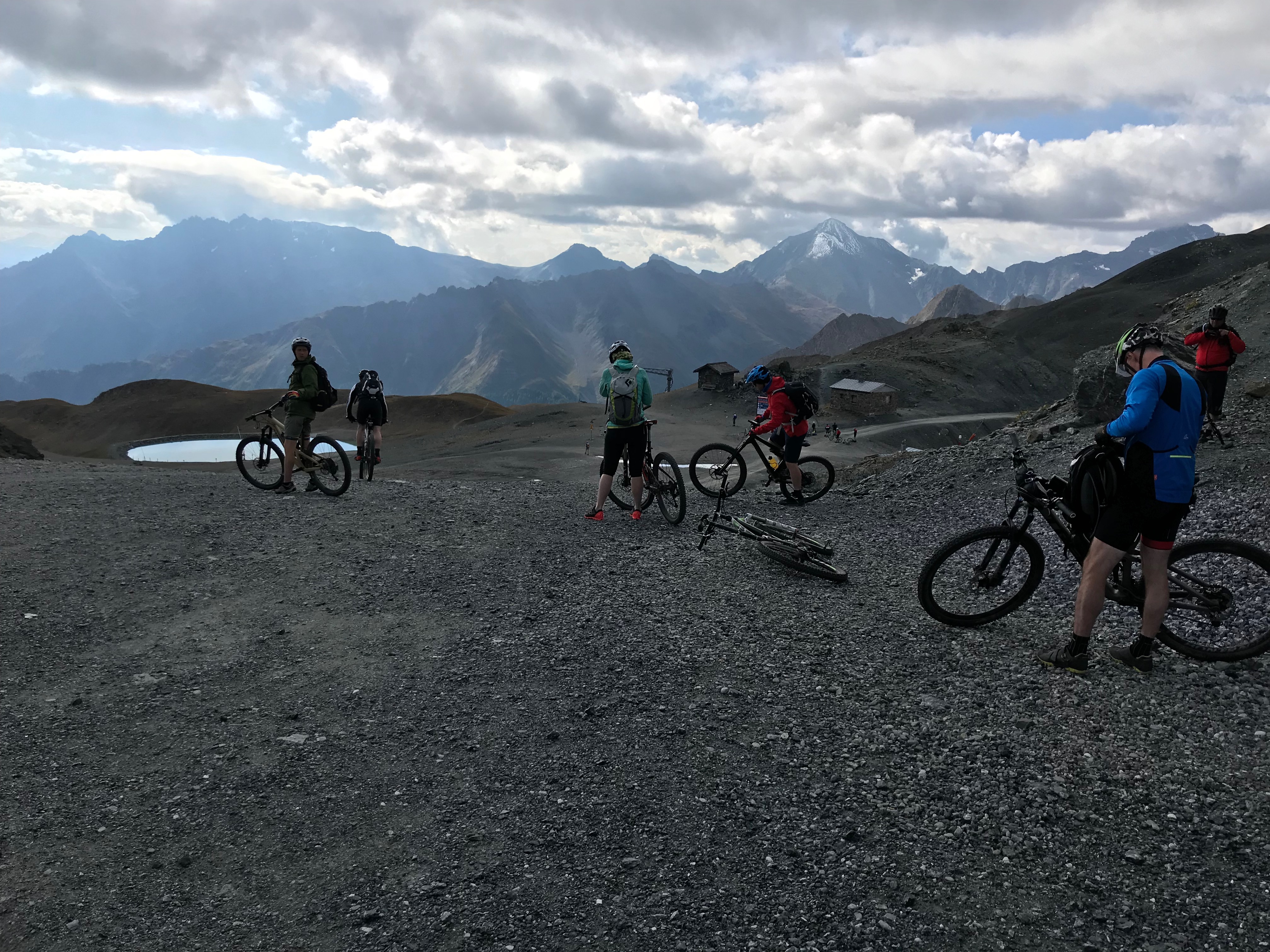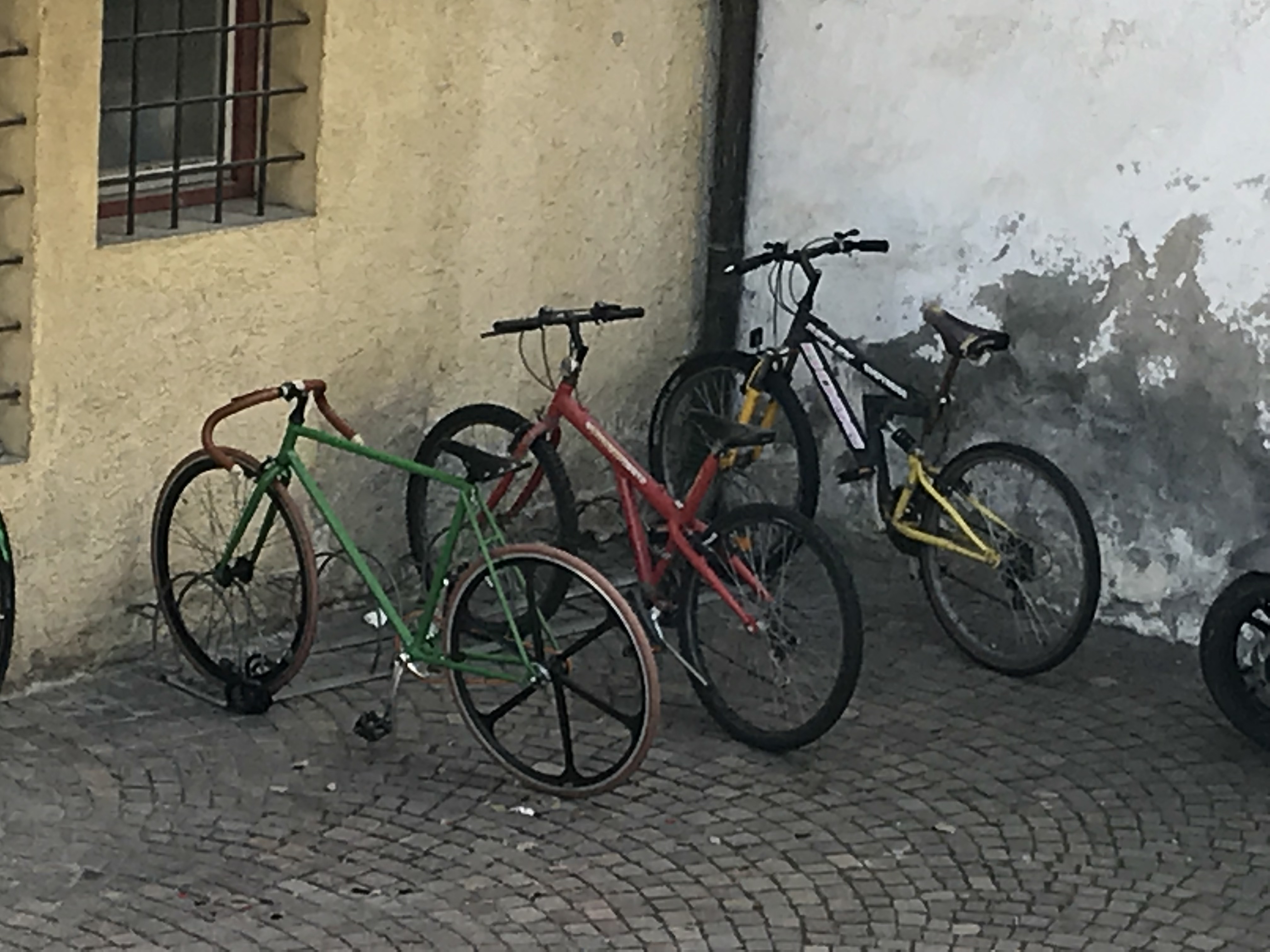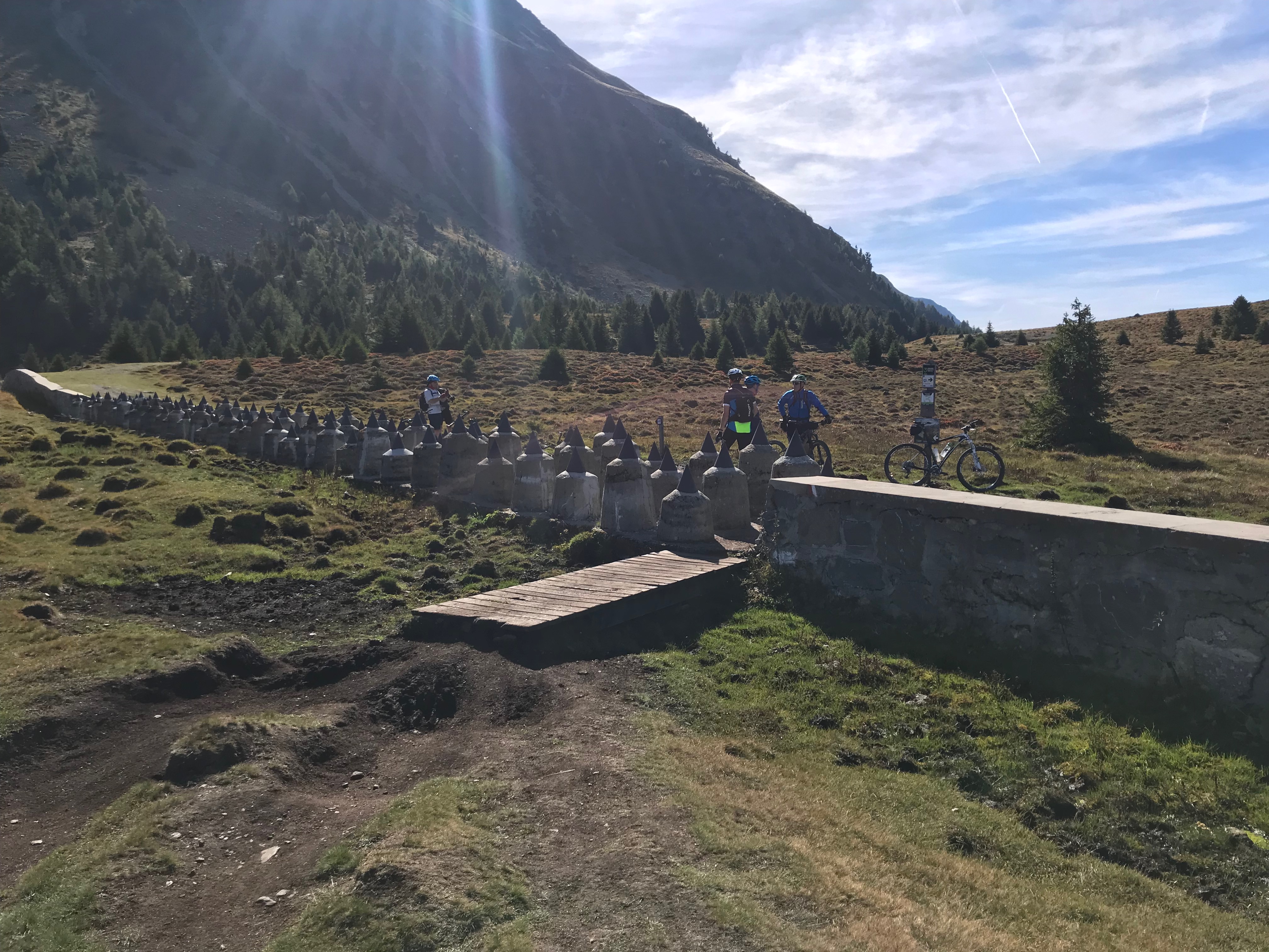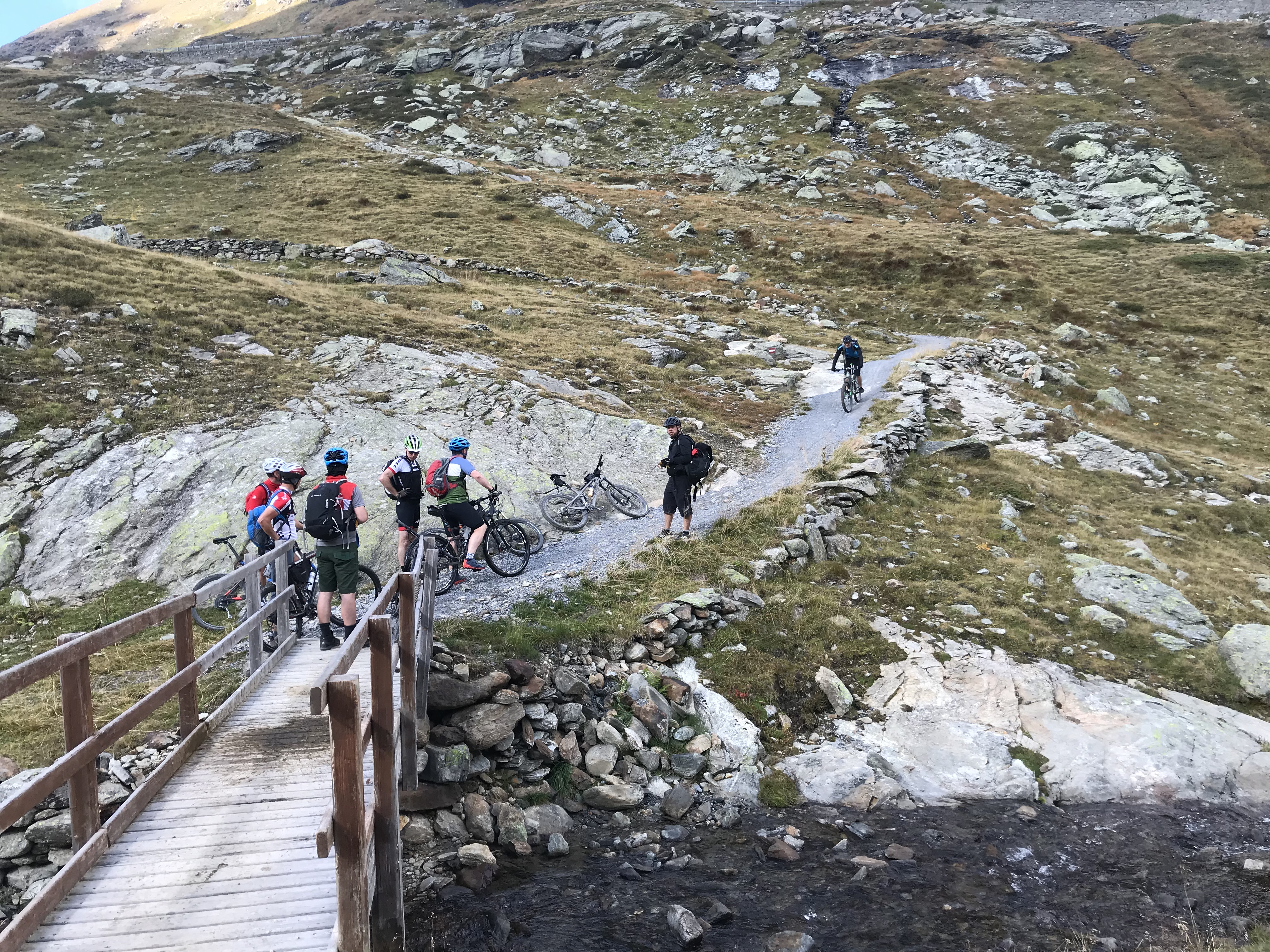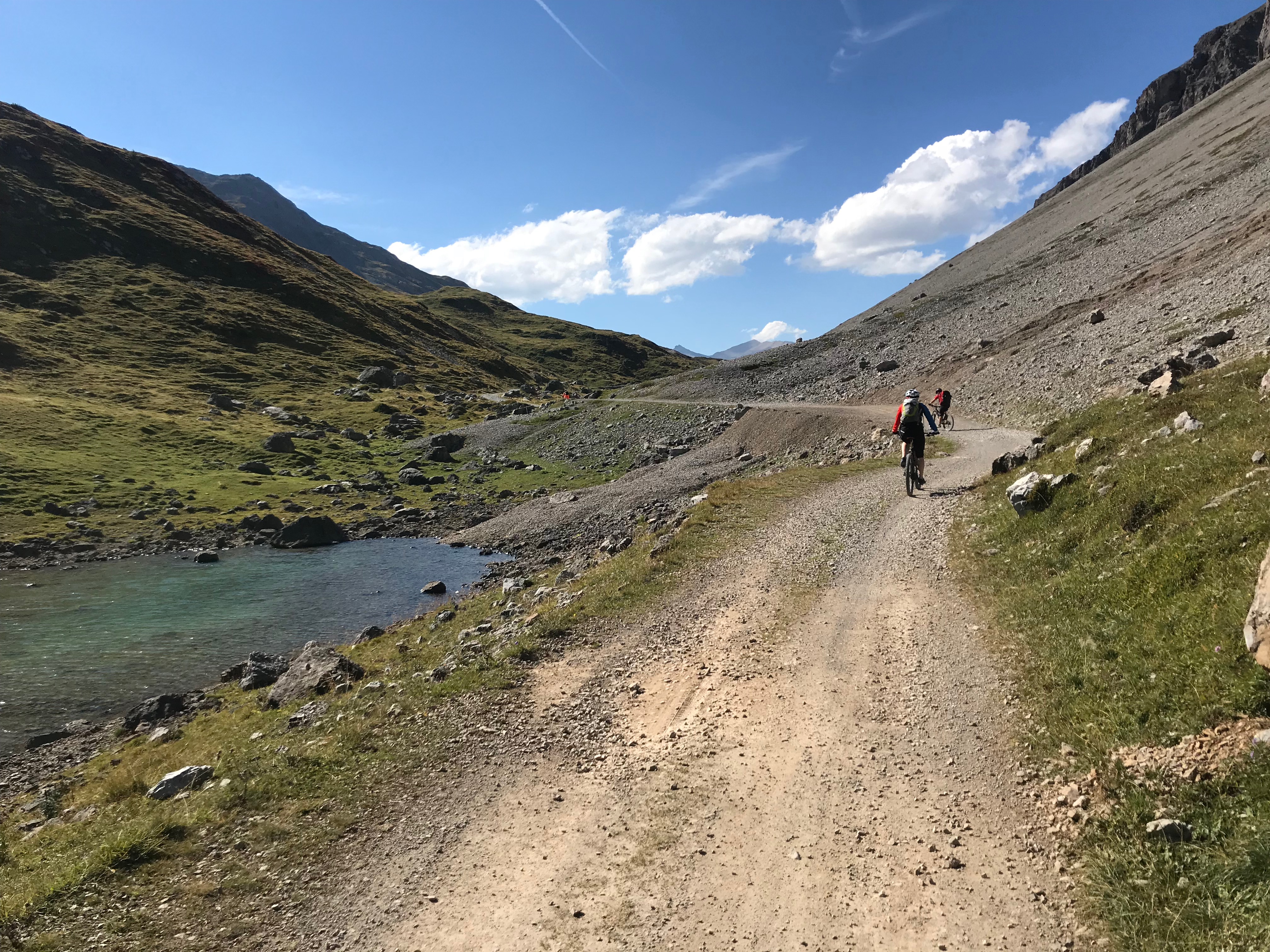 An originally planned route for the third day was not possible, biking there had been disallowed for some reason. So, our guide Adrian decided that everyone who wants can take again lift up and we can take trails down. There was also an option to skip the second lift and bicycle instead to the top. I felt myself already a bit sick and decided to take lift as high as possible. Trail down was this time not as nice as day before, or the fun part was short and on that rocky fun trail I managed to get flat tyre. Luckily our team was very competent. Almost before I had opened my backpack, the tyre was changed. Amazing! After this we went through a very beautiful alpine meadow area and saw war memories in a form of tank barriers. Those barriers were also border of Austria and Italy. Soon we reached a beautiful lake and followed its banks long time before lunch in a beautiful Italian city. Soon after lunch we changed again country, this time to Switzerland, but also Swiss side was extremely beautiful. Relatively late in the evening we arrived to a small city named Santa Maria where we overnighted in a small cosy hotel. Video summary of the third day can be seen here.