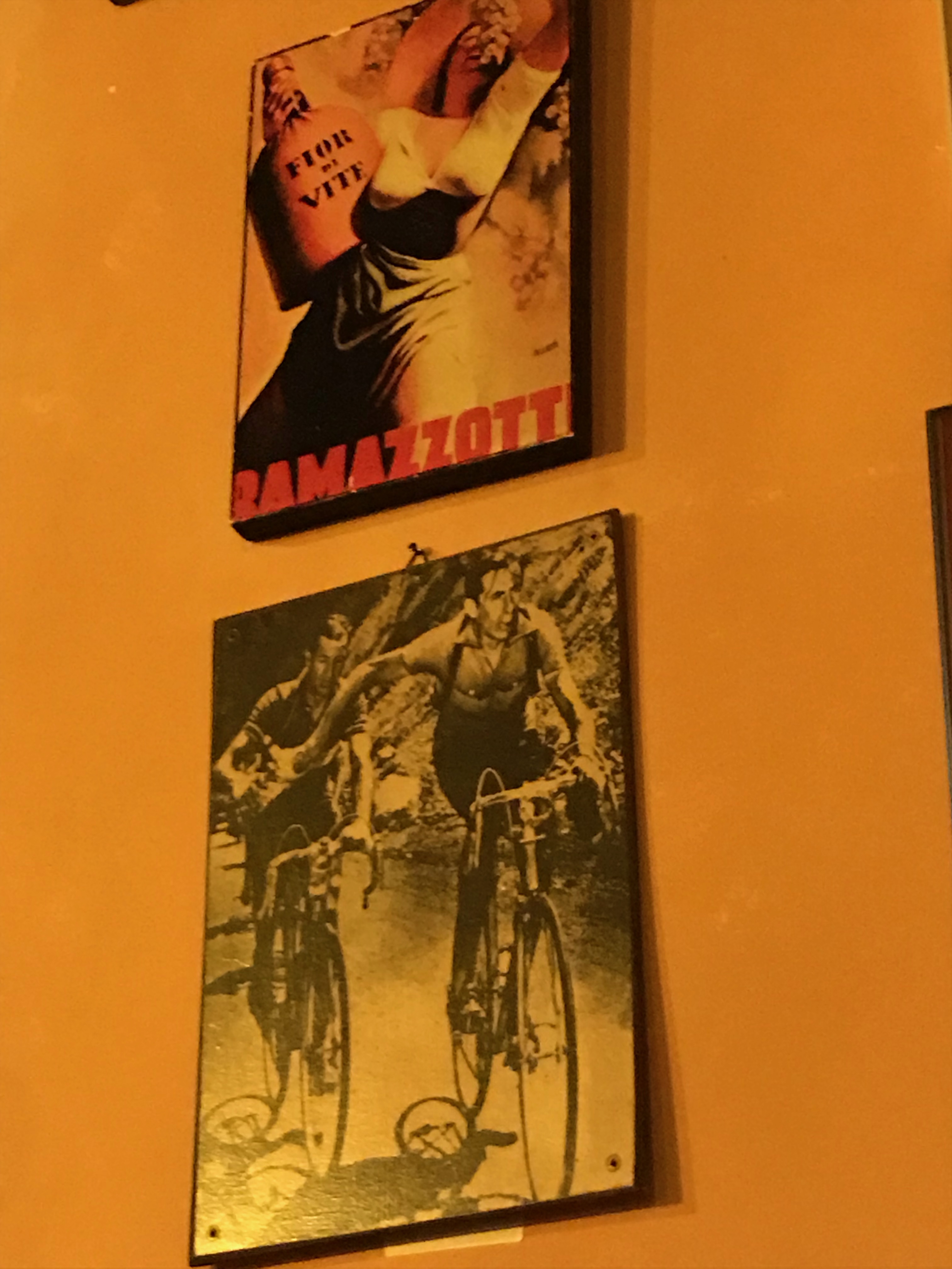 Nemiin laskeutuminen oli varsin hauska kokemus. Nemi sijaitsee järven rannalla, joka on syntynyt vanhan tulivuoren kraateriin. Heti järven takana on meri. Näkymä ylhäältä mäen päältä on todella komea. Ensin keskiaikainen pikkukaupunki, sitten järvi ja heti sen takana meri. Myös lasku kylään oli hauska. Ajoimme hyvän matkaa ikivanhoja rappusia alas kapeita kujia seuraillen. Taas tuli sellainen ”paluu historiaan” tunnelma. Söimme lounaaksi pastaa ja ihailimme upeaa maisemaa aitiopaikoilta lounasravintolan komeista maisemaikkunoista, ja tottakai espressot päälle. Todennäköisesti emme olisi kuitenkaan syöneet mitään päivän aikana, jos Päivi ei olisi lounastaukoa toivonut. Oppaamme oli nuorena miehenä ajanut Mario Cipollinin kanssa samassa tiimissä ja oli nytkin lähdössä Etelä-Afrikkaan johonkin 8 päivän maastopyöräkisaan, joten hän ei todennäköisesti juurikaan huomannut liikkuneensa meidän keskivertokuntoisten seurassa, vaikka kehuikin meitä kohteliaisuudesta hyviksi pyöräilijöiksi. Ja Nemistä vielä sen verran, että sieltä alkaa (tai ilmeisesti sinne päättyy) ikivanha pyhiinvaellusreitti Via Francigena, jota voi edetä myös maastopyörällä.