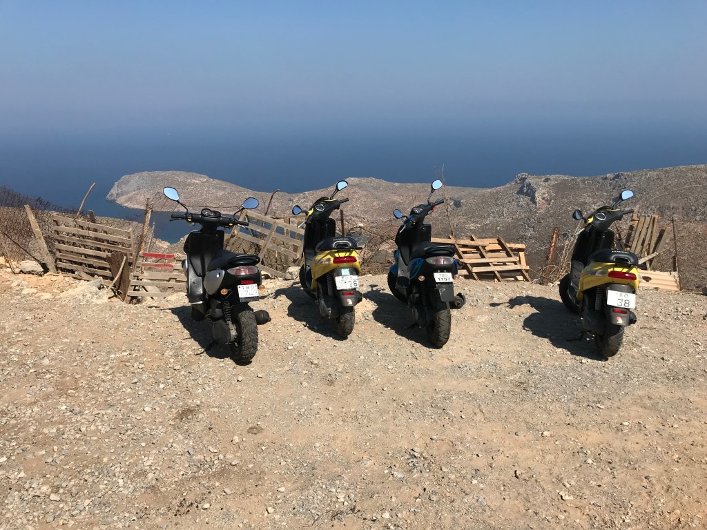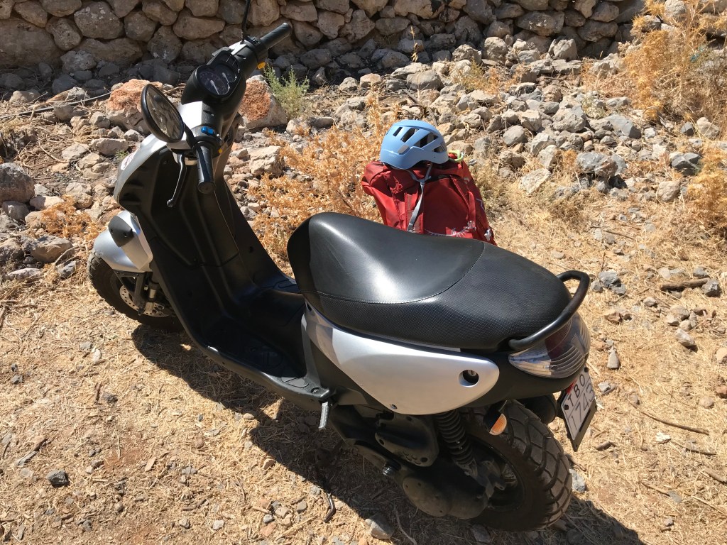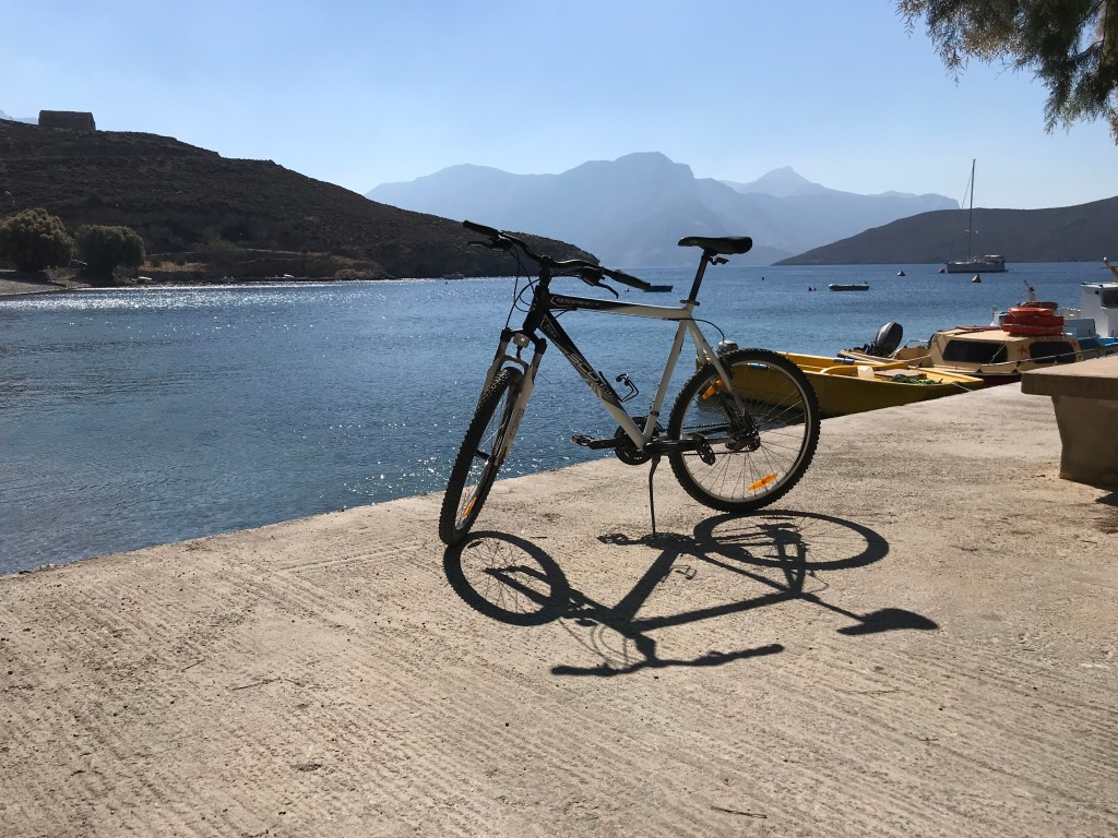 No teimme toki reissullamme muutakin kuin kiipesimme. Vuokrasimme mm. polkupyörät kahdeksi päiväksi ja kiersimme toisena päivänä koko saaren ja toisena kävimme Emporiosissa. Pyöriä kutsuttiin maastopyöriksi, mutta ei niillä kyllä maastoon olisi uskaltanut lähteä. Vähän karkeampi asfaltti oli jo ihan tarpeeksi. Pyöräily oli ihan hauskaa kuitenkin. Samoin uiminen oli tällä kertaa erittäin hauskaa, koska meri oli kuuman kesän jäljiltä vielä jopa minulle riittävän lämmin. Yritimme myös melomaan, mutta juuri sinä päivänä tuuli oli liian kova. Kävimme toki katsomassa Theon hevosia vaikka emme ratsastamaan päässeetkään. Ainoa miinus oli se, että jouduimme lähtemään Kosille päivää suunniteltua aikaisemmin, koska Välimeren itäosissa riehunut hirmumyrsky uhkasi myös Kalymnosta. Lopulta myrsky jäi melko vaatimattomaksi ja löysimme myös Kosilta maastopyörät joilla kävimme läheisen vuoren huipulla. Hieno reissu siis tälläkin kertaa!