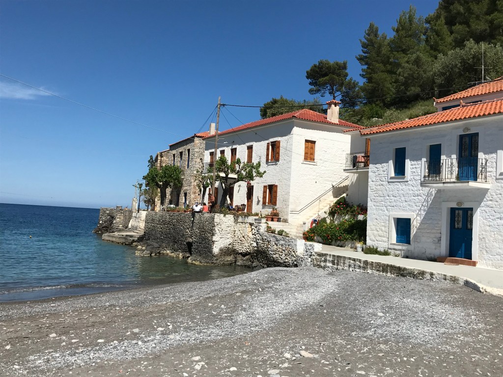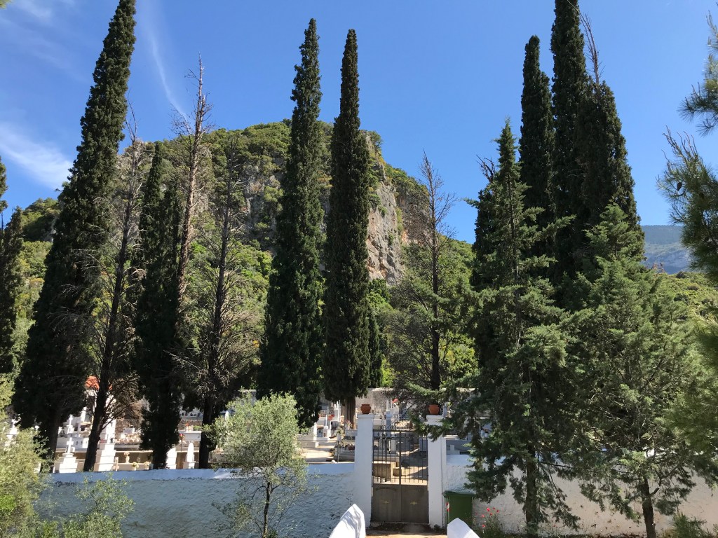 Kyparissi on oli viimeinen kohteemme Kreikan mantereella. Kyparissi on sitten jo TODELLA rauhallinen kylä, mutta myös ERITTÄIN kaunis ja idyllinen. Pääosin klassisen valkoinen kylä asettuu kauniin lahden rantaan ja nousee siitä jonkin matkaa ylös kohti vuoria. Majoituimme miellyttävässä huoneistossa aivan kylän keskustan tuntumassa. Muutama kapea kuja puikkelehtii kauniiden talojen keskellä ja tunnelma on erittäin rauhallinen ja idyllinen. Palveluita ei kannata hirveästi etsiä. Kylän laidalla on yksi minimarketti, josta saa perustarvikkeita, mutta ei hedelmiä eikä vihanneksia. Niitä voi etsiä joko pienen sataman vieressä olevasta minimarketista, josta ilmeisesti voi saada joskus myös kalaa, tai sitten toisella laidalla olevasta leipomosta. Kylässä on muutama ravintola ja kahvila, joista ainakin kaikki testatut olivat erinomaisen hyvälaatuisia! Juuri muuta ei sitten olekaan, paitsi kaunis uimaranta ja tietysti kiipeilykalliot.
