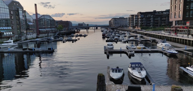 Ensimmäinen iloinen yllätys oli paikallinen bobil parkering, etenkin sen sijainti n. 5 minuutin kävelyn päässä keskustan vilkkaimmilta ravintolakaduilta. Seuraava ilon aihe oli kaupunki itsessään, etenkin se osa siitä johon ensimmäiseksi tupsahdimme. Vanhalle telakka-alueelle on rakennettu elävä uusi kaupunginosa ravintoloineen ja asuntoineen, ja viehättävä kanava halkoo koko komeutta pitkälle vanhaan kaupunkiin asti. Ei näkynyt jälkeäkään Narvikin harmaudesta ja hiljaisuudesta, jossa kaupungin ainoa elävä piste on Peppe’s Pizza. Trondheimin ravintolatarjonta on sekä laaja että suhteellisen monipuolinen, ja väkeä riitti kaduilla ja niitä reunustavilla terasseilla ainakin vierailumme aikaan heinäkuun lämmössä. Talvella voi toki olla paljonkin hiljaisempaa, mutta yliopistokaupungissa opiskelijat pitänevät yllä edes kohtuullista vilskettä. Ehdimme vierailumme aikana testaamaan yhden italialaisen (https://oliviarestauranter.no/) ja toisen cross kitchen-henkisen ravintolan (https://www.cowsea.no/), sekä useamman kahvilan. Kaikissa palvelu pelasi ja ruoka oli hyvää, eikä hintatasokaan ollut mahdoton.