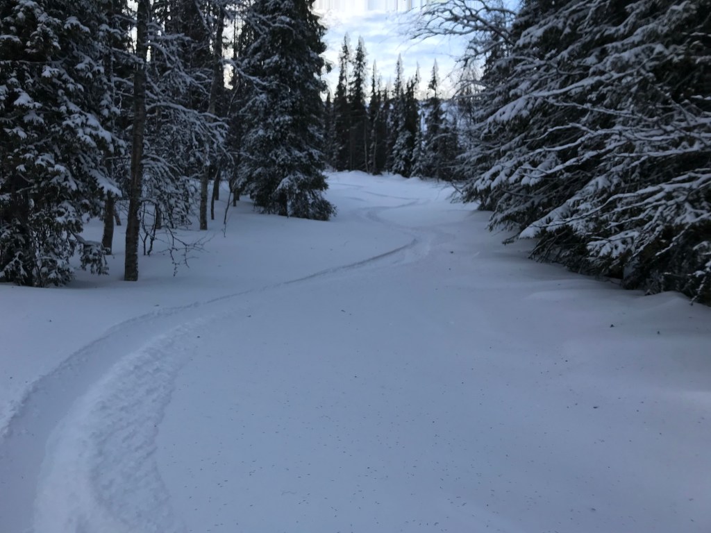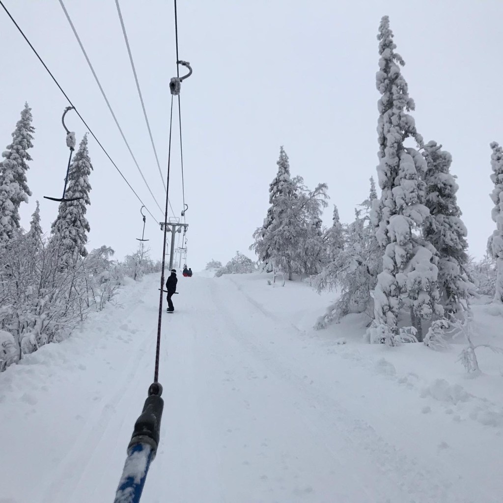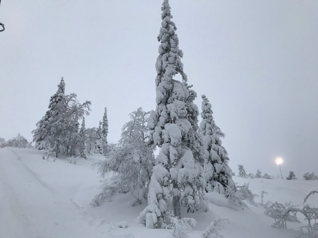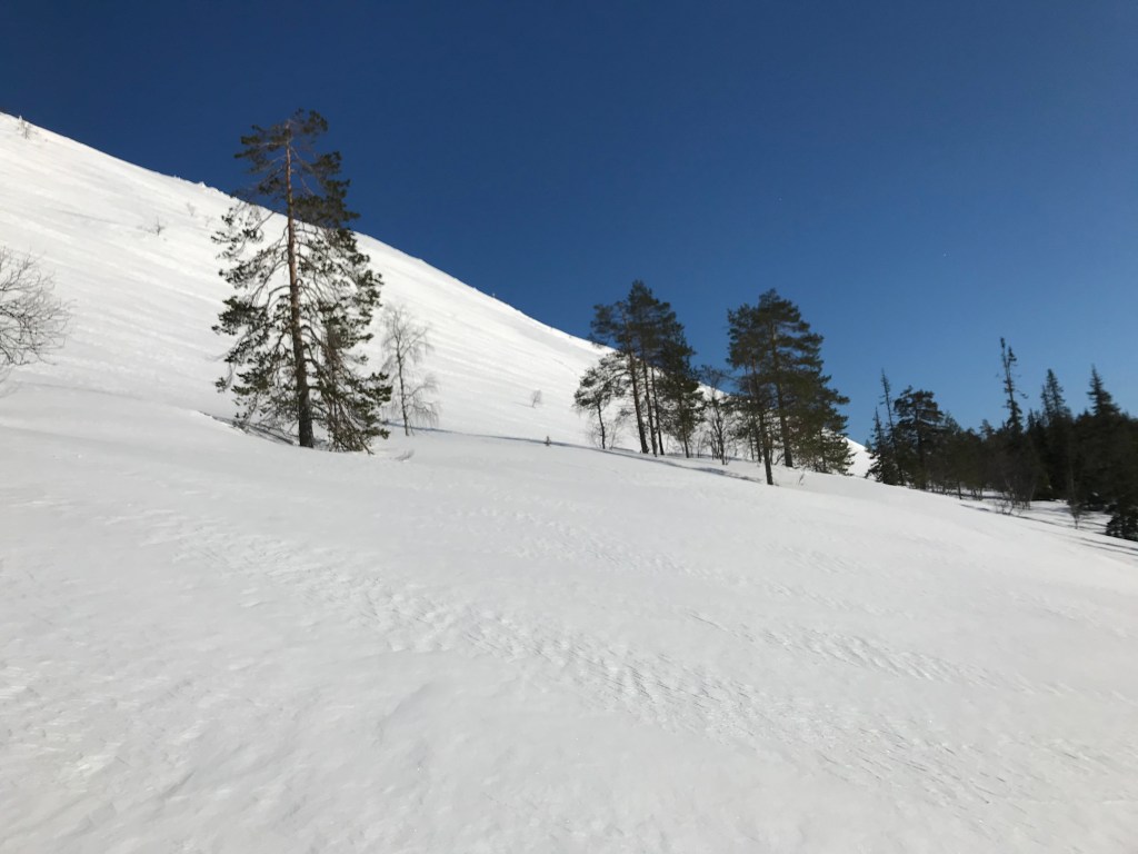 Pyhän offarimahdollisuudet ovat tietysti kaikille tutut, mutta Luosto oli tässä suhteessa todella positiivinen yllätys! Tietysti kelit sattuivat kohdalleen. Pehmeää lunta riitti molemmilla reissuilla. Luostolla on kuitenkin kelistä riippumatta paljon hyvää laskettavaa rinteiden ulkopuolella ihan jo hisseiltä ja vielä enemmän, kun jaksaa vähän skinnailla. Rinnealueen pohjoispuolella on huipulta lähdettäessä ensin loivempaa tunturia ja puolivälin jälkeinen metsä taas on mukavan jyrkkää ja lumi pitkään pehmeää lumisateen jälkeen. Ja hienoa on se, että hissistä voi hypätä pois juuri puurajan yläpuolella ja näin ollen pääsee kovallakin pyryllä laskemaan metsälaskuja joko rinteiden pohjoisen puolen metsikössä tai sitten rinnealueen keskellä. Ja jos metsälasku ei innosta, niin tunturin huipulta tai Aurinkohissiltä pääsee rinnealueen eteläpuoleiseen kuruun, jossa pääsee laskemaan puutonta offia ja fiilis on jo kuin isommillakin rinteillä.