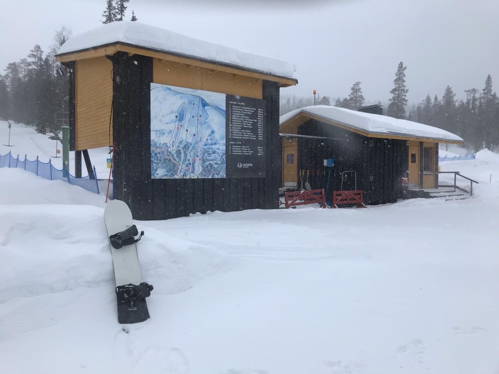 Tämän talven laskuista voisi ehkä mainita vielä sen, että viime talvena aloittamani lumilautailu alkoi sujua jo niin hyvin, että uskalsin rinteiden ulkopuolellekin. Syksyllä ostamani Salomon Super8 -lumilauta tuntui alusta asti ”omalta” ja laskeminen kehittyi toistojen lisäksi varmasti myös oman laudan ansiosta. Luostolla pääsin laskemaan jo puuteriakin ja onhan se fiilis upea, kun pääsee liukumaan laudan kanssa pehmeässä ja hieman syvemmässä lumessa!