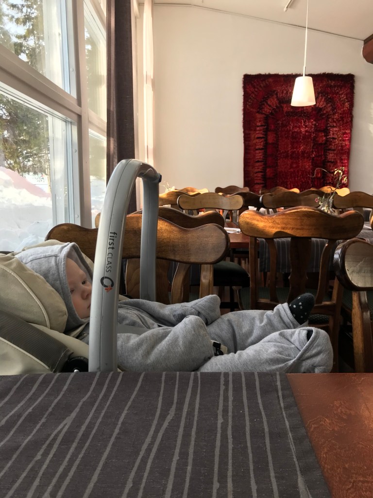 Mutta loppuun talven tärkeimmät jutut. Ensimmäinen on se, että vaimoni Päivi pääsi vihdoin viimein hyvään laskemisen alkuun huolimatta parin talven takaisesta epäonnistuneesta lajin aloituksesta minun opastuksella. Niin se tekee ihmeitä, kun osaava henkilö opettaa. Ja aivan loppuun se kaikkein tärkein. Viime syyskuussa maailmaan putkahtanut seuraava sukupolvi eli Oliver-poika pääsi aloittamaan uransa suksilla Thulen suksikärryillä jo tammikuussa ja maaliskuussa homma jatkui. Katsotaan joko ensi talvena päästäisiin edes seisomaan omille suksille…