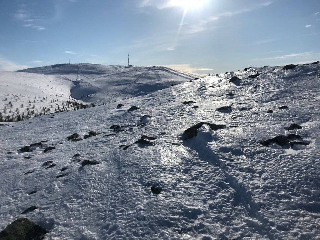 Jos sitten omistaa skinit, niin hienoja laskuja on entistä enemmän. Sekä Luoston että Ukko-Luoston länsi- ja itärinteet ovat erinomaista laskettavaa. Jyrkkyydeltään ja profiileiltaan mukavaa offaria. Tunturin etelä- ja pohjoisrinteet taas ovat sopivan loivat skinnailla ylös. Ja kun ottaa majoituksen sopivasta paikasta niin aamulla voi lähteä ”kotiovelta” skinnailemaan ja illalla laskea takaisin vaikkapa saunan lämpöön ilman sen kummempaa auton tarvetta. Tunne on myös jotenkin hieno, kun hiljalleen skinnailee kohti Ukko-Luoston huipulla olevaa sääpalloa. Tammikuussa tein sen kovassa pakkasessa auringon kajastaessa pimenevässä illassa eteläisellä taivaanrannalla ja laskin jo pimeää itärinnettä otsalampun valossa takaisin majapaikkaan. Todella upea tunne! Samoin kuin maaliskuun kirkkaassa kevätauringossa upeiden maisemien ihastelu vaikuttavan sääpallon juurelta. Luosto on mielestäni todella hieno tunturi!