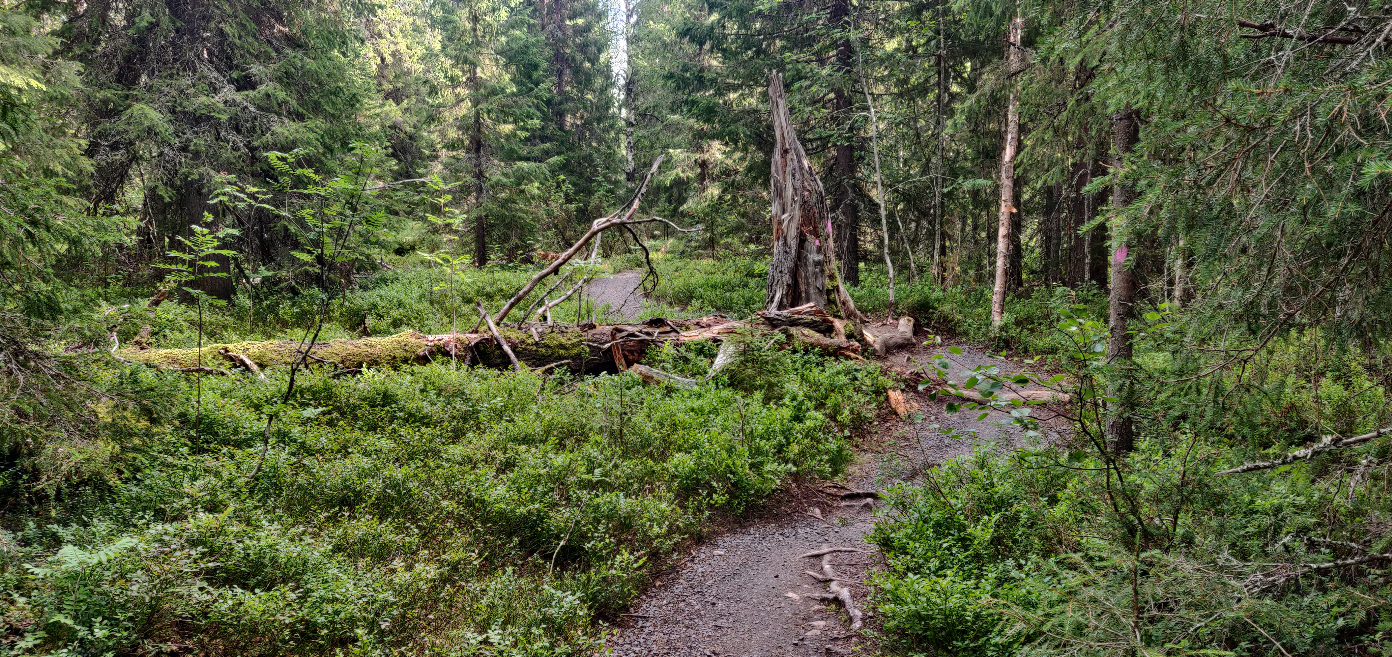 Syötteen merkattujen reittien kaksi haastavinta pätkää. Ahma kiertää kansallispuiston komeita kuusikoita ja soita. Välillä hyvinkin teknistä ja tiukkoja lyhyitä korkeuseroja. Hieno lenkki. Kiersin myötäpäivää jolloin loppupuolen laskettelut alas vaaralta on todella hauskaa ajettavaa. Märällä kelillä moni paikka voi olla kostea ja pehmeä. Maastoon onkin kärrätty pitkät pätkät soraa, mutta tällä pätkällä on vielä aika paljon luonnollista pohjaa.