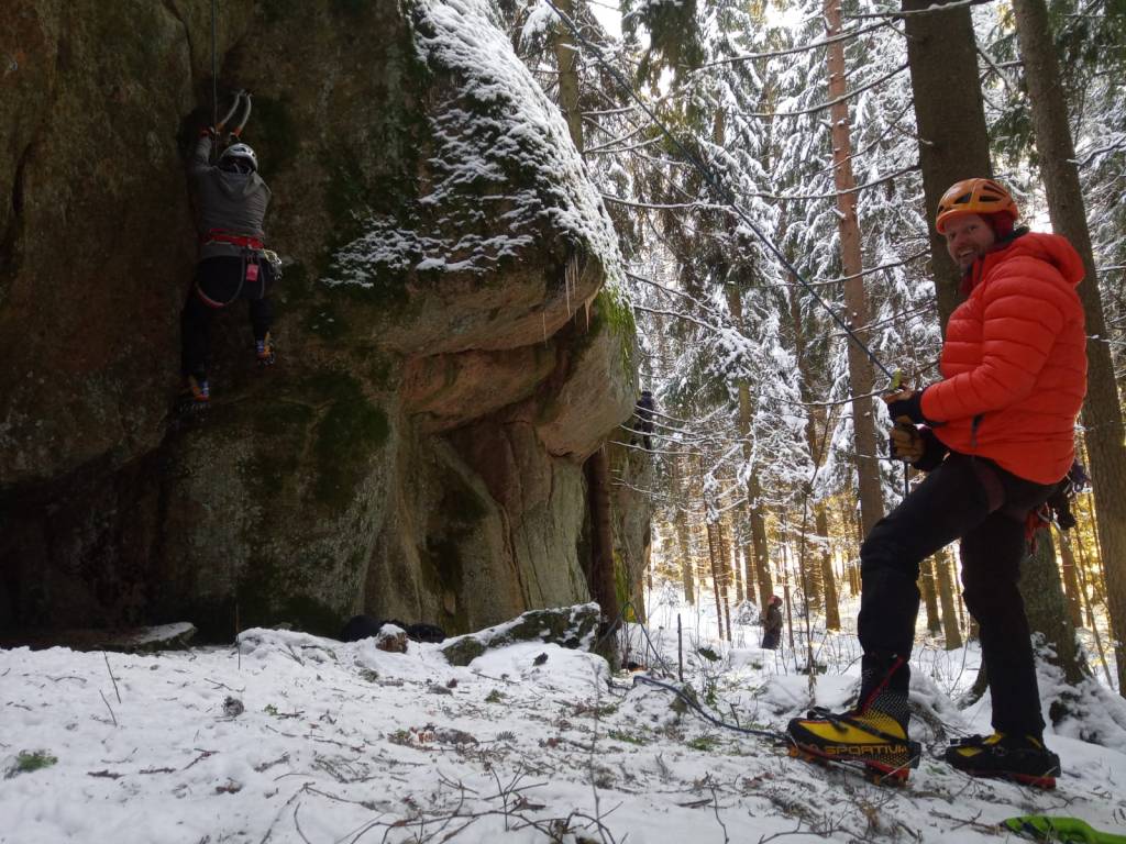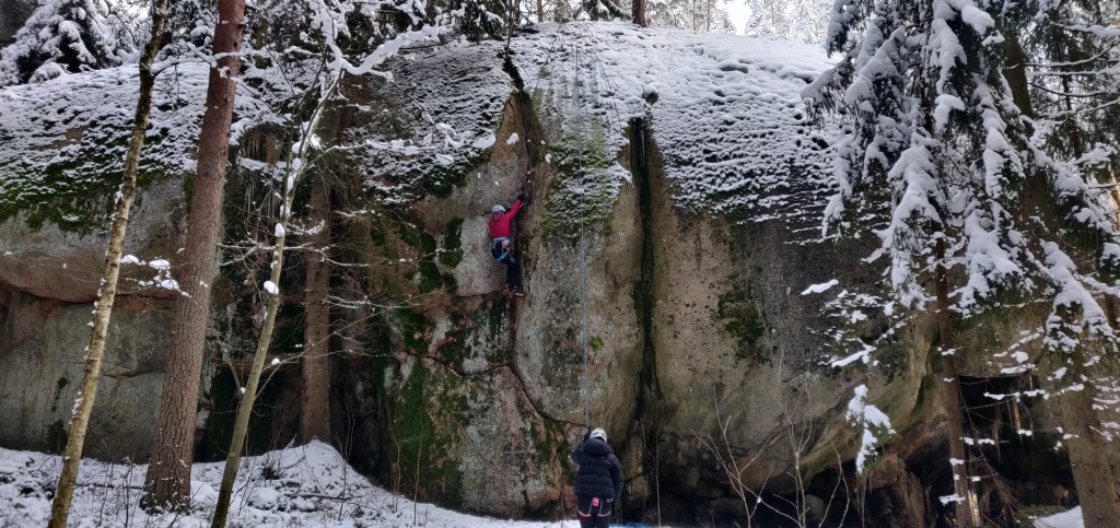 Talvikiipeily on hapokasta. Varsinkin ilman jäätä. Ja erityisesti ilman tuntumaa. Oli kuitenkin todella mukava viettää päivä talviluonnossa ulkoillen. Talvella kaikki on raskasta eikä drytoolissa ole juuri näillä pohjilla järkeä, mutta onhan se hauskaa.