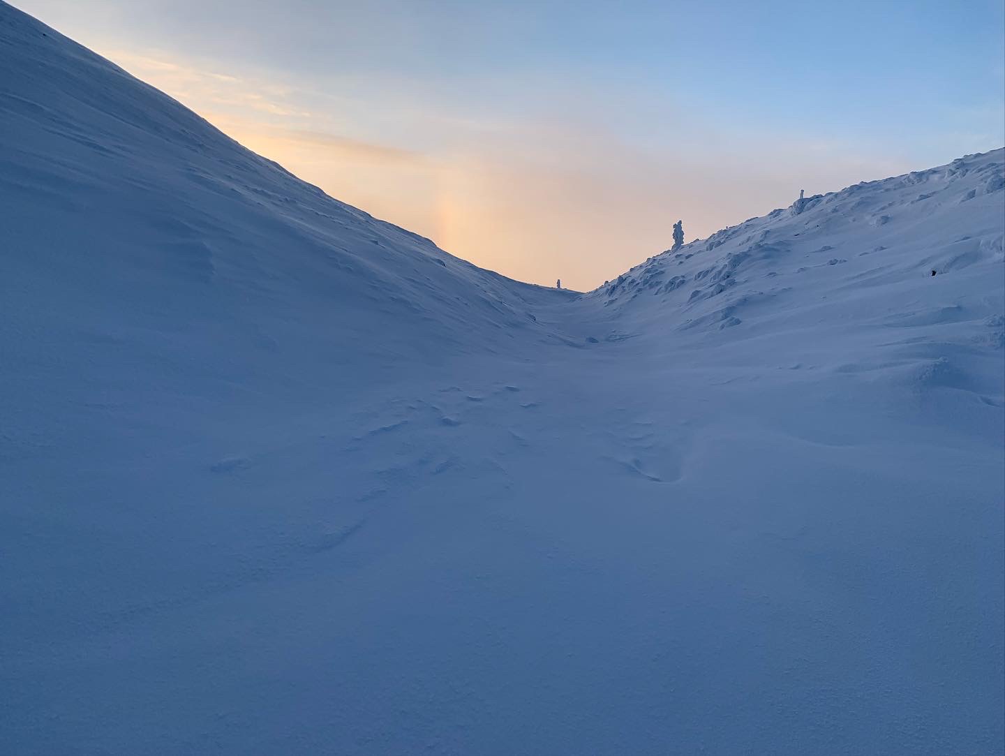 Positiivinen yllätys oli laskettelukeskus ja erityisesti hissioffarit. Melkein kolme viikkoa ihan mieletön määrä kuivaa pakkaspuuteria ja melkein yksin sai laskea! Saariselän laskettelurinteet sijaitsevat laaksossa, joka kerää erinomaisesti lunta sillon, kun sitä sataa ja jyrkimmät eli parhaimmat profiilit ovat alaosan metsissä joissa ei tarvitse murehtia lumivyöryistäkään. Tosin paras metsä päättyy vähän hankalaan paikkaan keskiosaltaan ja nyt siellä ei jyrkimmissä paikoissa ollut ennen puuterikaaosta ollut juuri mitään pohjalla, joten kiville karahteli pari kertaa. Laskettavaa offareilla on kuitenkin monen tasoiselle laskijalle, loivasta hyvinkin jyrkkään. Plussaa oli myös off-season kausi ja se, että 4-5 rinnettä oli hoitamatta, joten pääsi laudallakin vetämään kunnon puuteria, metsään kun en vielä uskalla lautailemaan puukontaktin pelossa. Myös itse rinteiden profiilit olivat paremmat kuin muistin. Useammassakin rinteessä löytyy jyrkempiä kohtia kuin vaikkapa Ylläksellä yhdessäkään rinteessä. Tavallaan myös koko ajan jyrkkenevät profiilit ovat hauskoja, etenkin kun rinteet on saatu tehtyä vielä aika ”elävästi” tunturin kylkeen. Selkeä miinus on järjettömän hidas tuolihissi, mutta sitä ei juurikaan tarvitse käyttää, jos kaikki ankkurit ovat auki. Skinnailua sen sijaan ei kannatta Saariselällä harrastaa muuta kuin kuntoilumielessä. Suht lähellä on kyllä yksi kuru, jonka reunoilla on hyviä laskuja. Kyseinen kuru tosin vaikutti aika lumivyöryherkältä ja hissien reunoilla on parempiakin offareita. Jos haluaa yhdistää skinnailun ja paremmat laskut, niin kannattanee suunnata Kiilopäälle, tosin nyt ei tullut siellä käytyä, että varmaksi ei voi luvata.